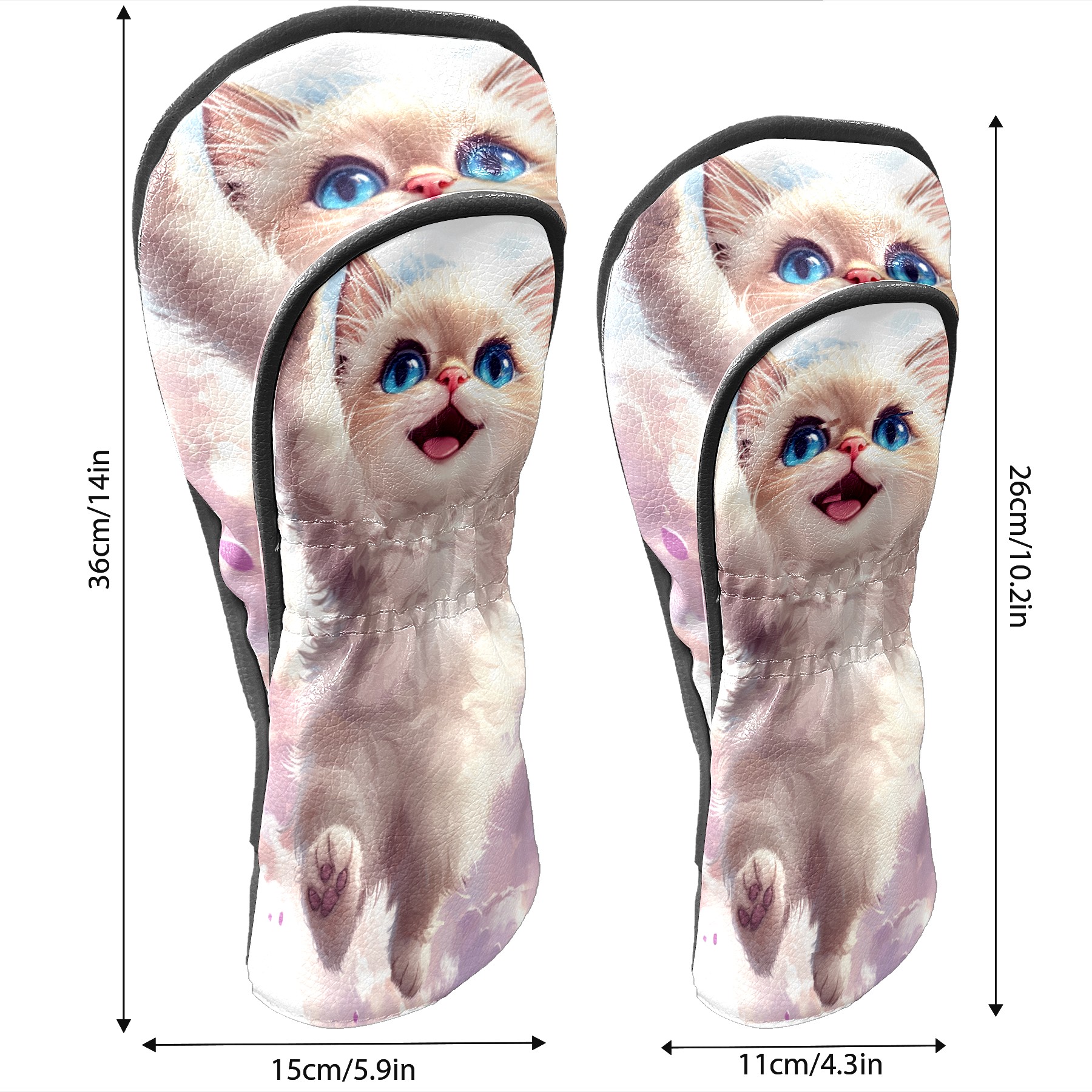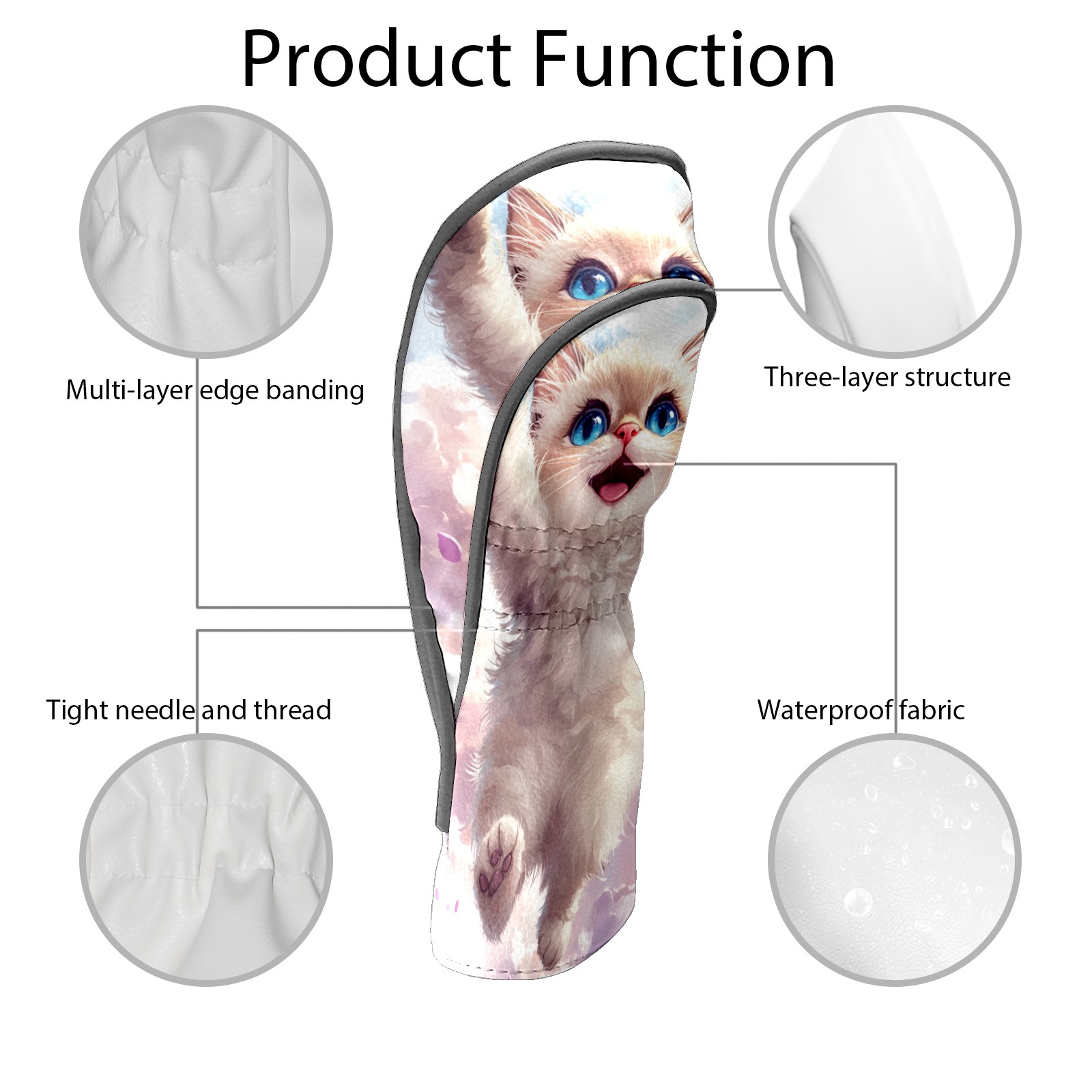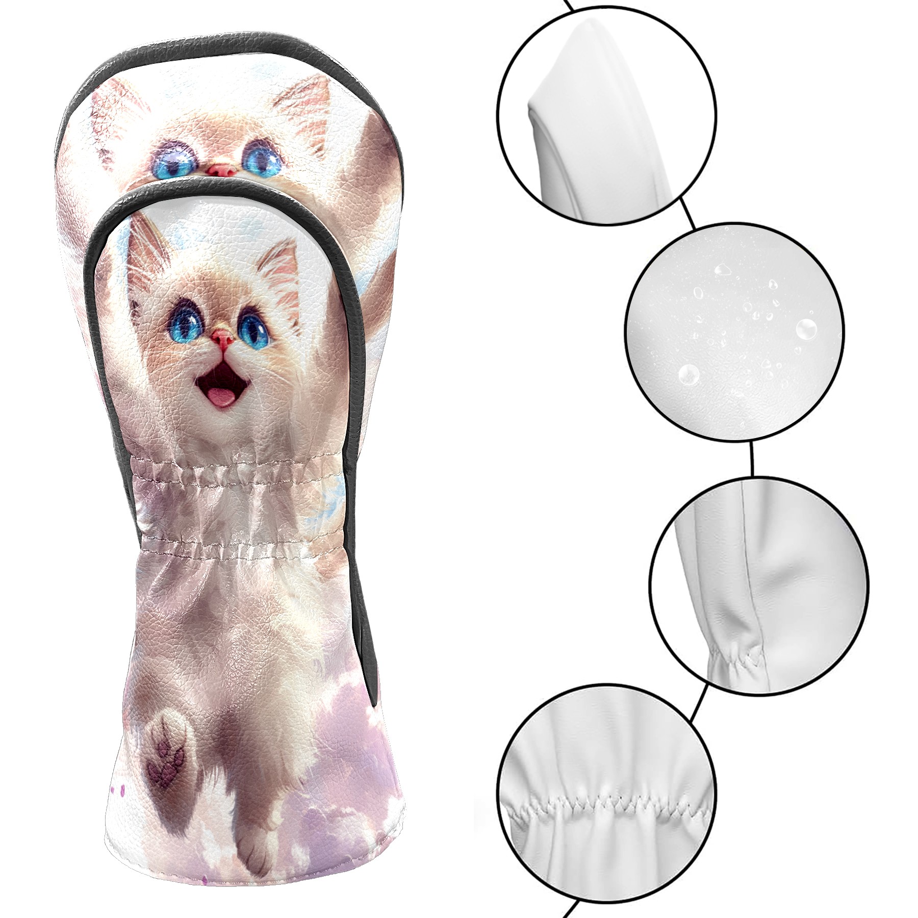 Golf Club Covers PU Leather Waterproof,Golf Club Head Covers for Fairway Woods and Hybrids Happy Beige Ragdoll Cat Unisex Suitable for Most Brands