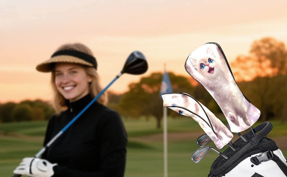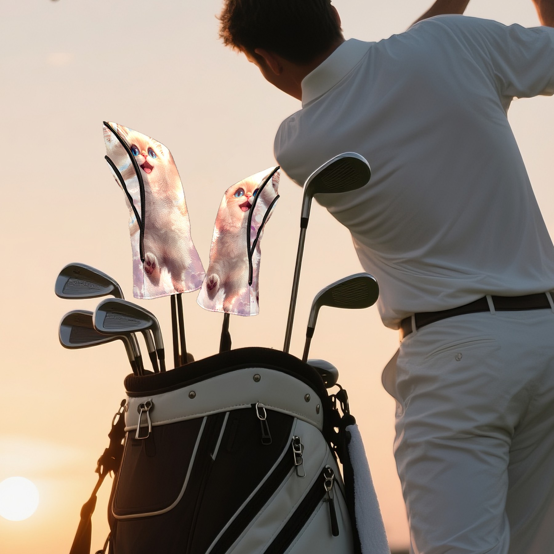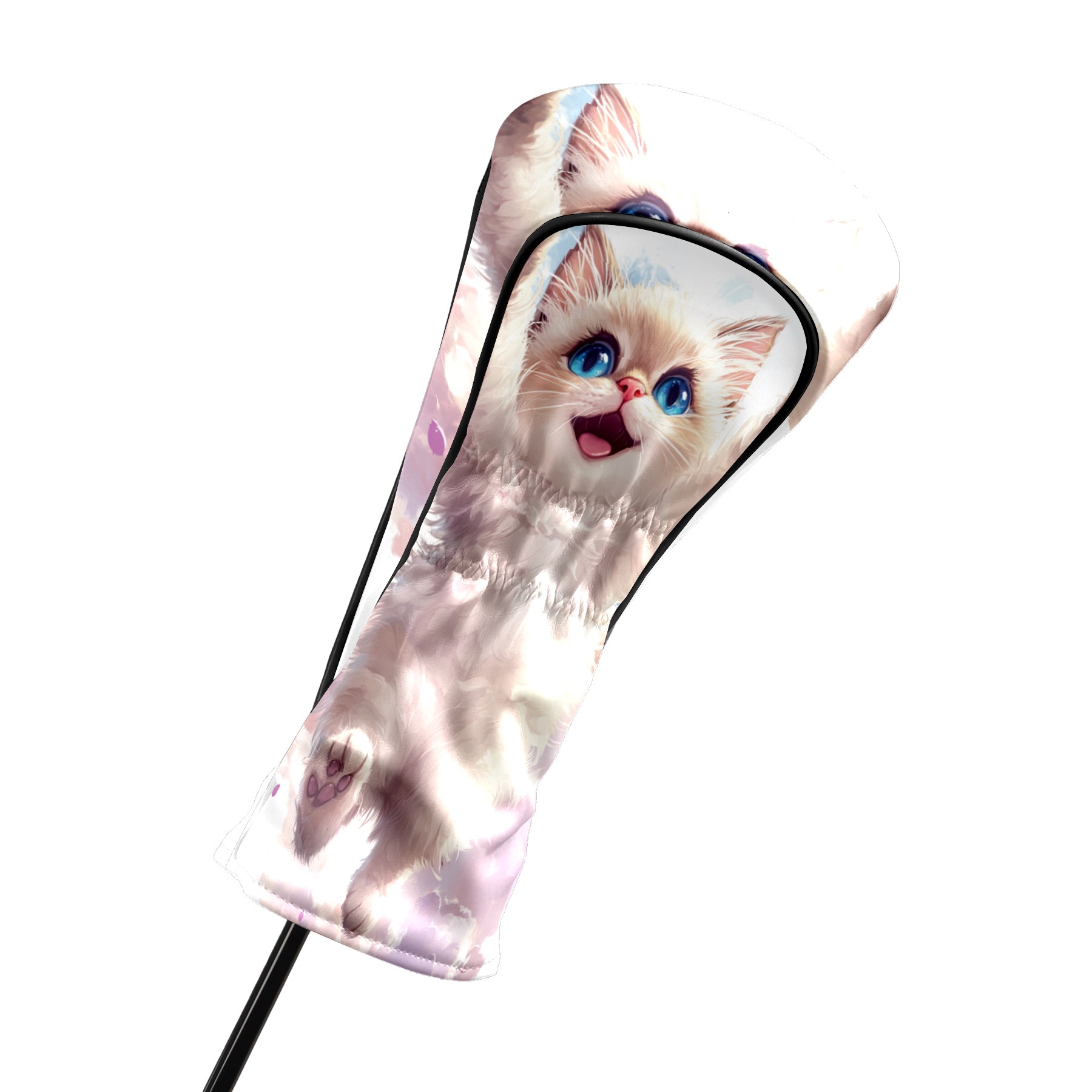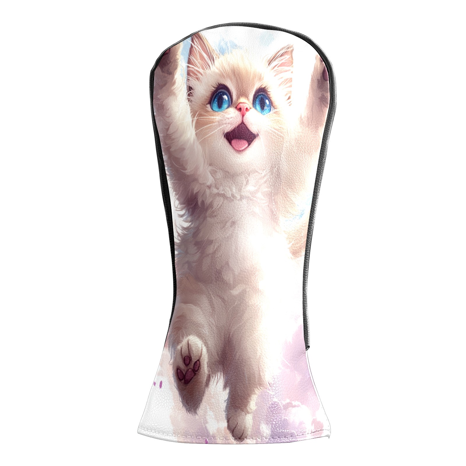 Golf Club Covers PU Leather Waterproof,Golf Club Head Covers for Fairway Woods and Hybrids Happy Beige Ragdoll Cat Unisex Suitable for Most Brands