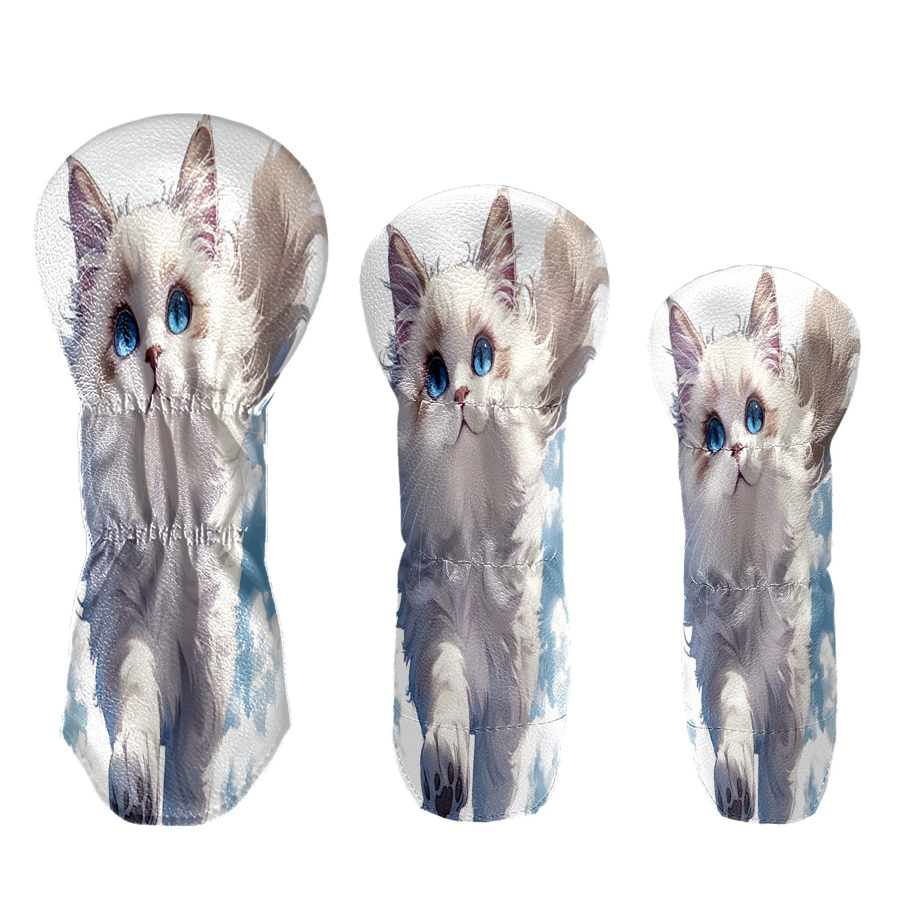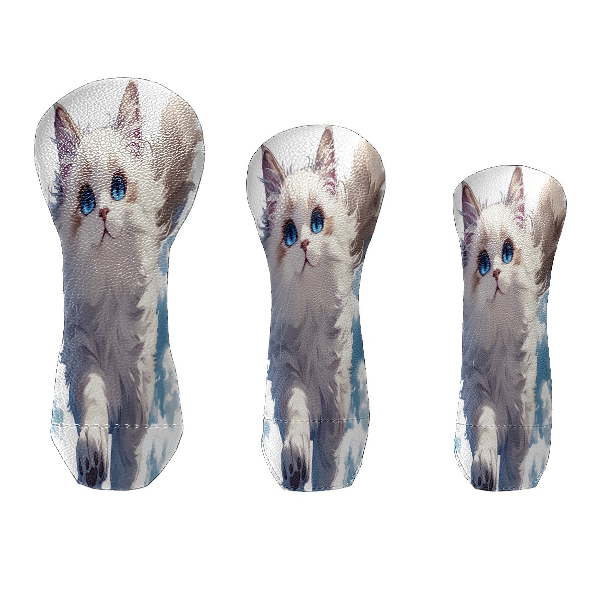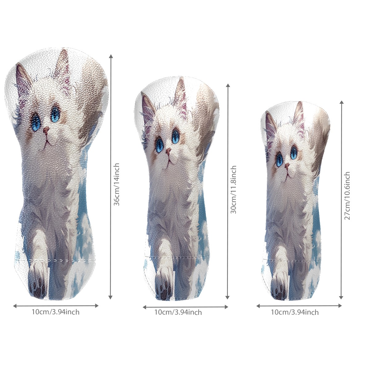 Golf Club Cover, Velvet Lining, High-Quality Leather, Suitable for the First Wood, Fairway Wood and Hybrid Club Head Cover, Suitable for Men and Women Golf Enthusiasts White Ragdoll Cat