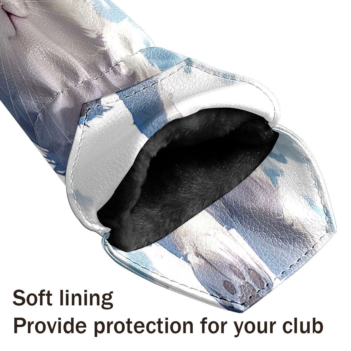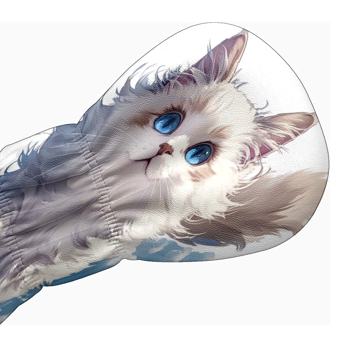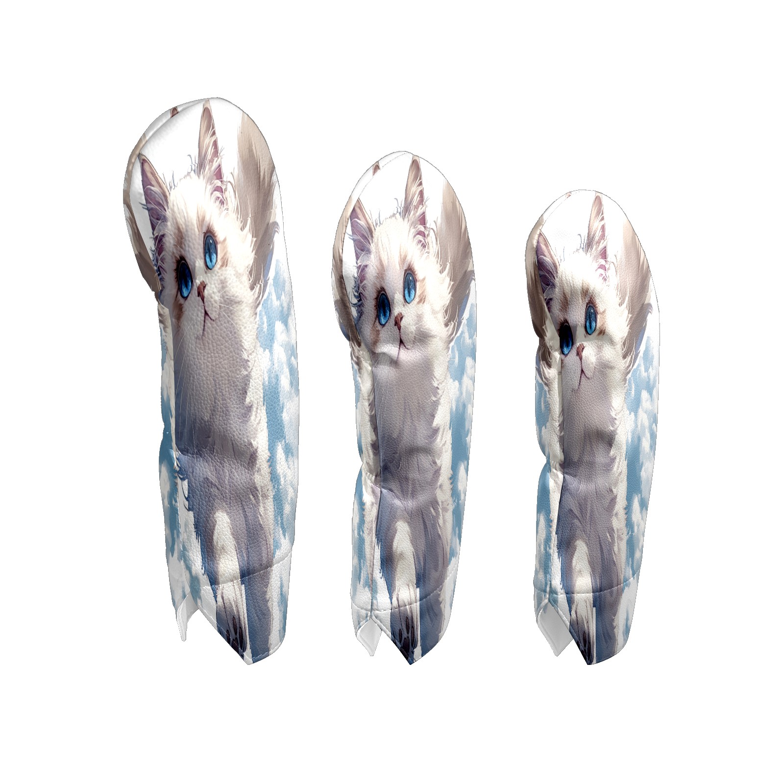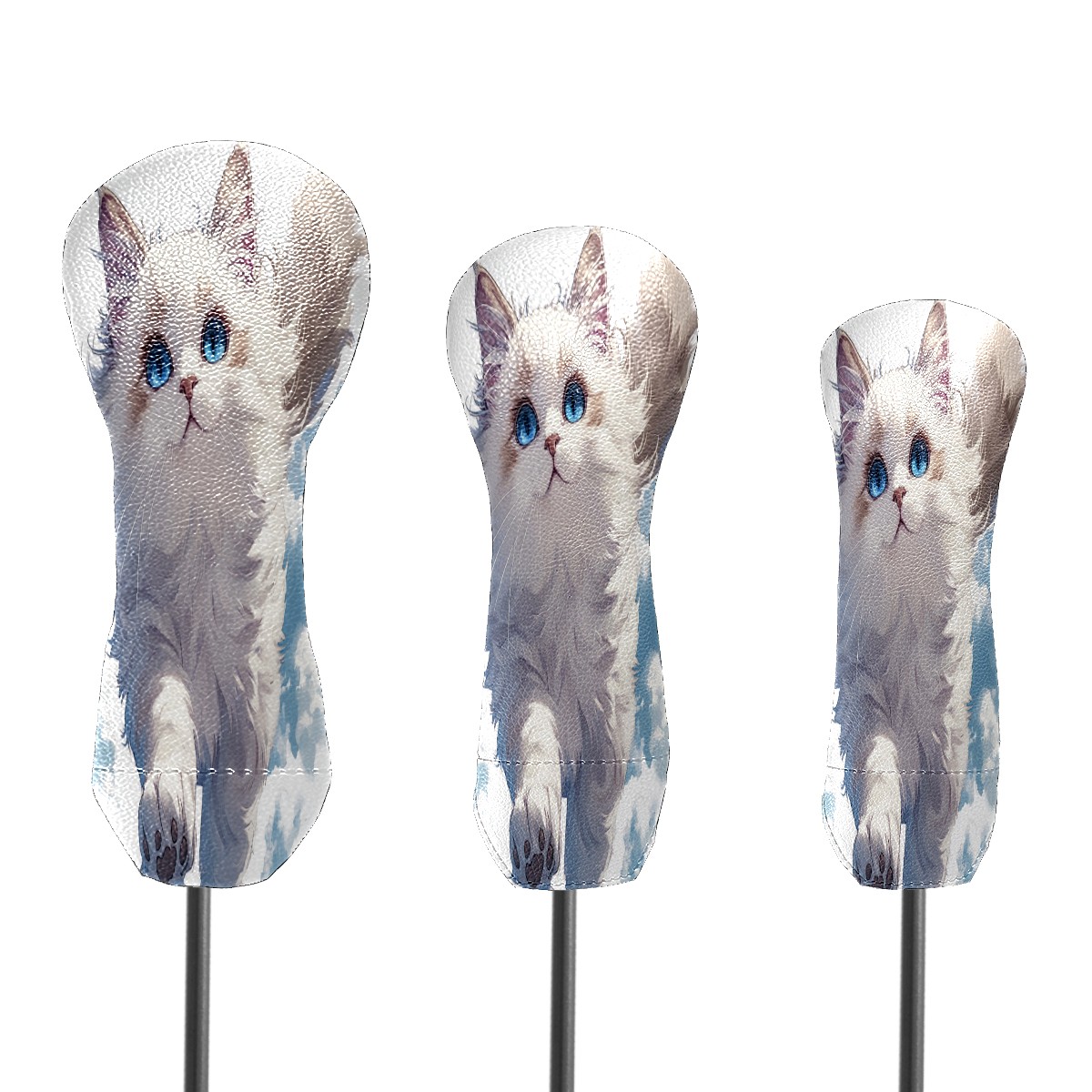 Golf Club Cover, Velvet Lining, High-Quality Leather, Suitable for the First Wood, Fairway Wood and Hybrid Club Head Cover, Suitable for Men and Women Golf Enthusiasts White Ragdoll Cat