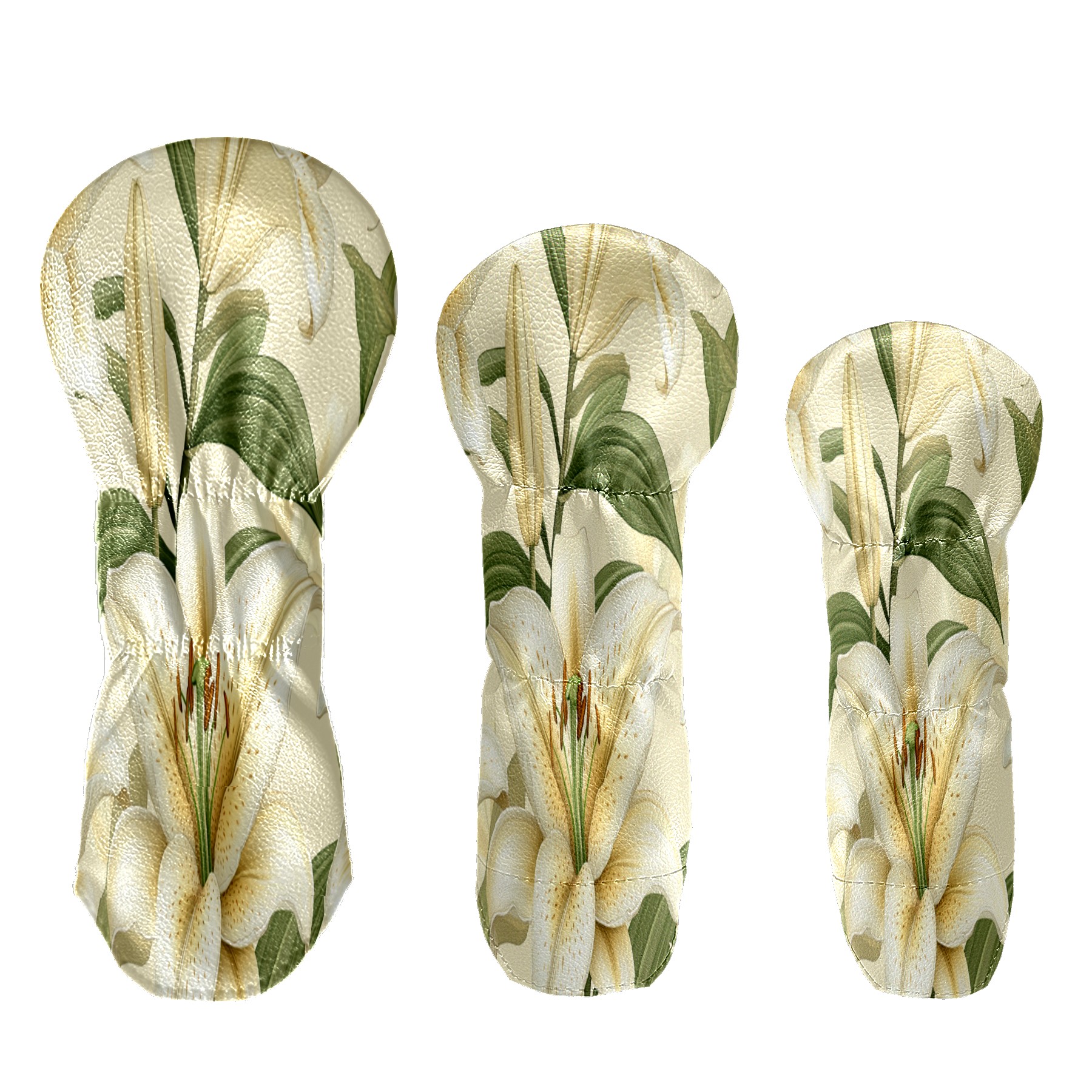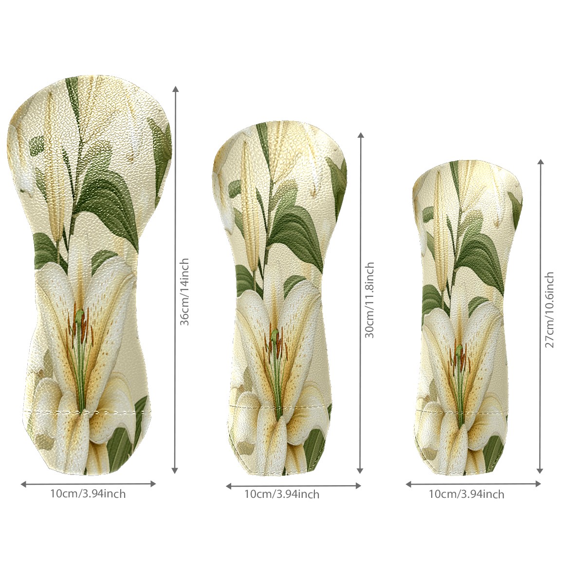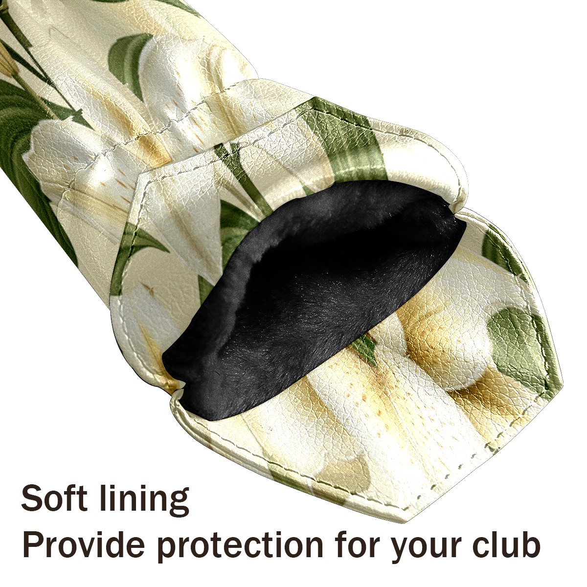 Golf Club Cover, Velvet Lining, High-Quality Leather, Suitable for the First Wood, Fairway Wood and Hybrid Club Head Cover, Suitable for Men and Women Golf Enthusiasts Light Yellow Lilies