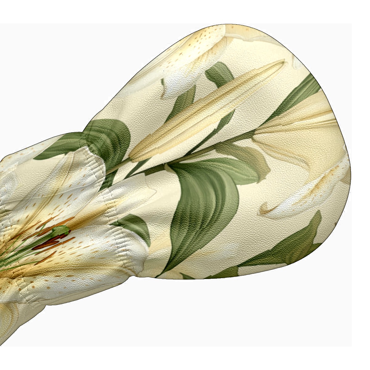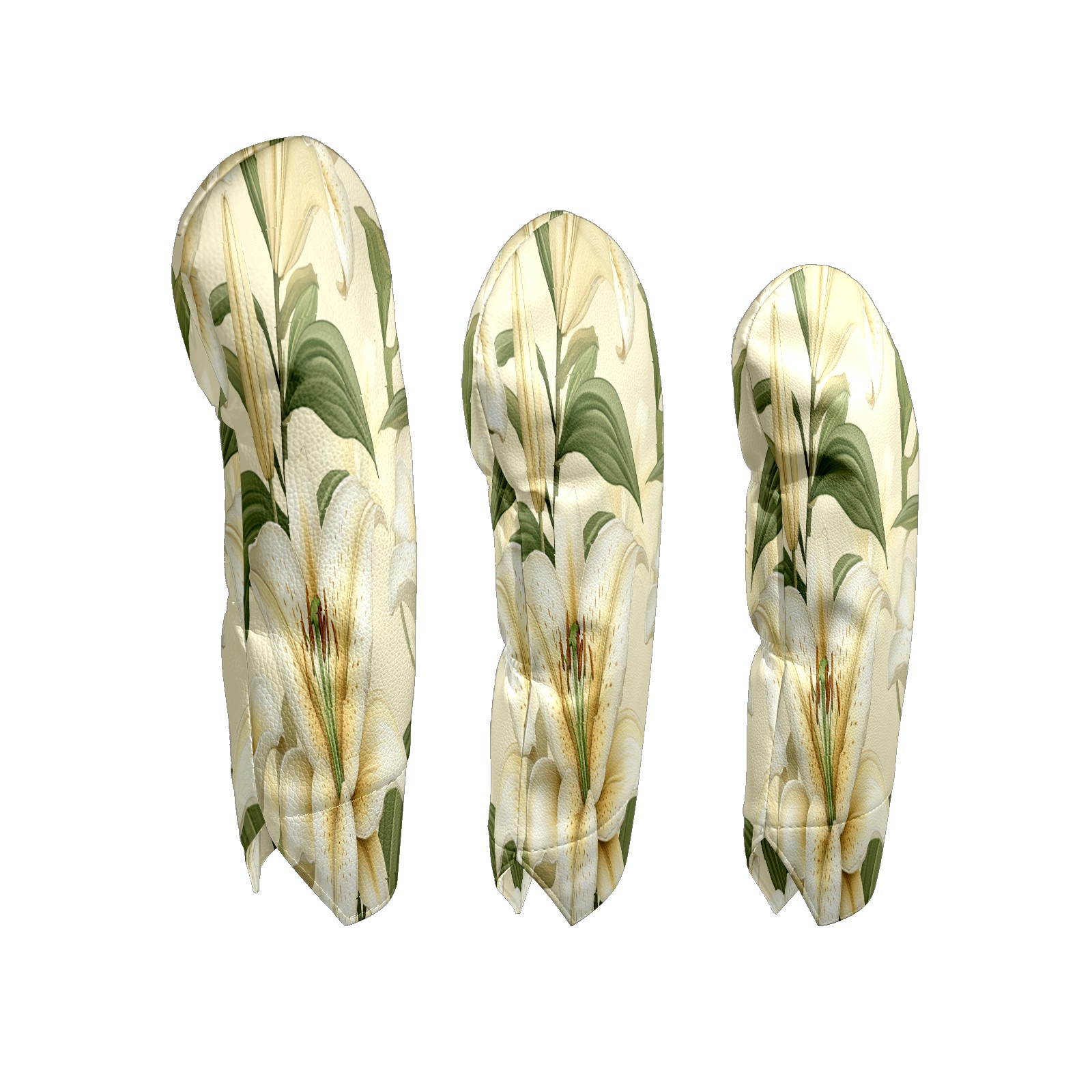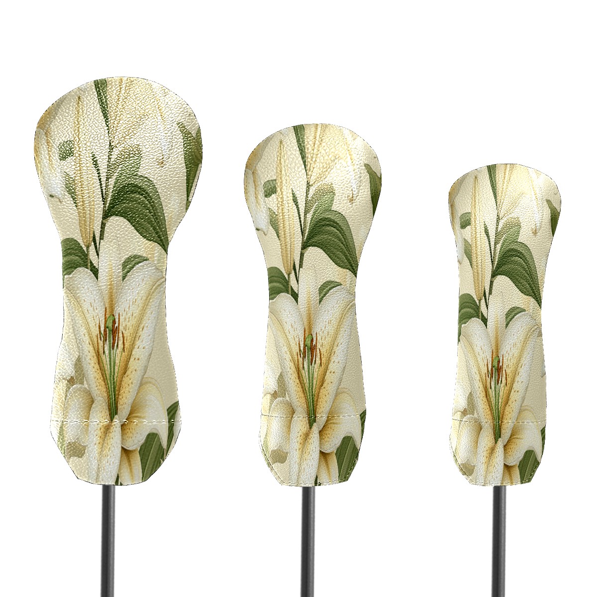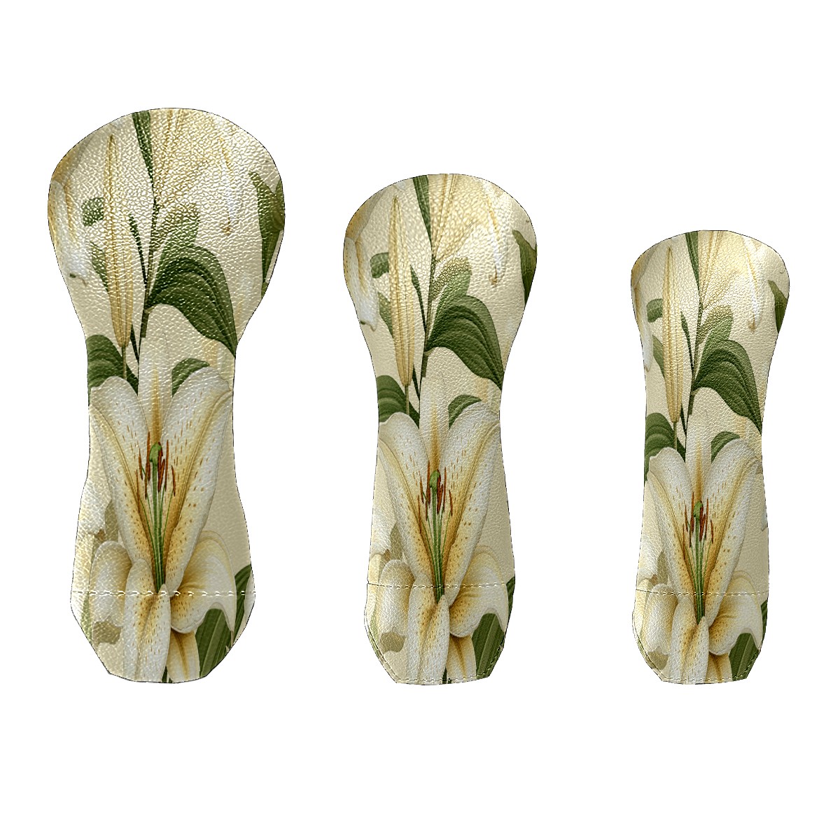 Golf Club Cover, Velvet Lining, High-Quality Leather, Suitable for the First Wood, Fairway Wood and Hybrid Club Head Cover, Suitable for Men and Women Golf Enthusiasts Light Yellow Lilies