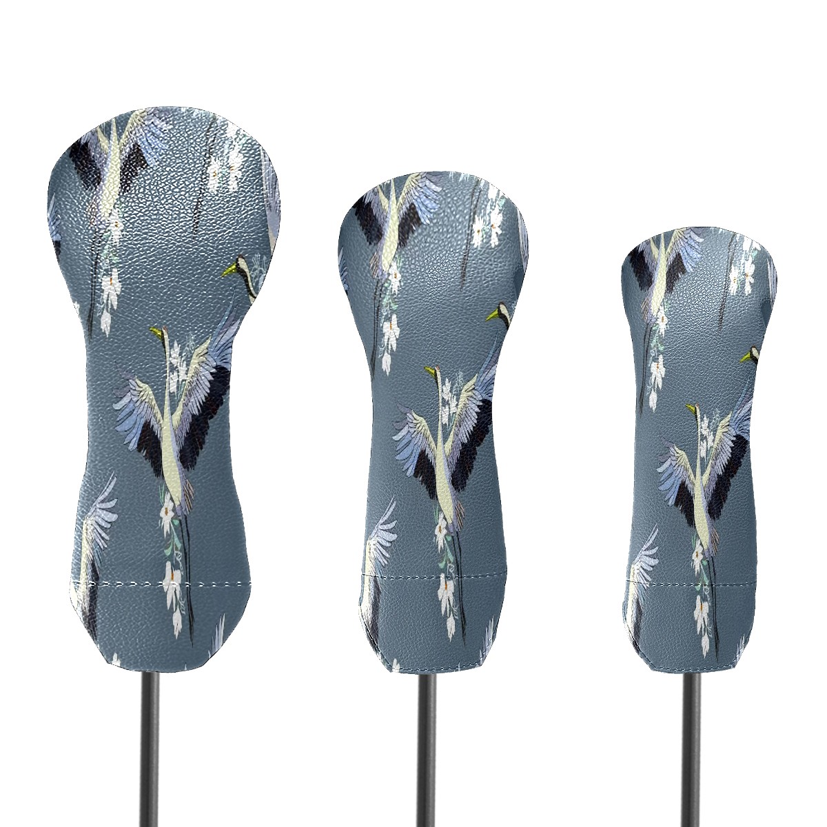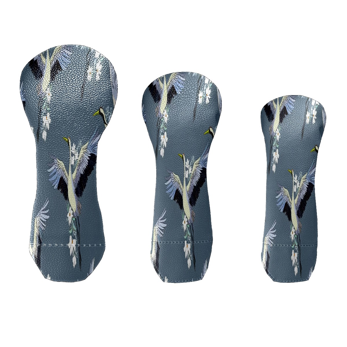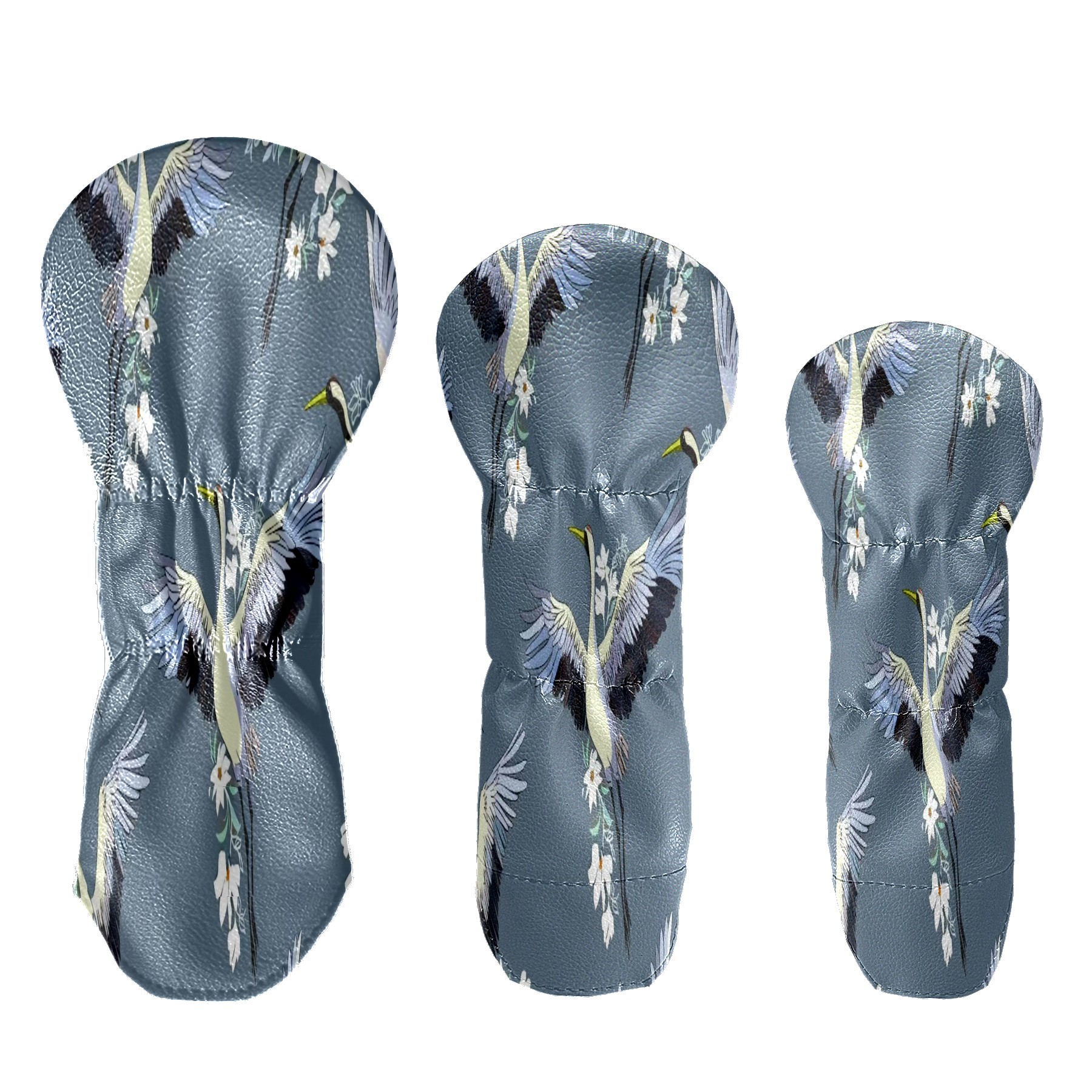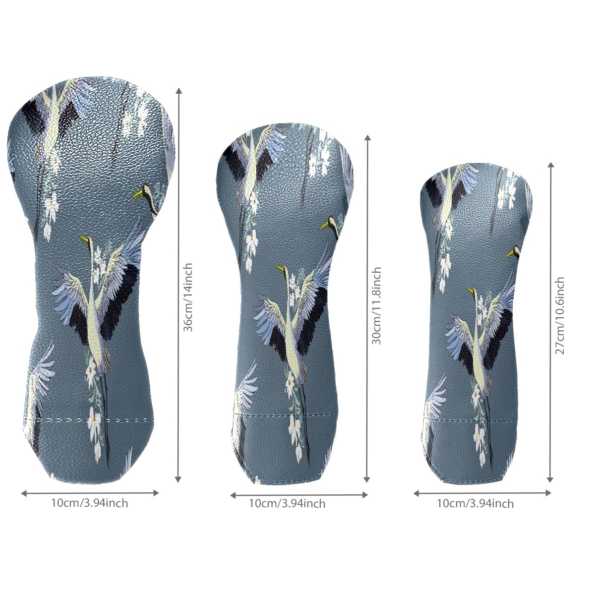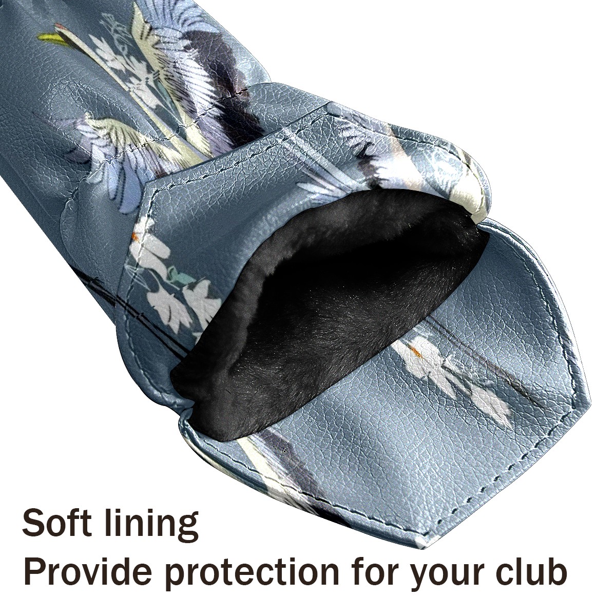 Golf Club Cover, Velvet Lining, High-Quality Leather, Suitable for the First Wood, Fairway Wood and Hybrid Club Head Cover, Suitable for Men and Women Golf Enthusiasts Crane Flowers