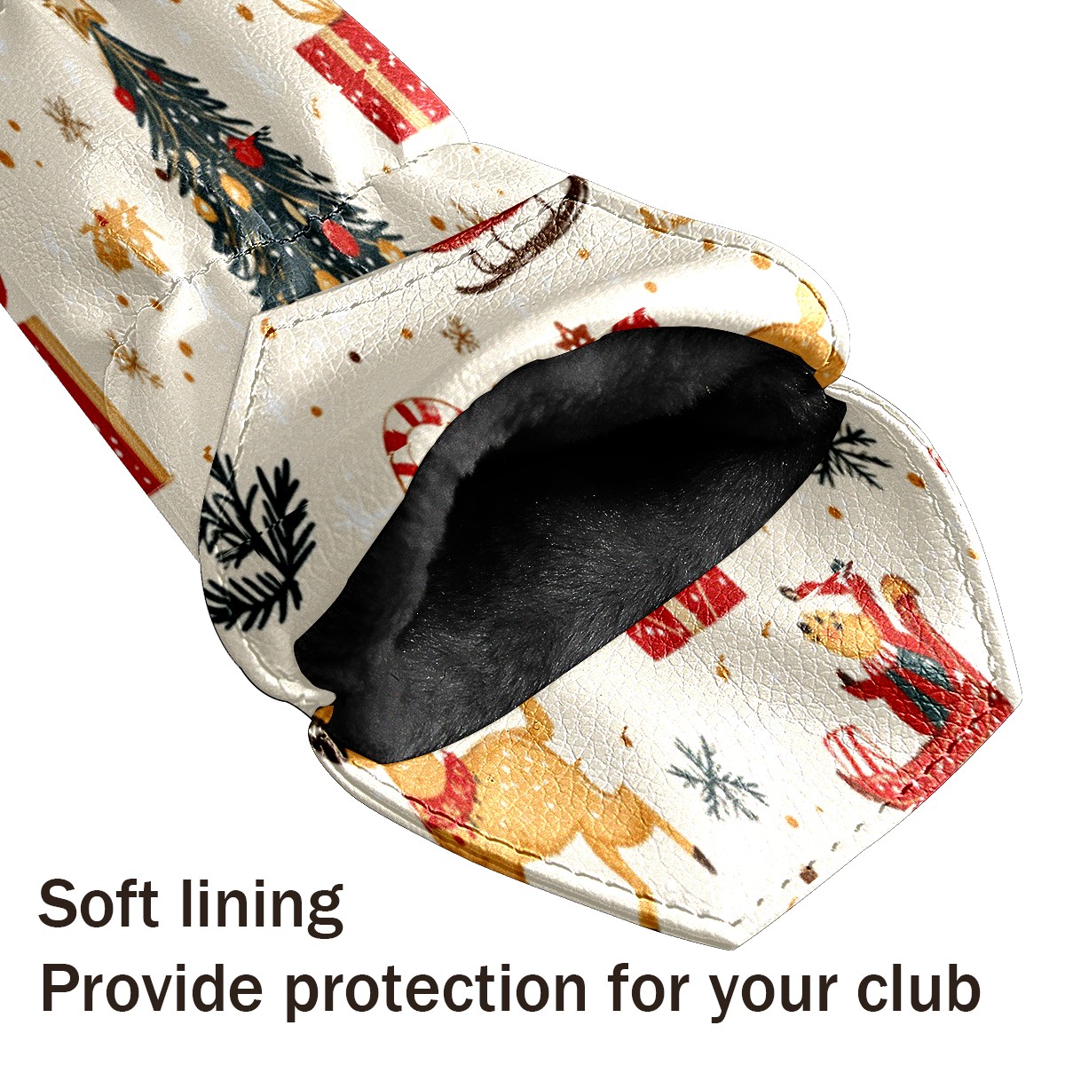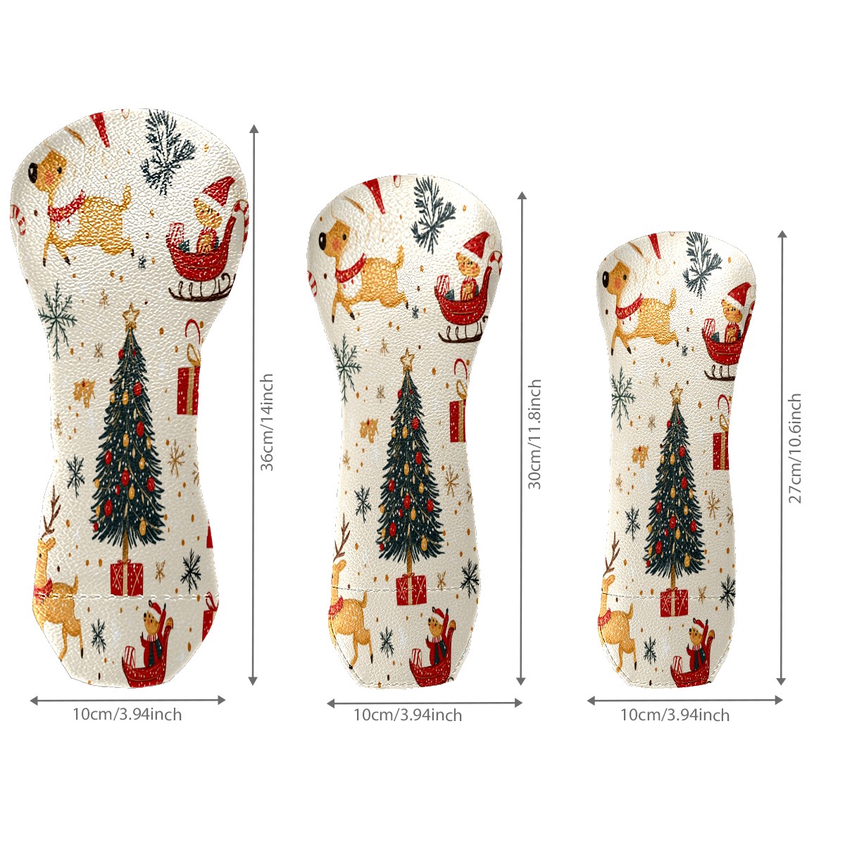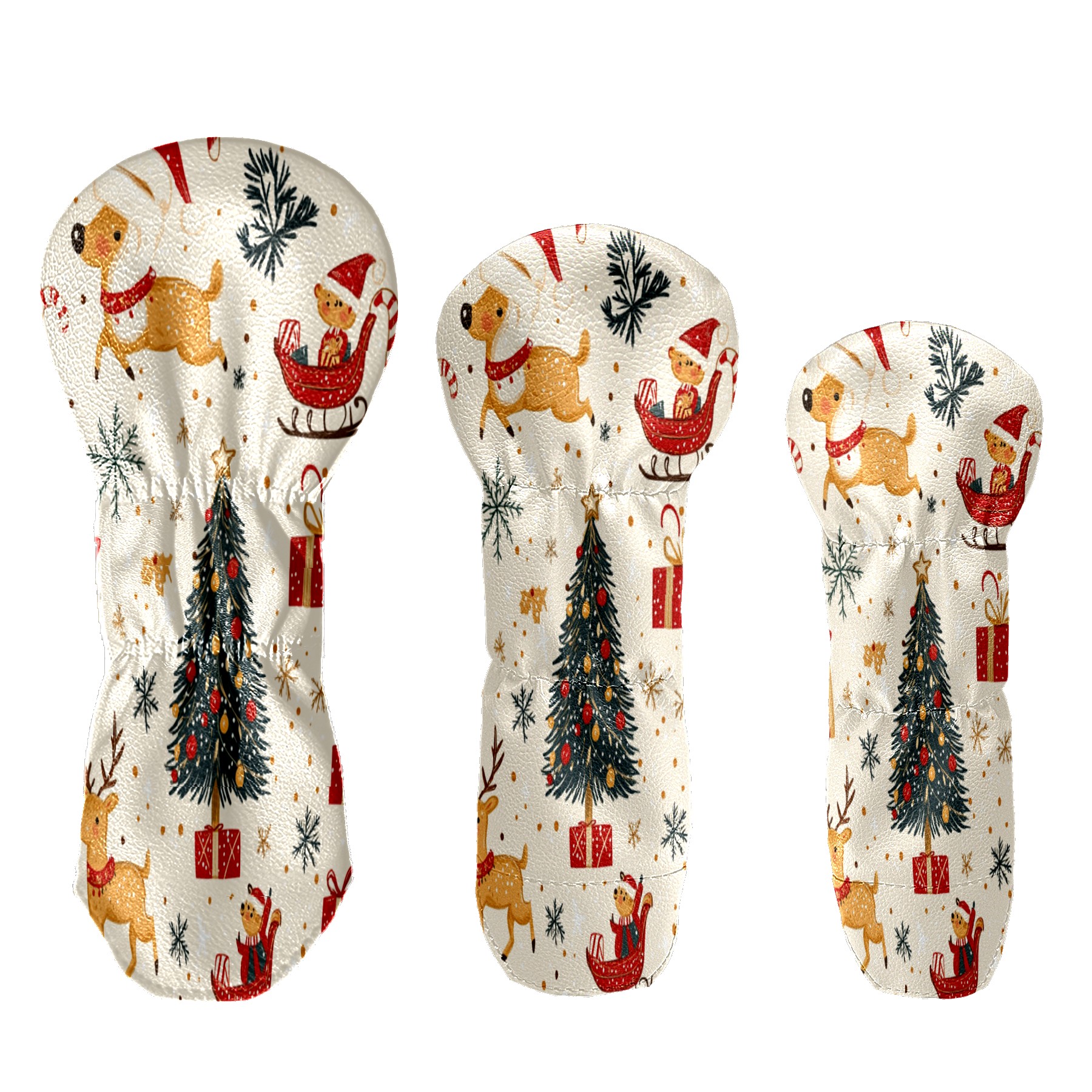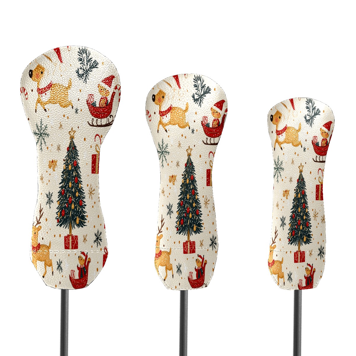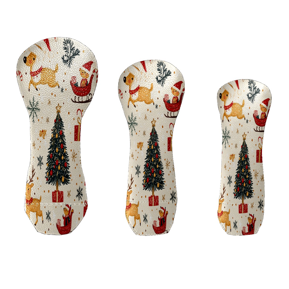 Golf Club Cover, Velvet Lining, High-Quality Leather, Suitable for the First Wood, Fairway Wood and Hybrid Club Head Cover, Suitable for Men and Women Golf Enthusiasts Christmas Pattern