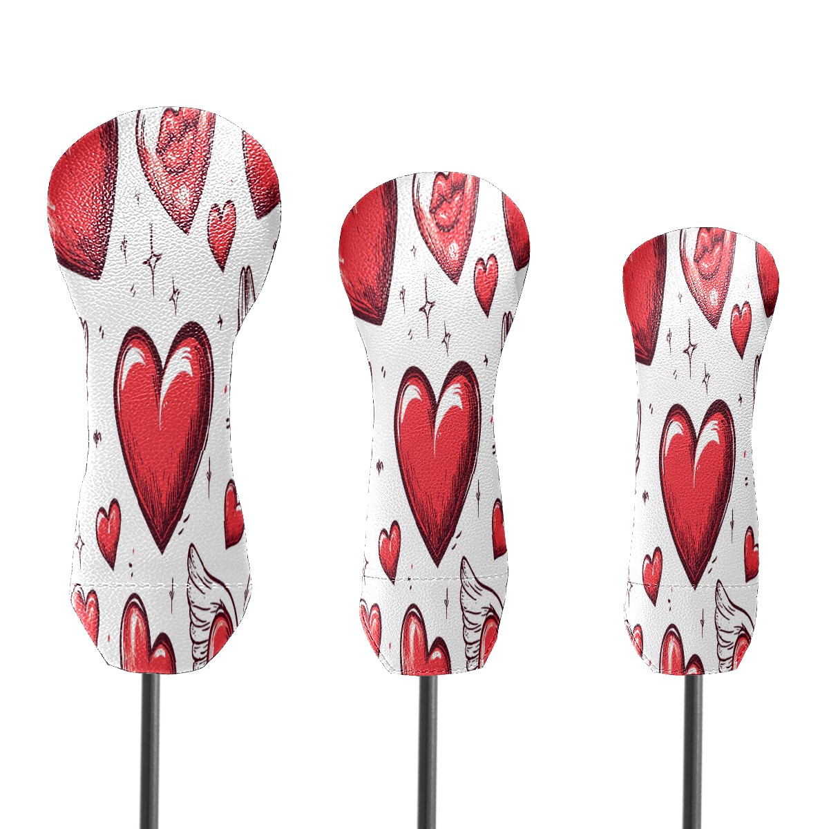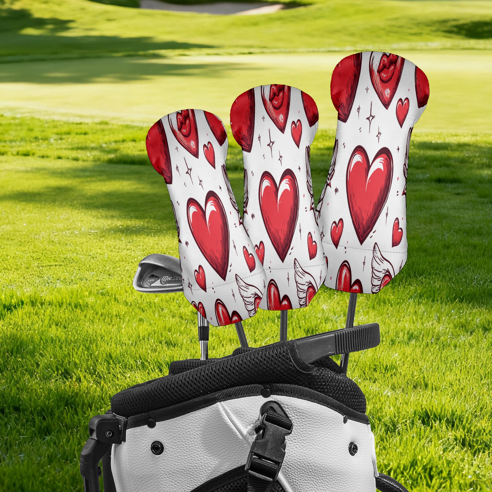 Golf Club Cover, Velvet Lining, High-Quality Leather, Suitable for the First Wood, Fairway Wood and Hybrid Club Head Cover, Suitable for Men and Women Golf Enthusiasts Hand-painted Love Heart