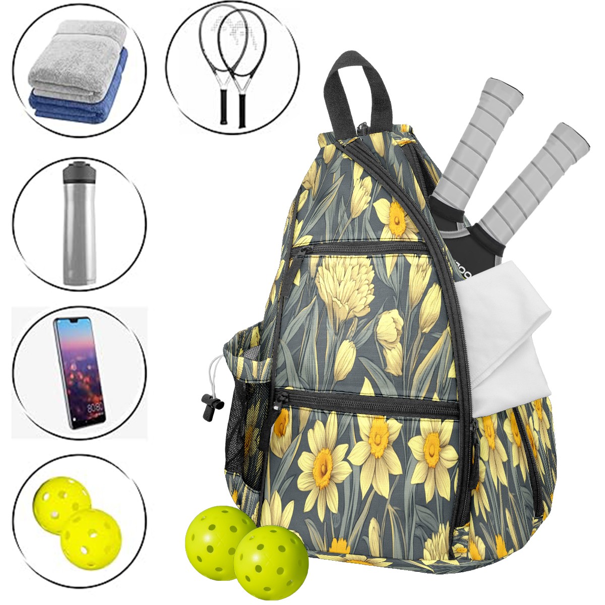 Pickleball Bags for Men Women Backpack with Large Capacity Lightweight Adjustable Pickle ball Sling Bag Hold Paddles, Balls, Accessories Yellow Daisy Patternfa45e614-1758685140572