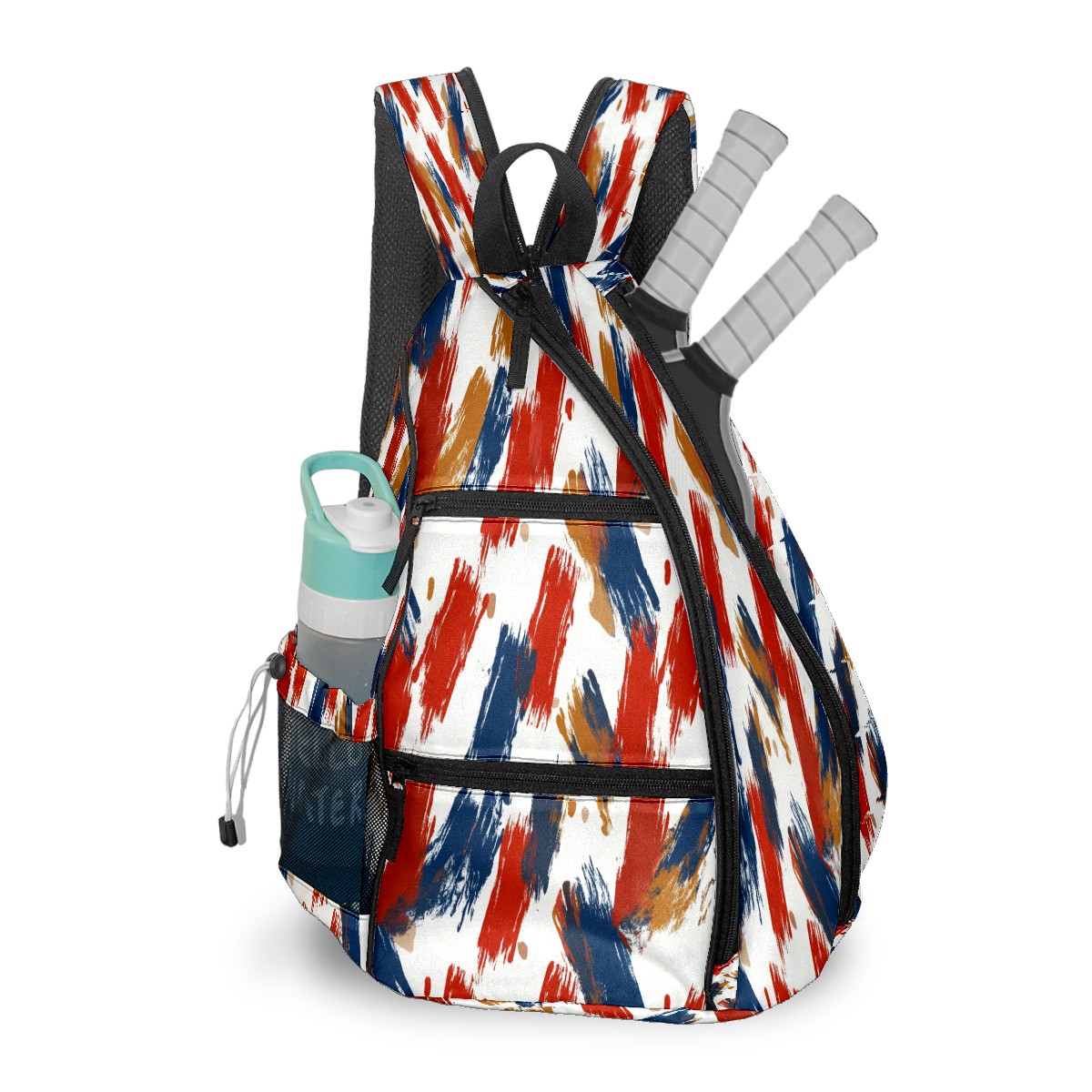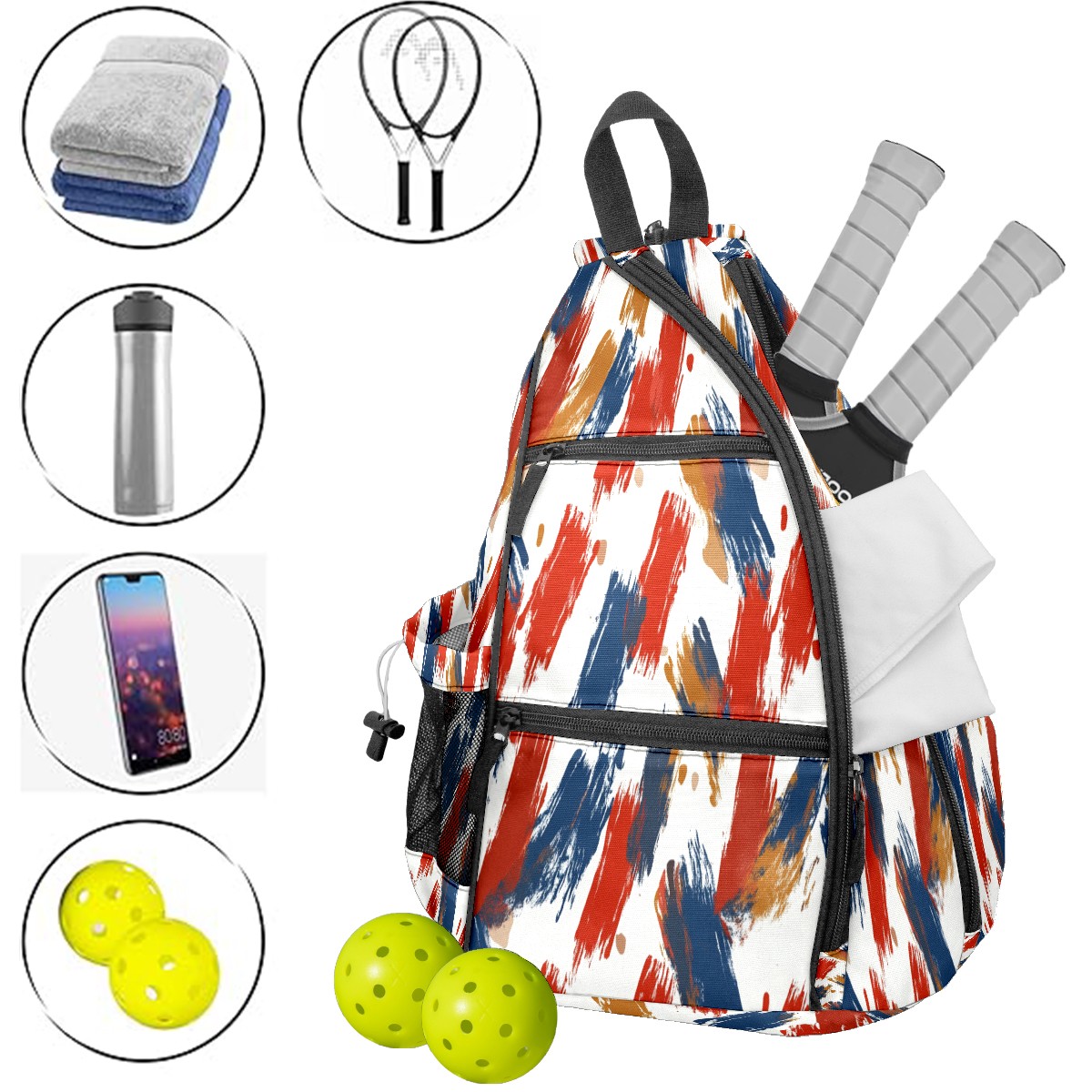 Pickleball Bags for Men Women Backpack with Large Capacity Lightweight Adjustable Pickle ball Sling Bag Hold Paddles, Balls, Accessories Brushstroke Pattern