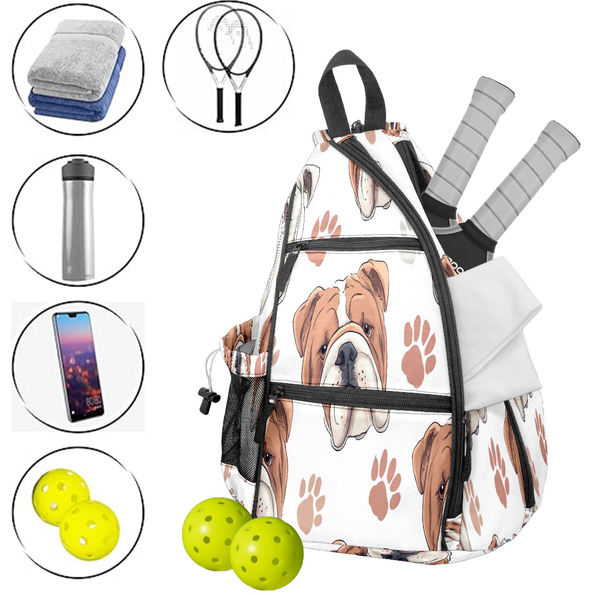 Pickleball Bags for Men Women Backpack with Large Capacity Lightweight Adjustable Pickle ball Sling Bag Hold Paddles, Balls, Accessories Brown BulldogPaw