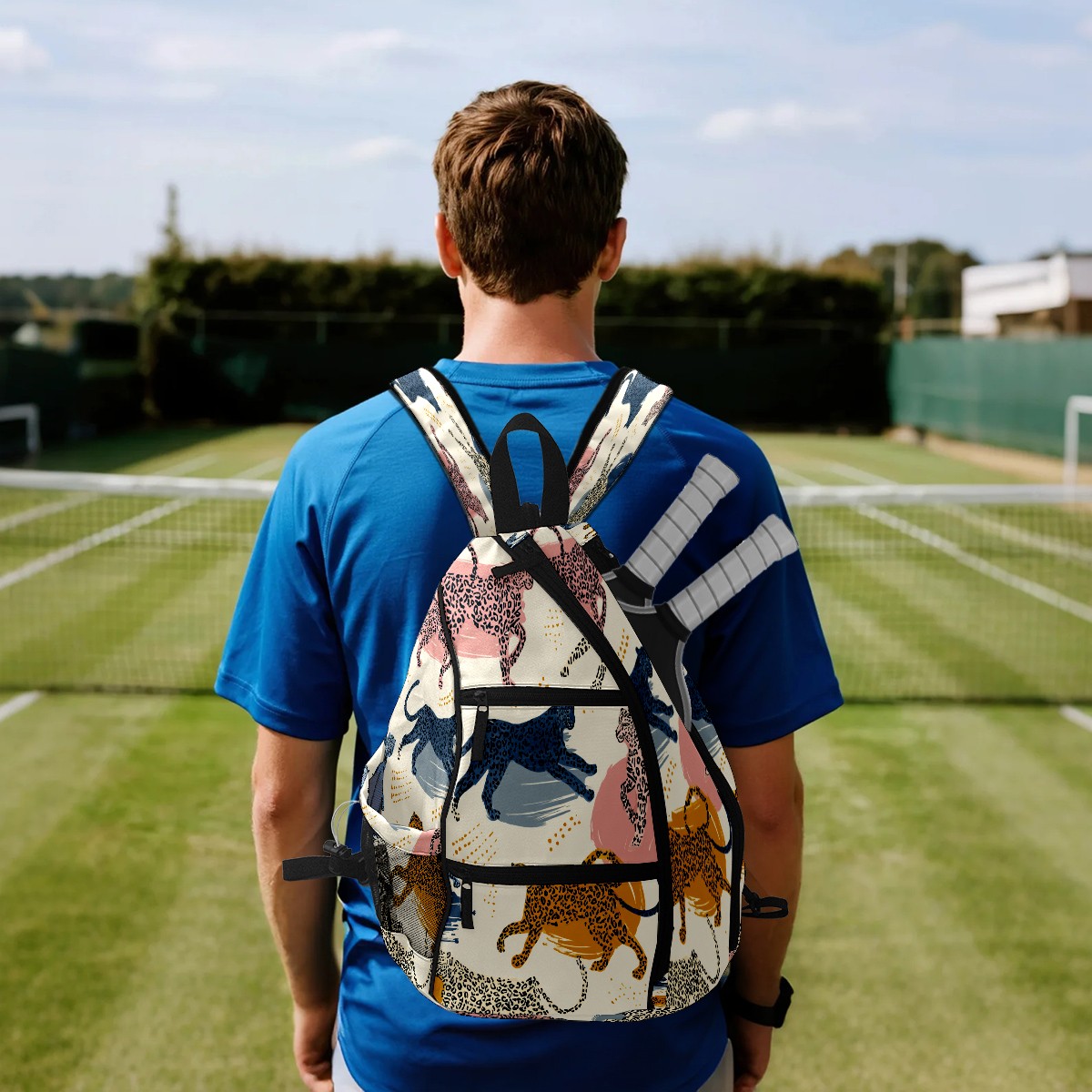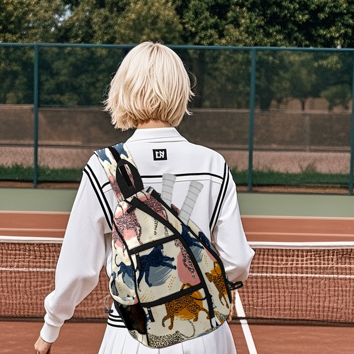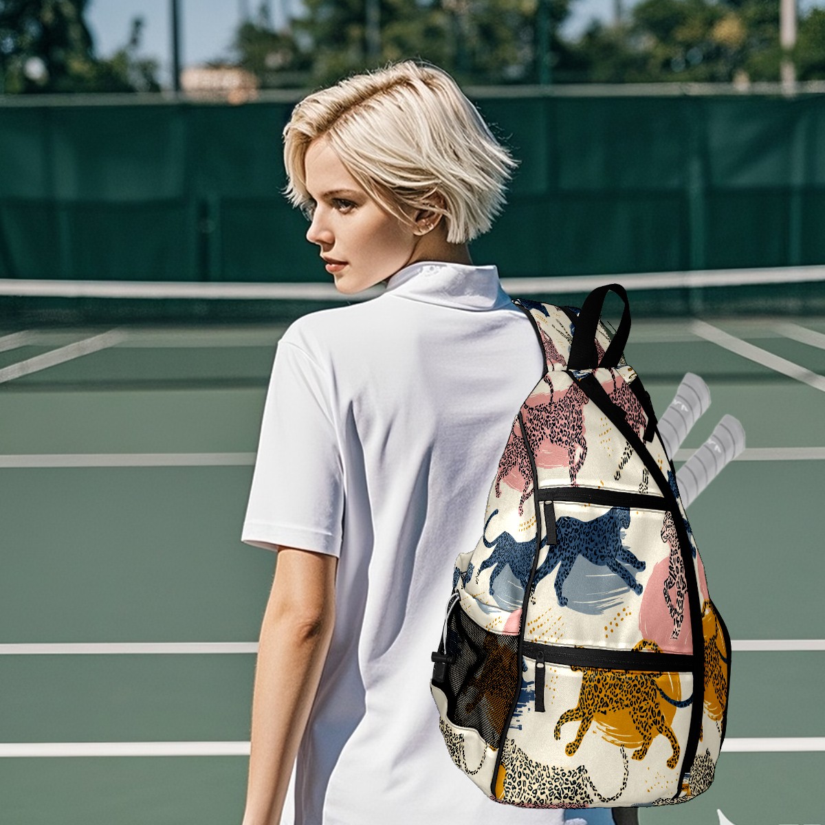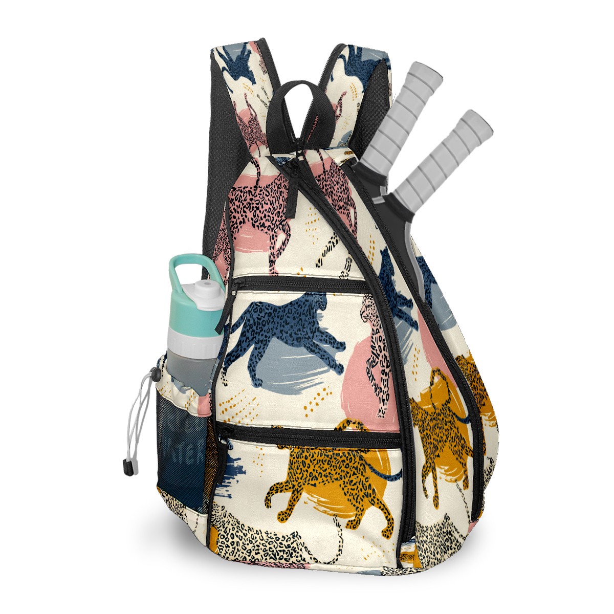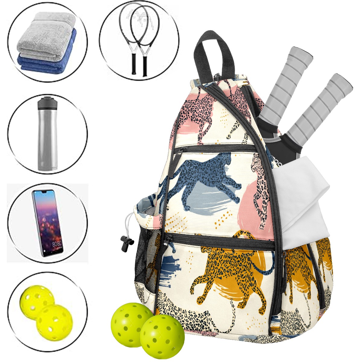 Pickleball Bags for Men Women Backpack with Large Capacity Lightweight Adjustable Pickle ball Sling Bag Hold Paddles, Balls, Accessories Colorful Leopard