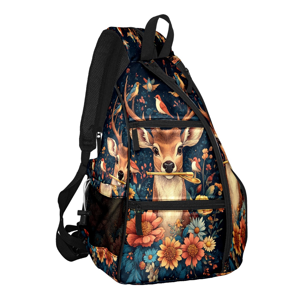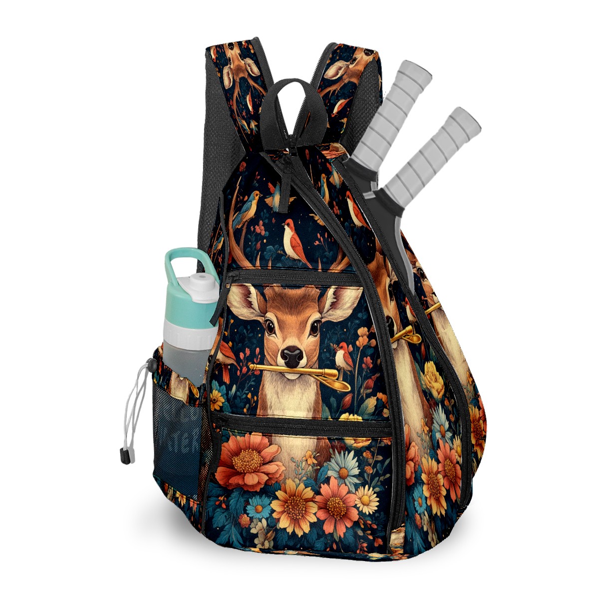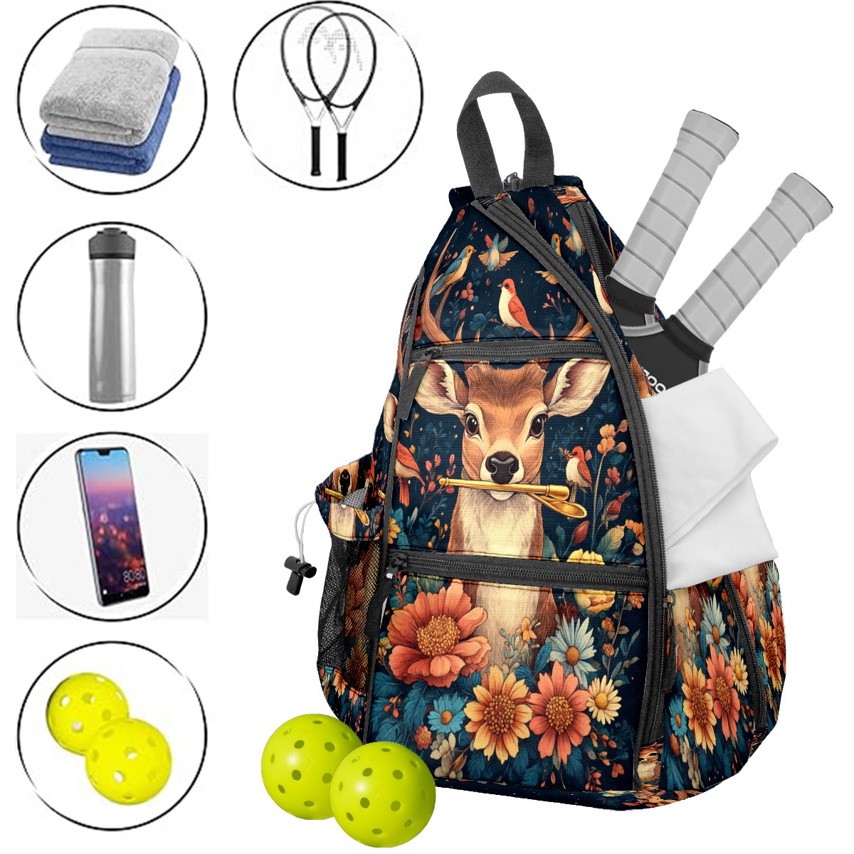 Pickleball Bags for Men Women Backpack with Large Capacity Lightweight Adjustable Pickle ball Sling Bag Hold Paddles, Balls, Accessories Deer Bouquet