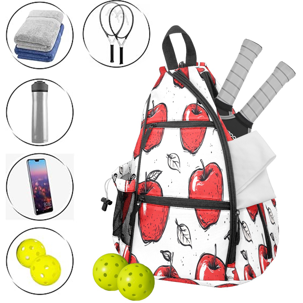 Pickleball Bags for Men Women Backpack with Large Capacity Lightweight Adjustable Pickle ball Sling Bag Hold Paddles, Balls, Accessories Red Apple
