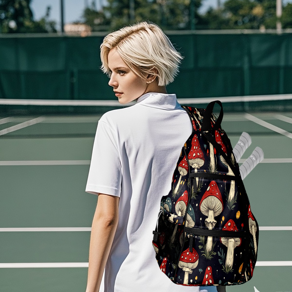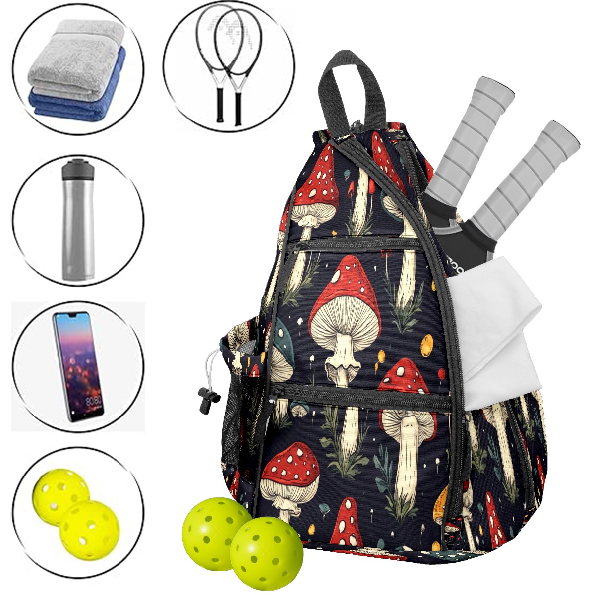 Pickleball Bags for Men Women Backpack with Large Capacity Lightweight Adjustable Pickle ball Sling Bag Hold Paddles, Balls, Accessories Mushroom Pattern
