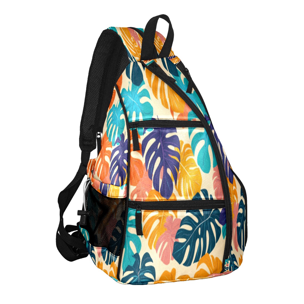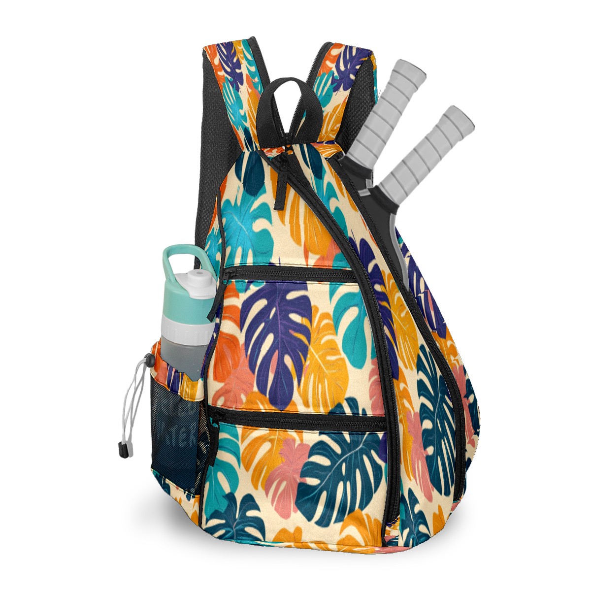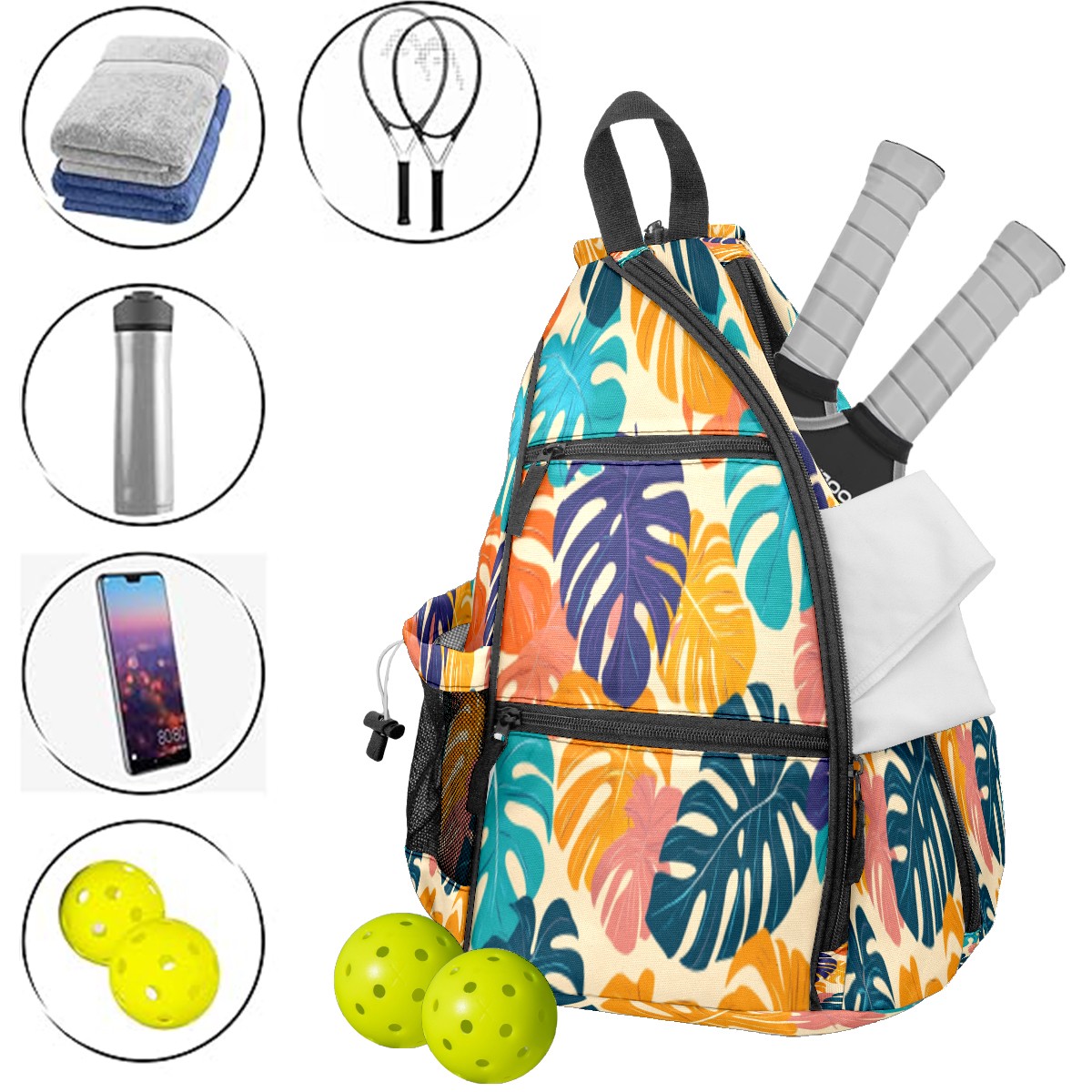 Pickleball Bags for Men Women Backpack with Large Capacity Lightweight Adjustable Pickle ball Sling Bag Hold Paddles, Balls, Accessories Tropical Leaf Pattern
