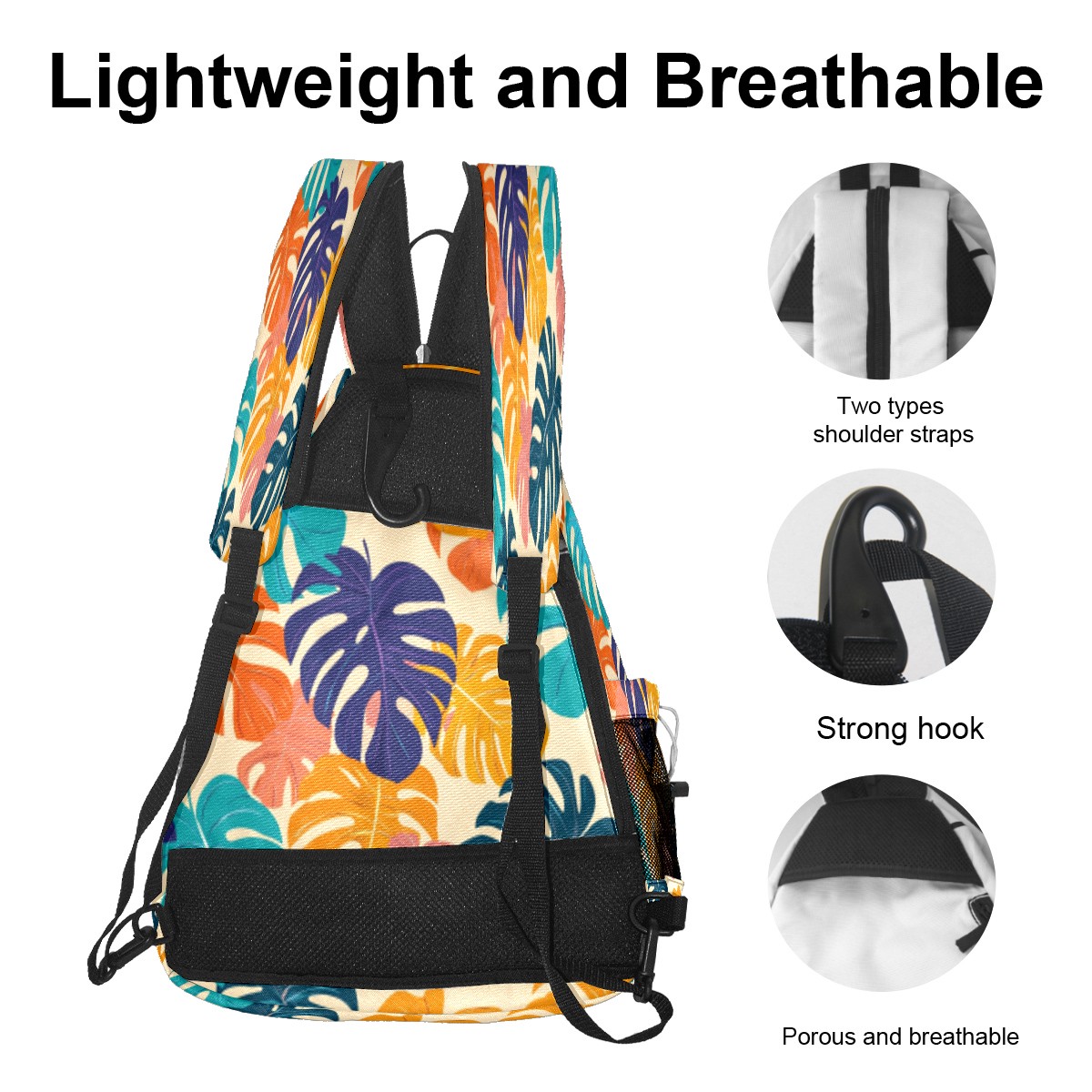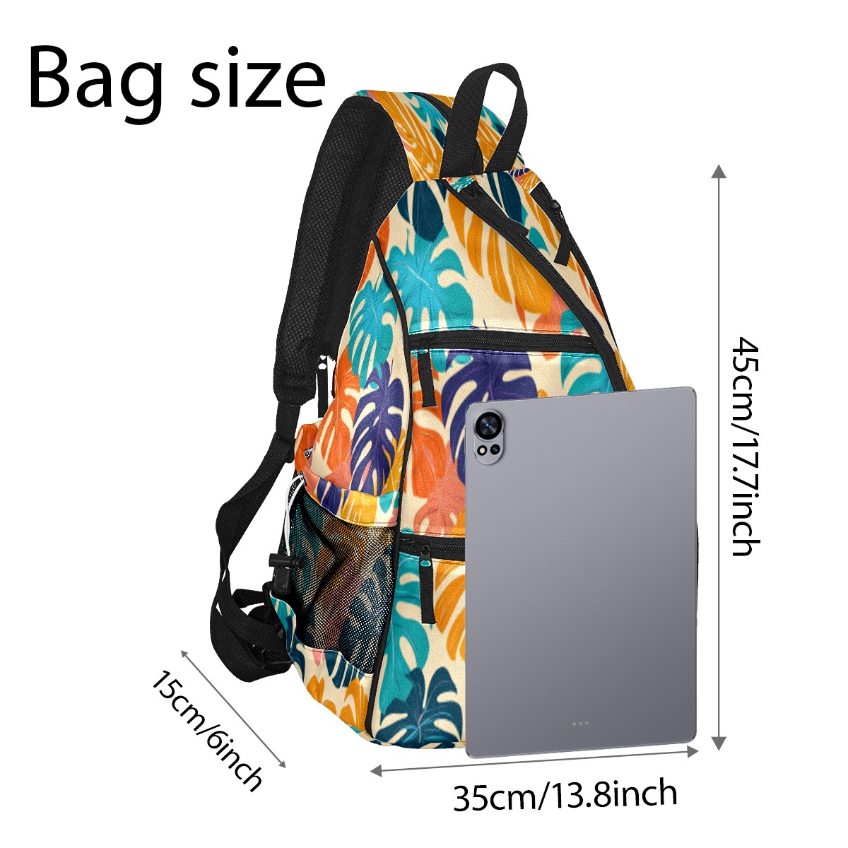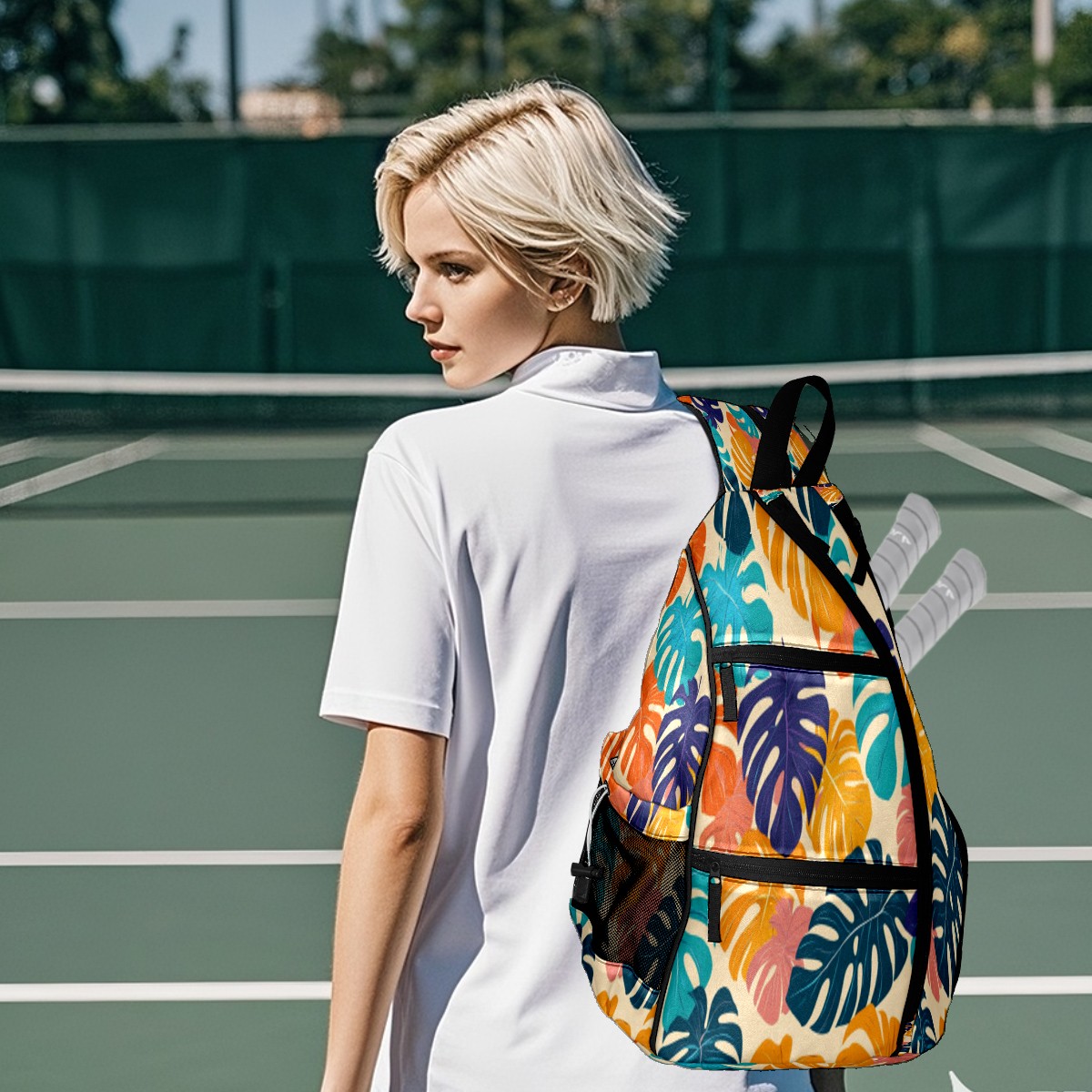 Pickleball Bags for Men Women Backpack with Large Capacity Lightweight Adjustable Pickle ball Sling Bag Hold Paddles, Balls, Accessories Tropical Leaf Pattern
