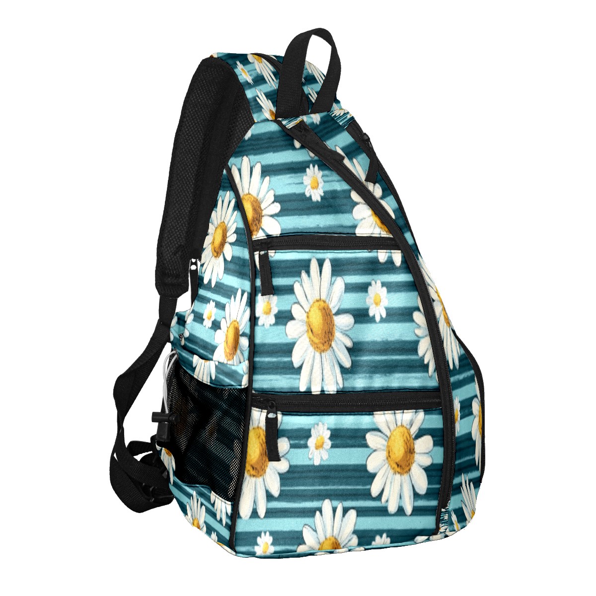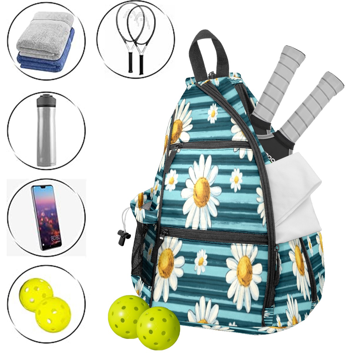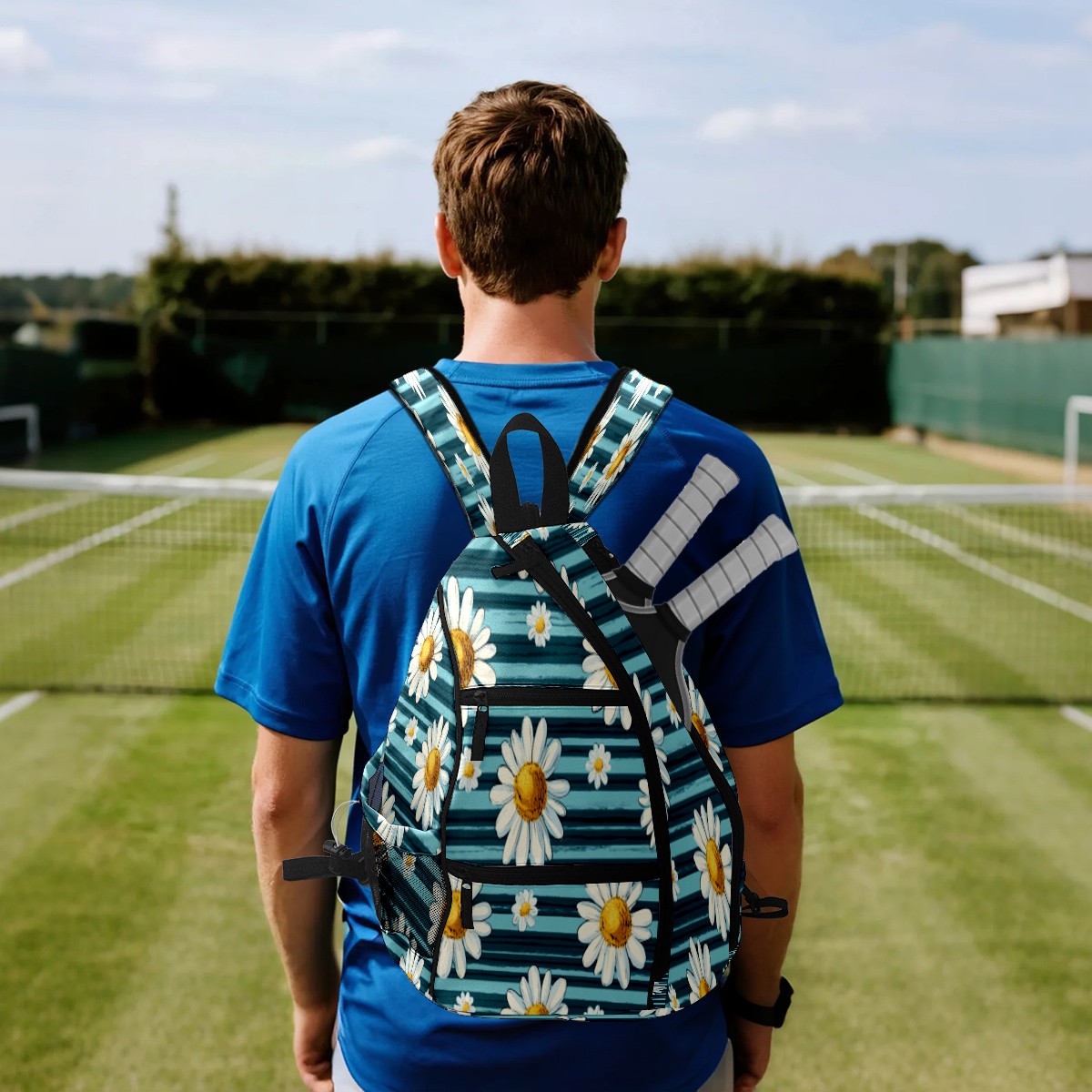 Pickleball Bags for Men Women Backpack with Large Capacity Lightweight Adjustable Pickle ball Sling Bag Hold Paddles, Balls, Accessories Daisy Stripe Pattern
