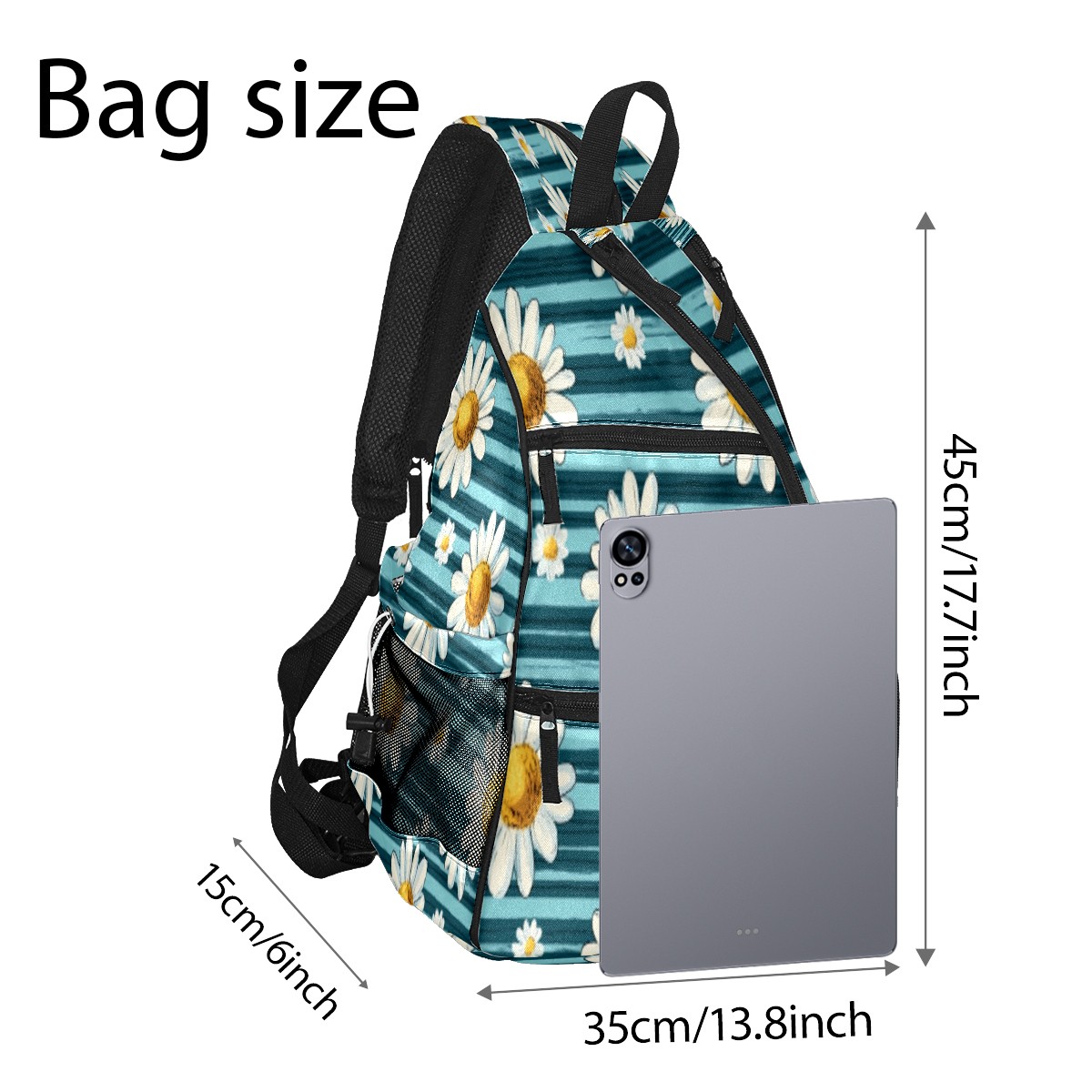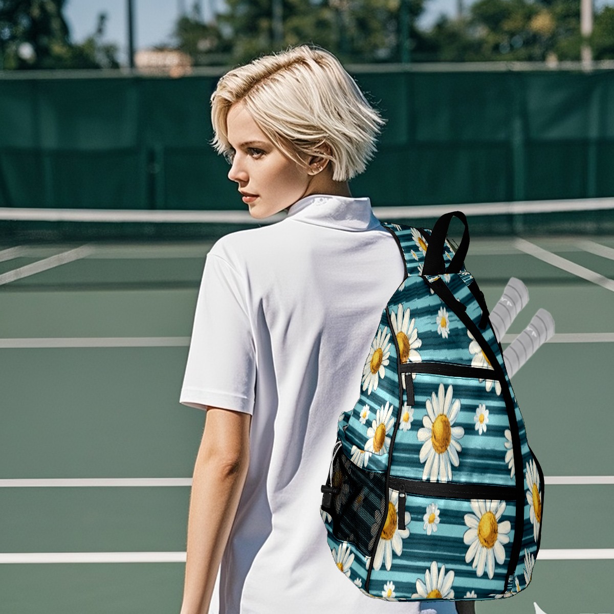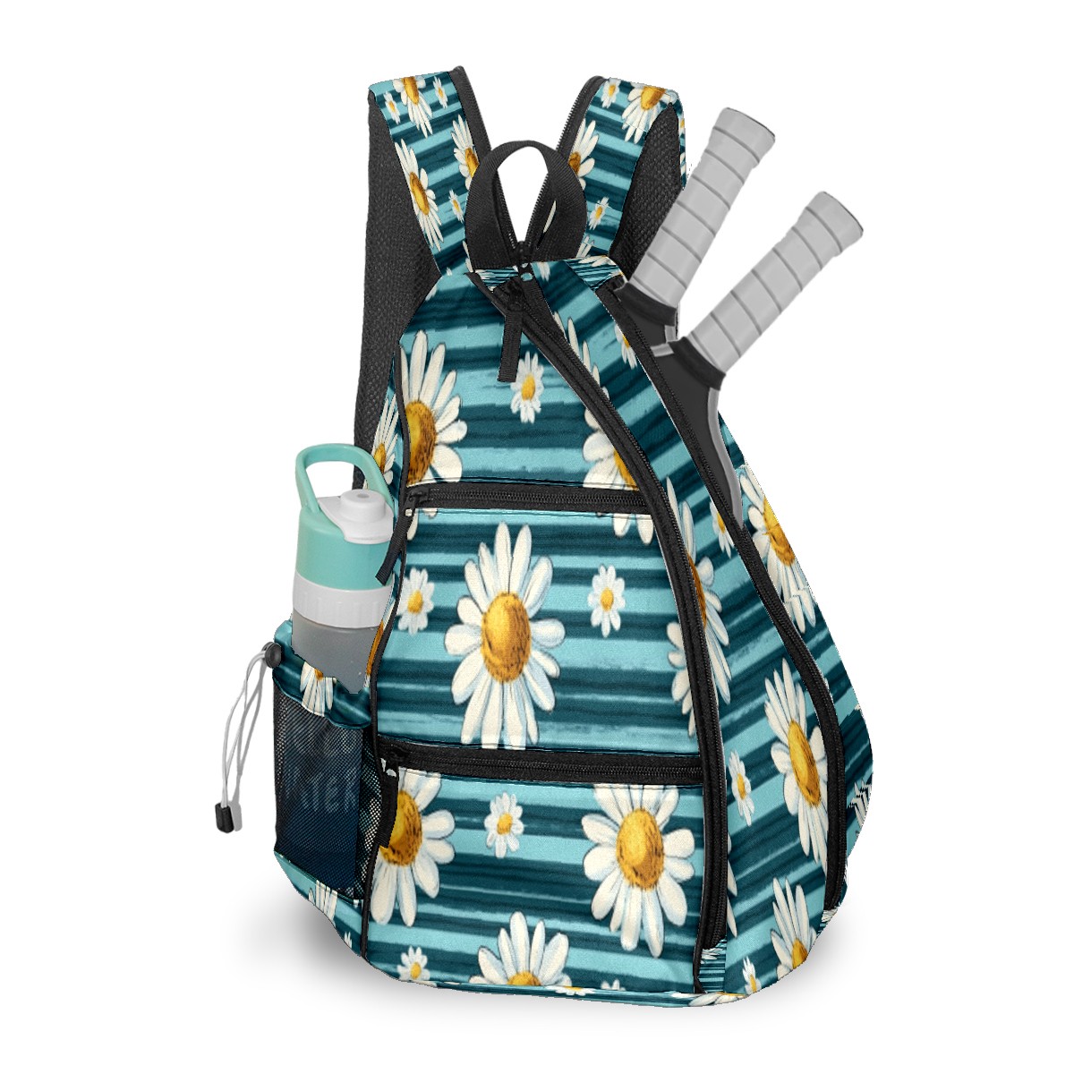 Pickleball Bags for Men Women Backpack with Large Capacity Lightweight Adjustable Pickle ball Sling Bag Hold Paddles, Balls, Accessories Daisy Stripe Pattern