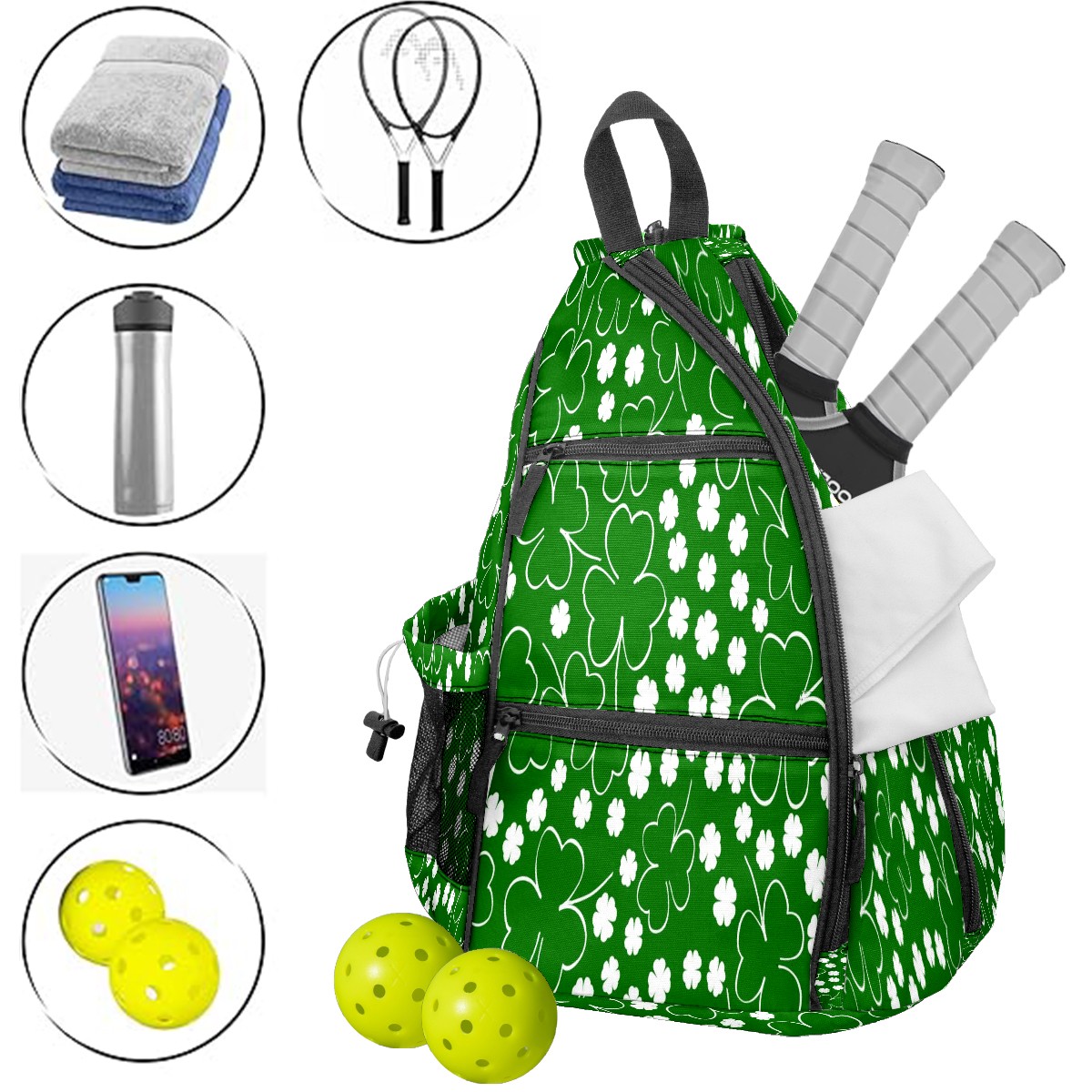 Pickleball Sling Bag for Women and Men - Backpack with Nylon Fabric - Woven Strap - Mesh Pocket - Fence Hook - Crossbody St Patrick's Day (1)