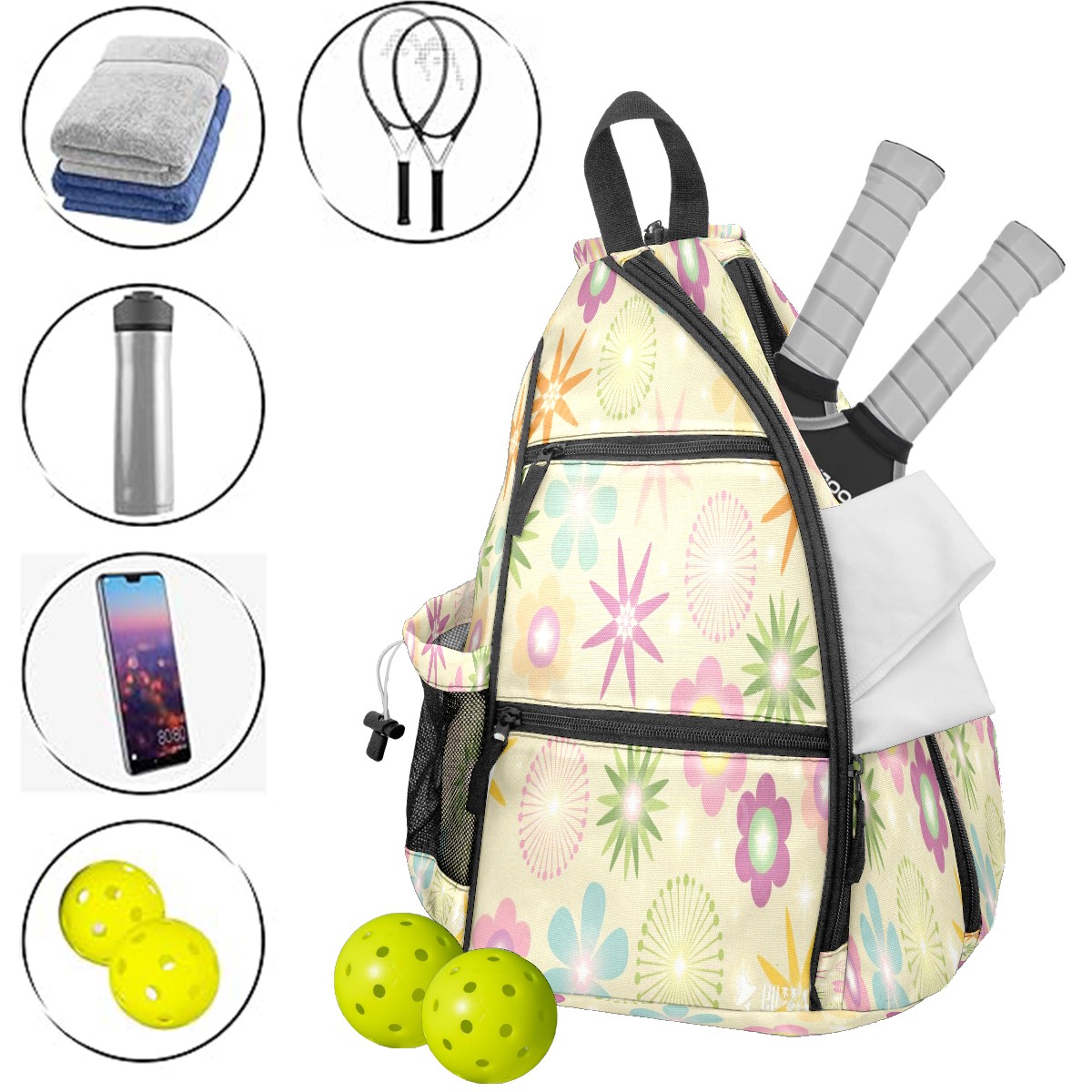 Pickleball Sling Bag for Women and Men - Backpack with Nylon Fabric - Woven Strap - Mesh Pocket - Fence Hook - Crossbody Floral Pattern