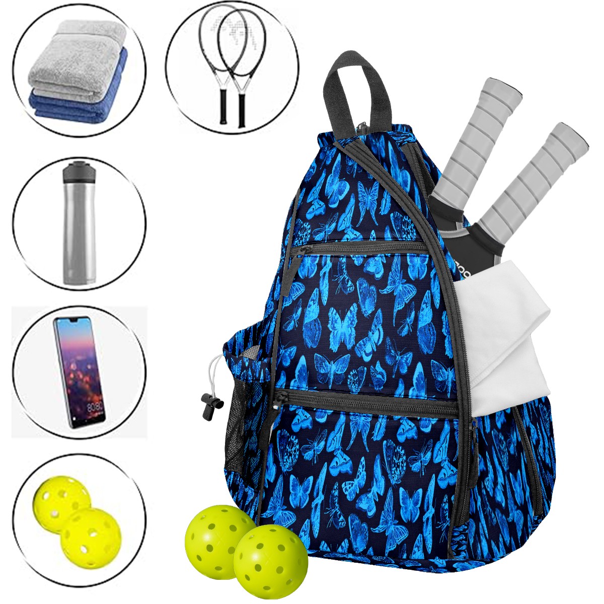 Pickleball Sling Bag for Women and Men - Backpack with Nylon Fabric - Woven Strap - Mesh Pocket - Fence Hook - Crossbody Exported