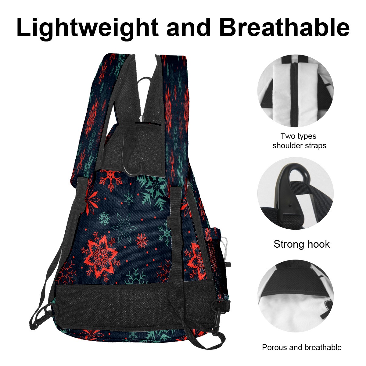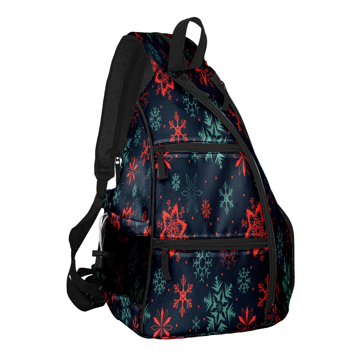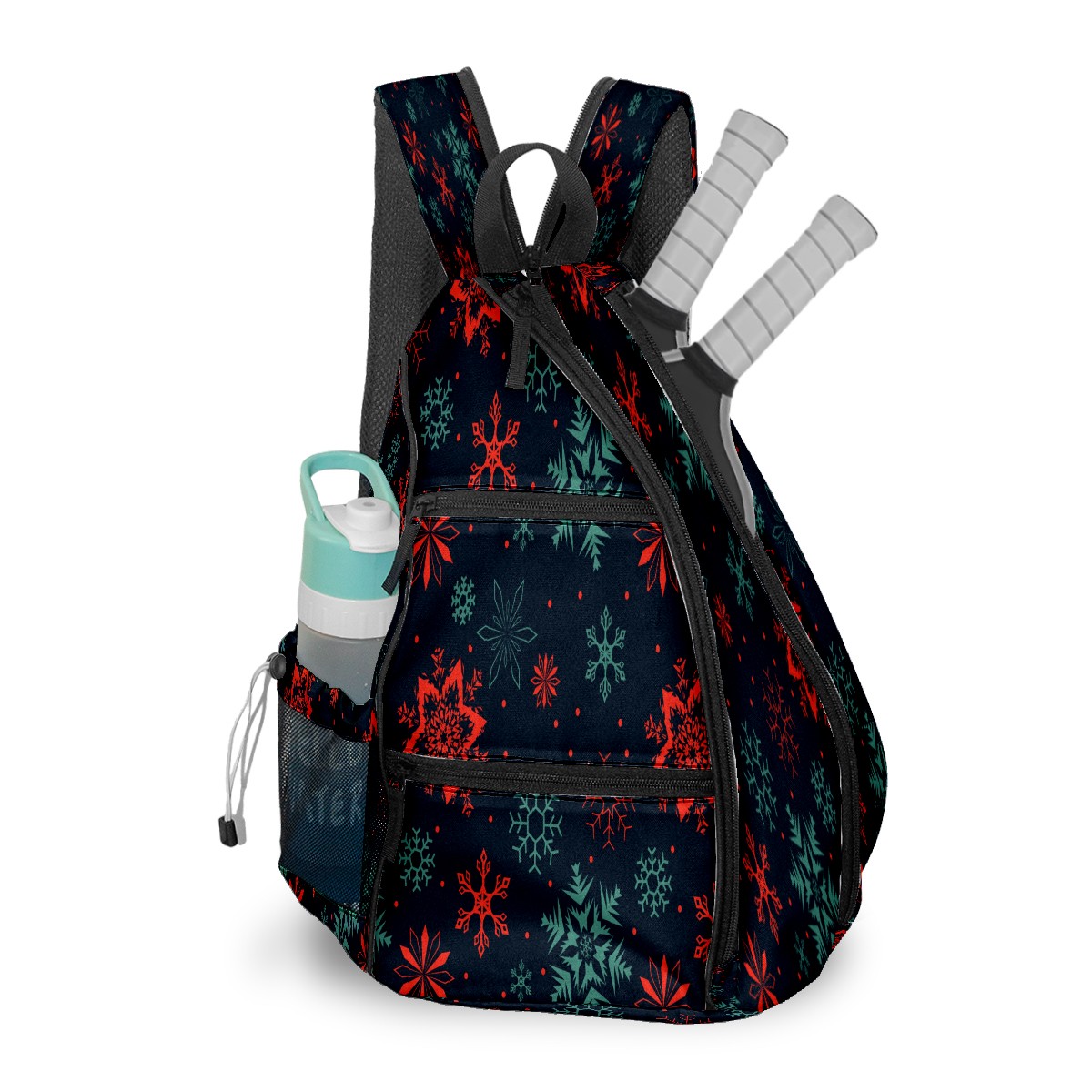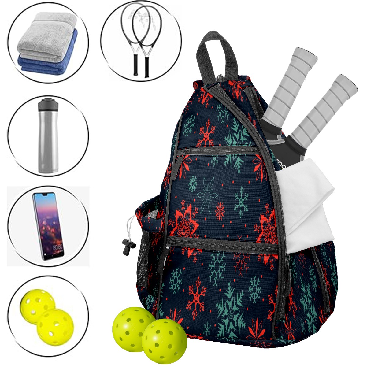 Pickleball Sling Bag for Women and Men - Backpack with Nylon Fabric - Woven Strap - Mesh Pocket - Fence Hook - Crossbody Christmas Art Snowflake (1)