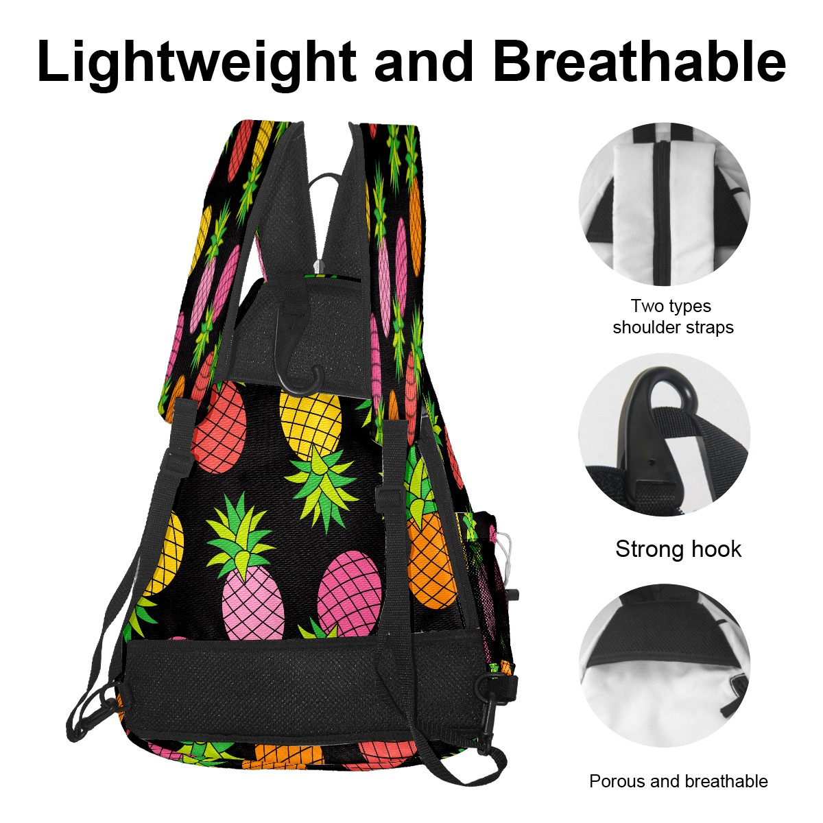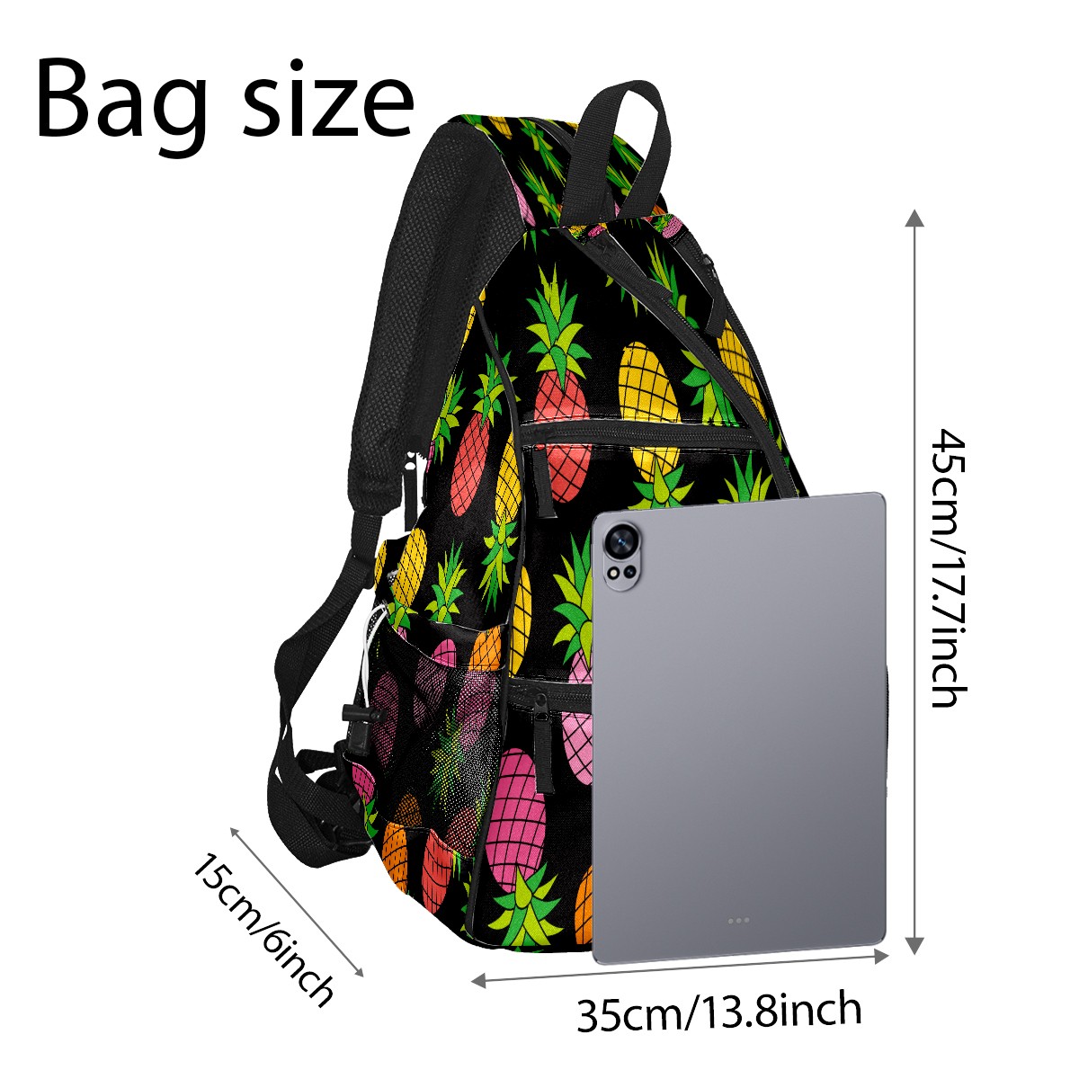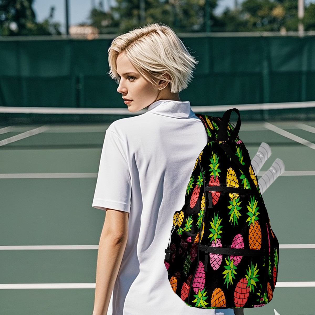 Pickleball Sling Bag for Women and Men - Backpack with Nylon Fabric - Woven Strap - Mesh Pocket - Fence Hook - Crossbody Pink Yellow Coral Pineapple Black