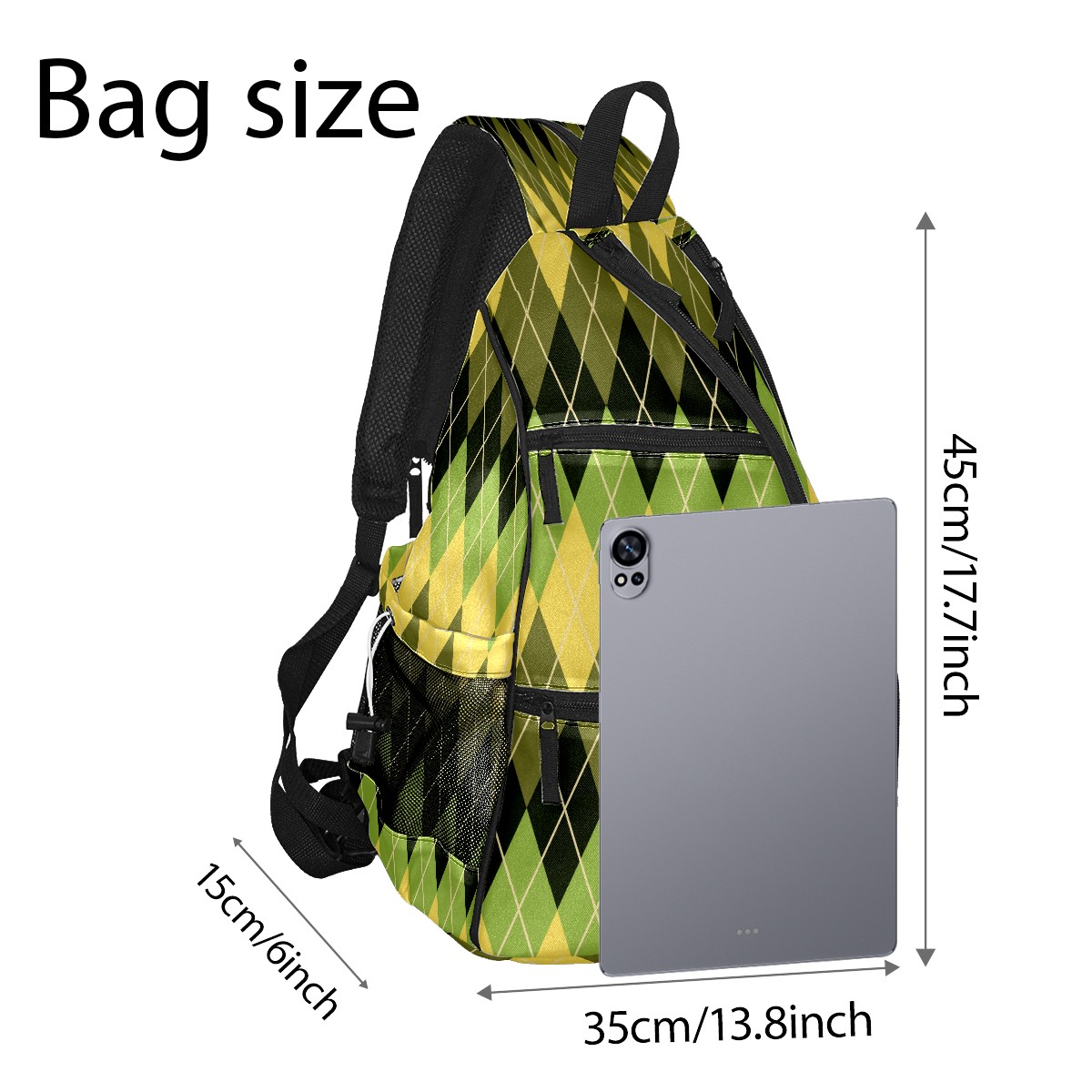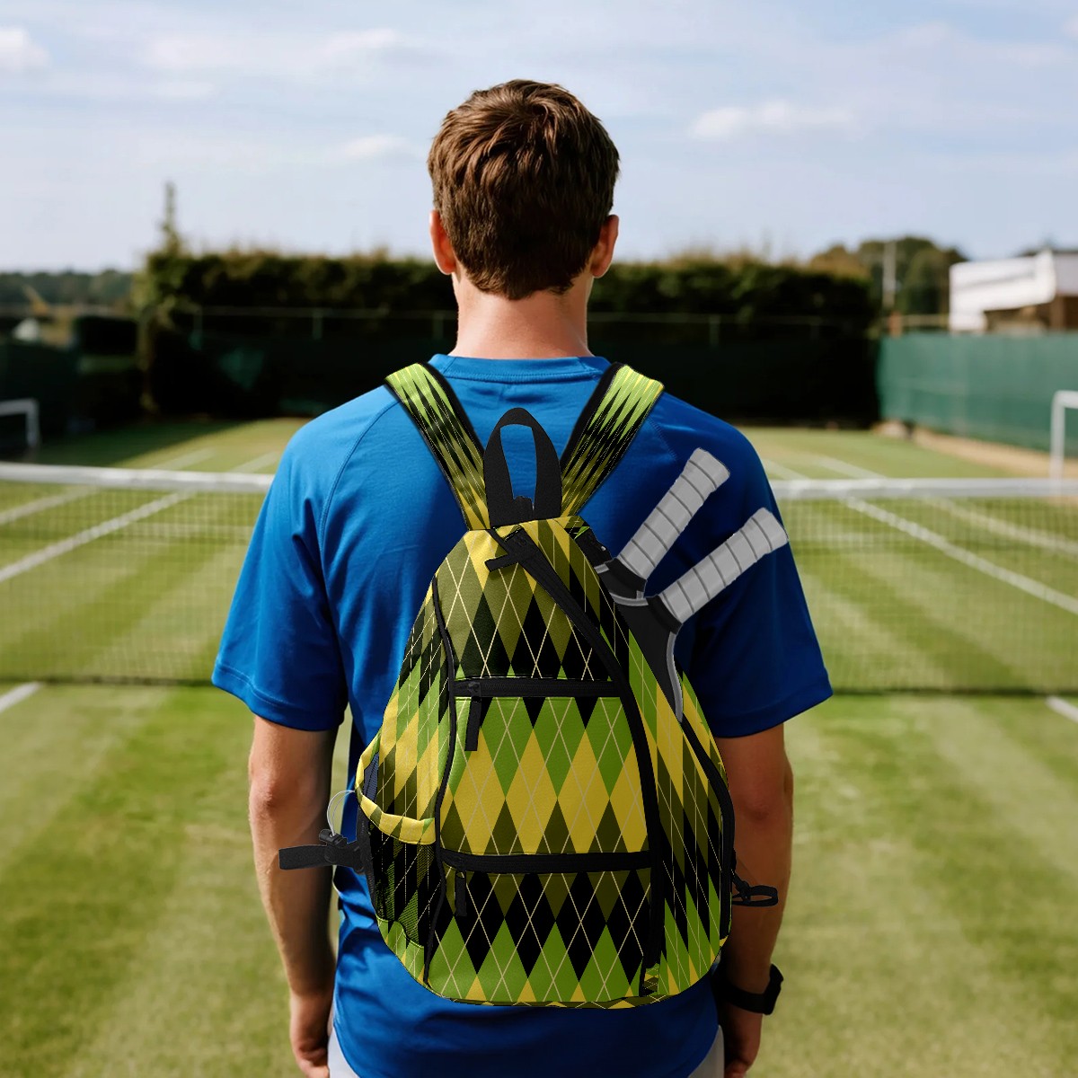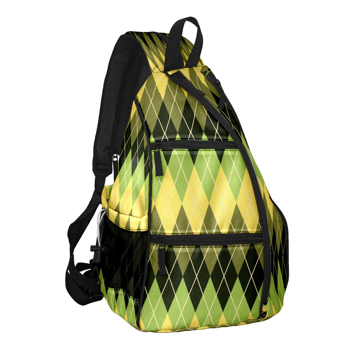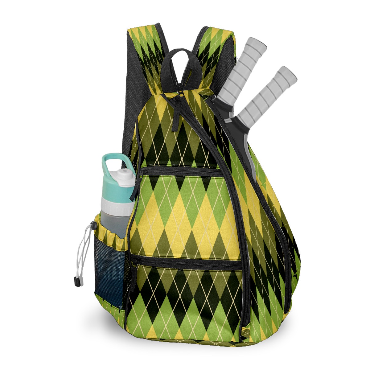 Pickleball Sling Bag for Women and Men - Backpack with Nylon Fabric - Woven Strap - Mesh Pocket - Fence Hook - Crossbody Geometric Argyle Pattern