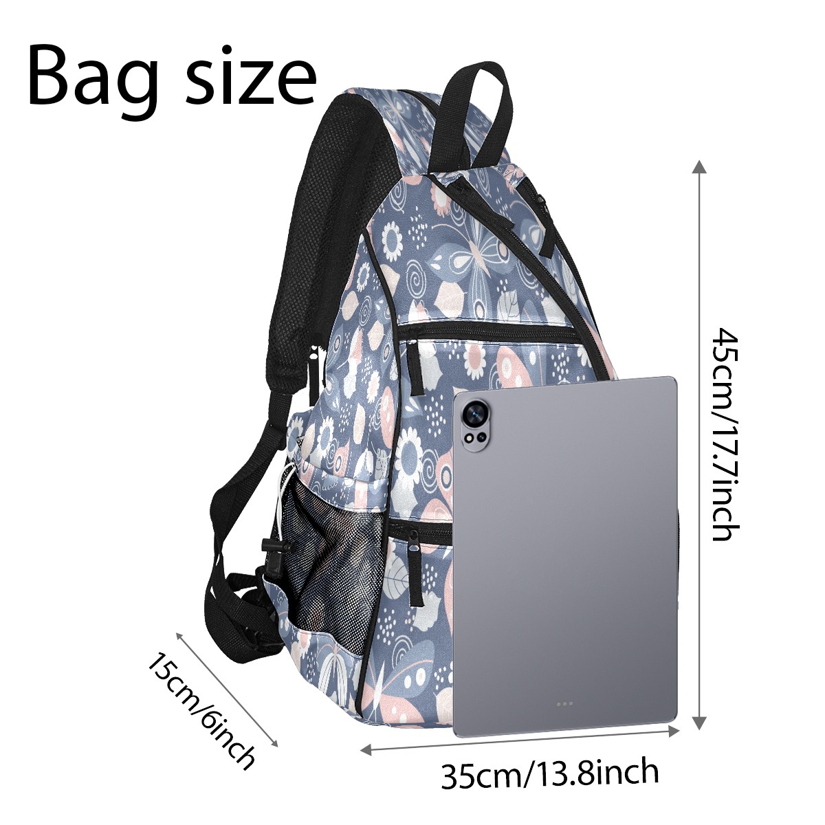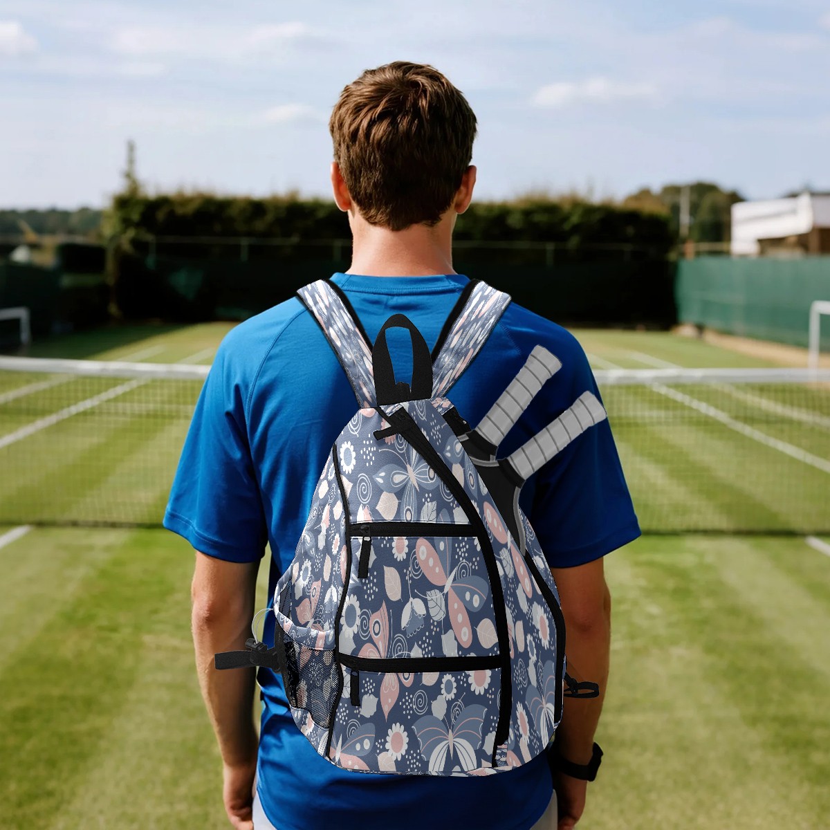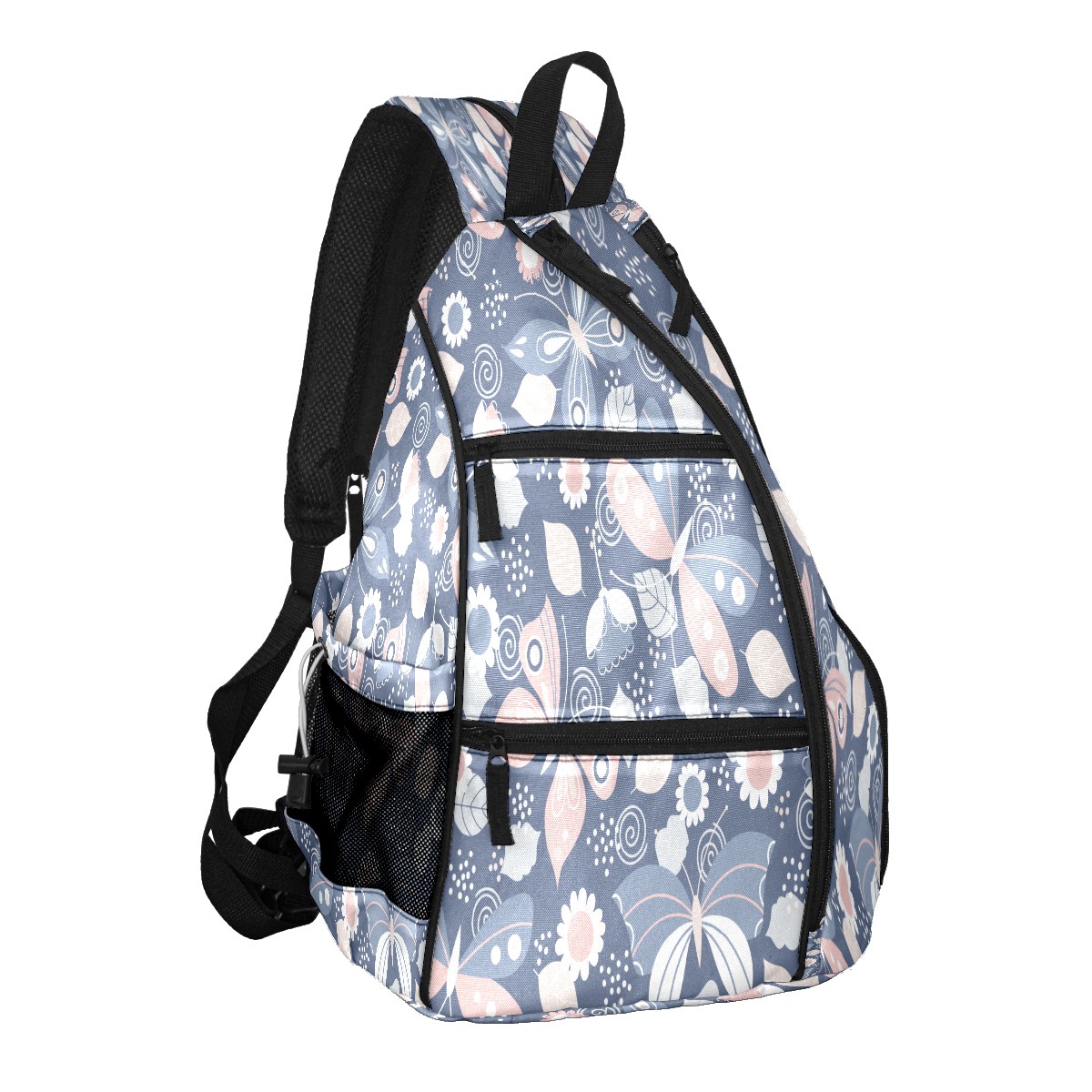 Pickleball Sling Bag for Women and Men - Backpack with Nylon Fabric - Woven Strap - Mesh Pocket - Fence Hook - Crossbody Butterfly Printing