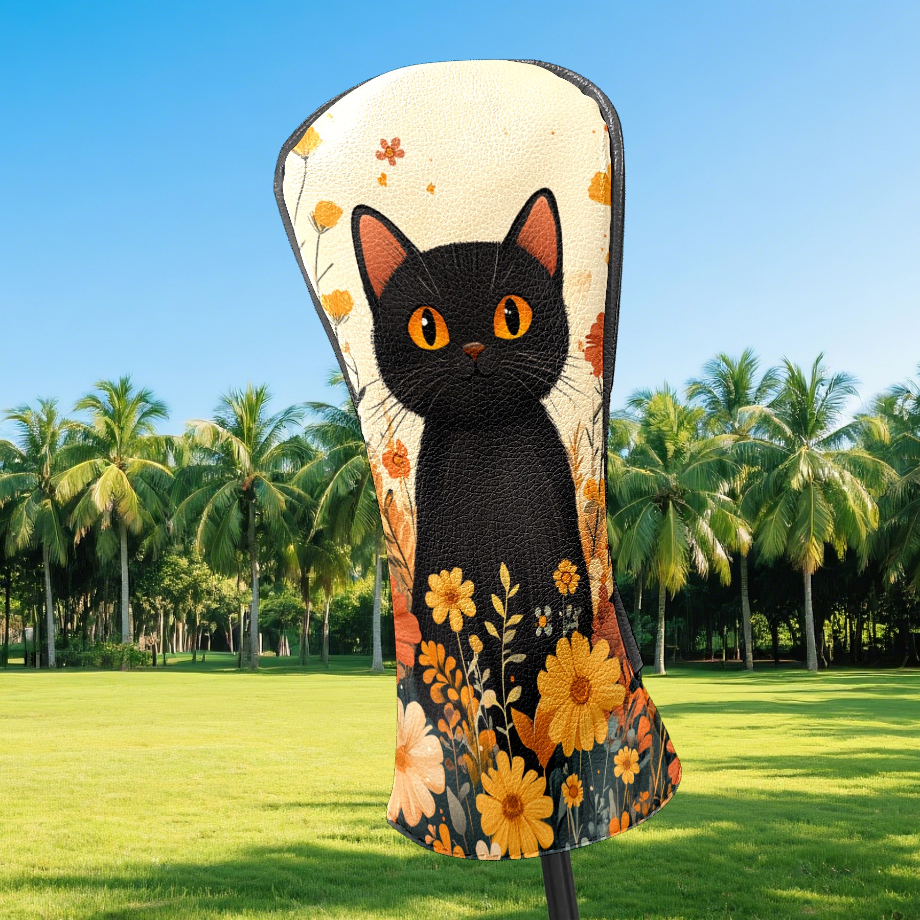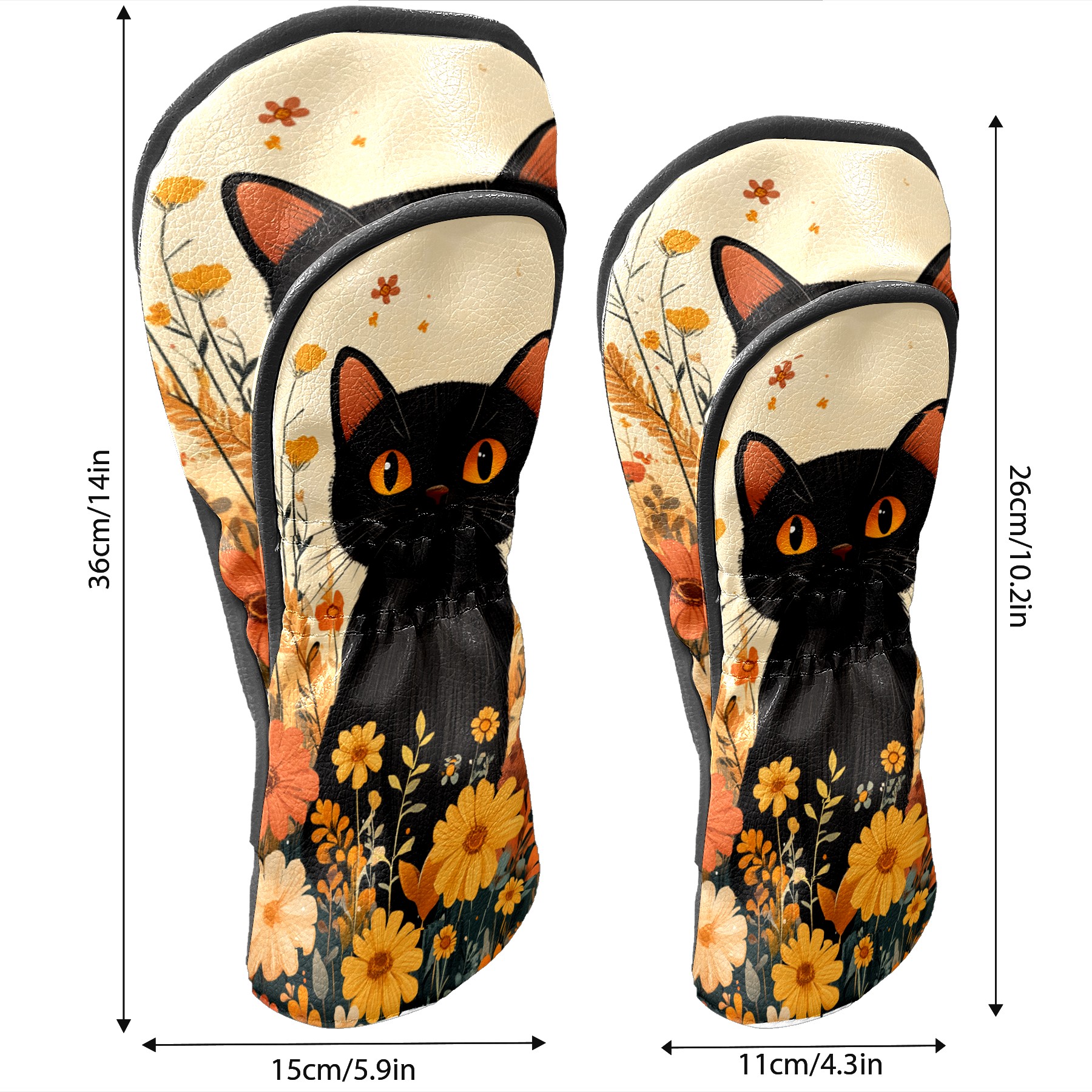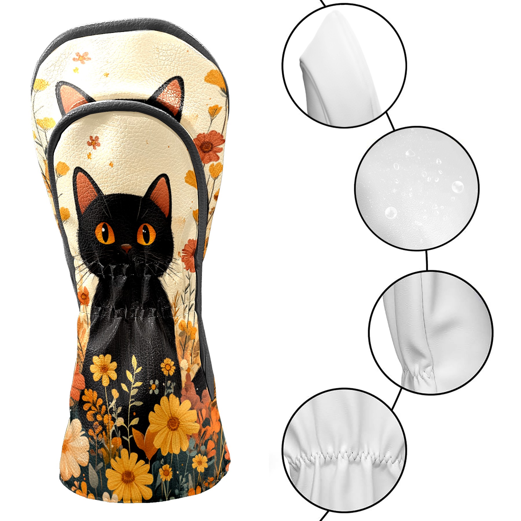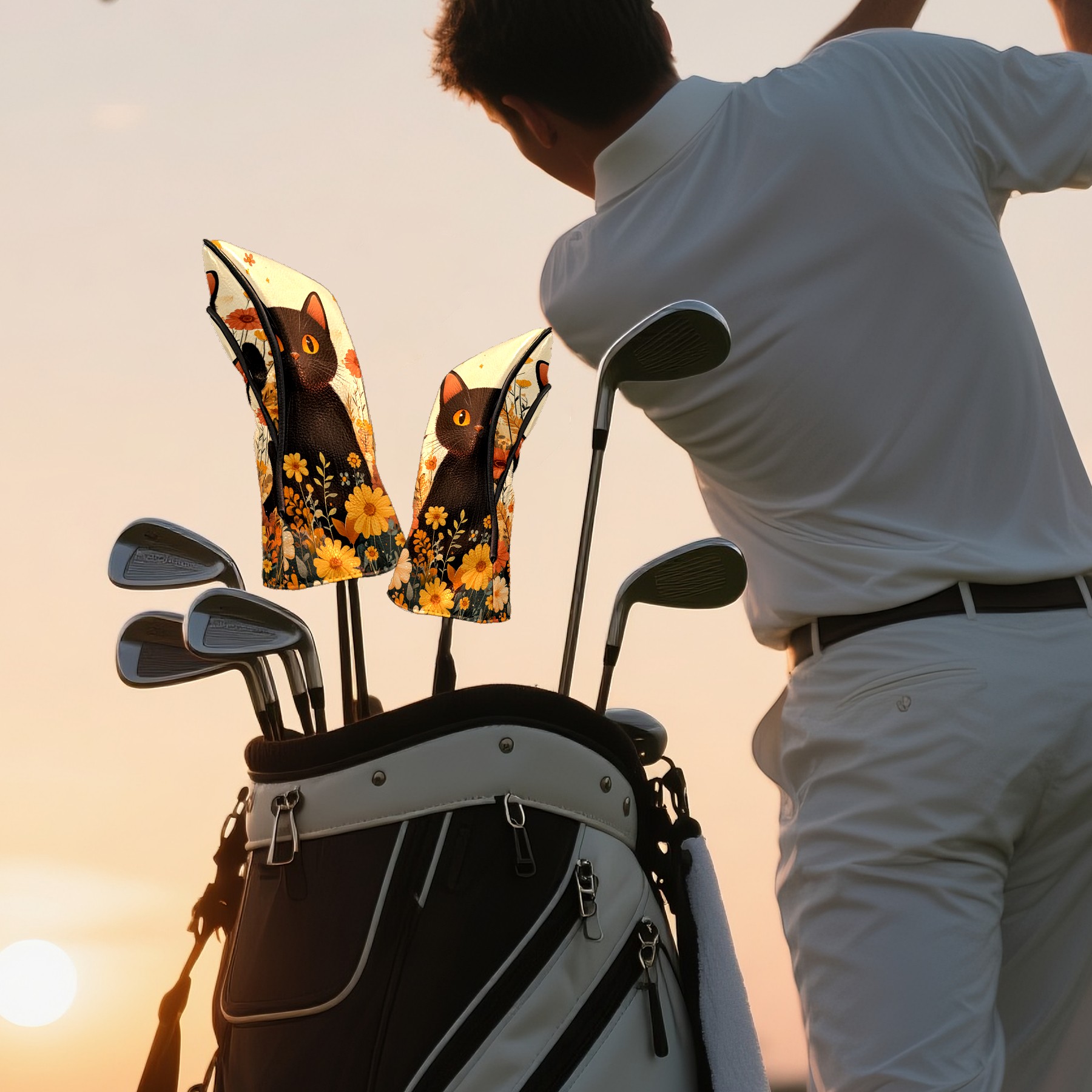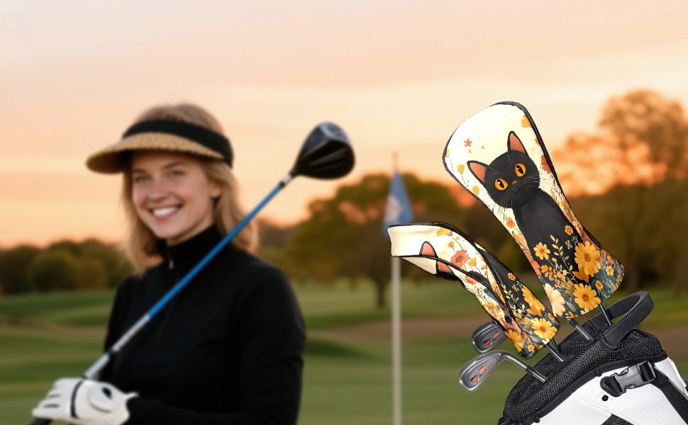 Golf Club Covers PU Leather Waterproof,Golf Club Head Covers for Fairway Woods and Hybrids Flowers Cat Unisex Suitable for Most Brands