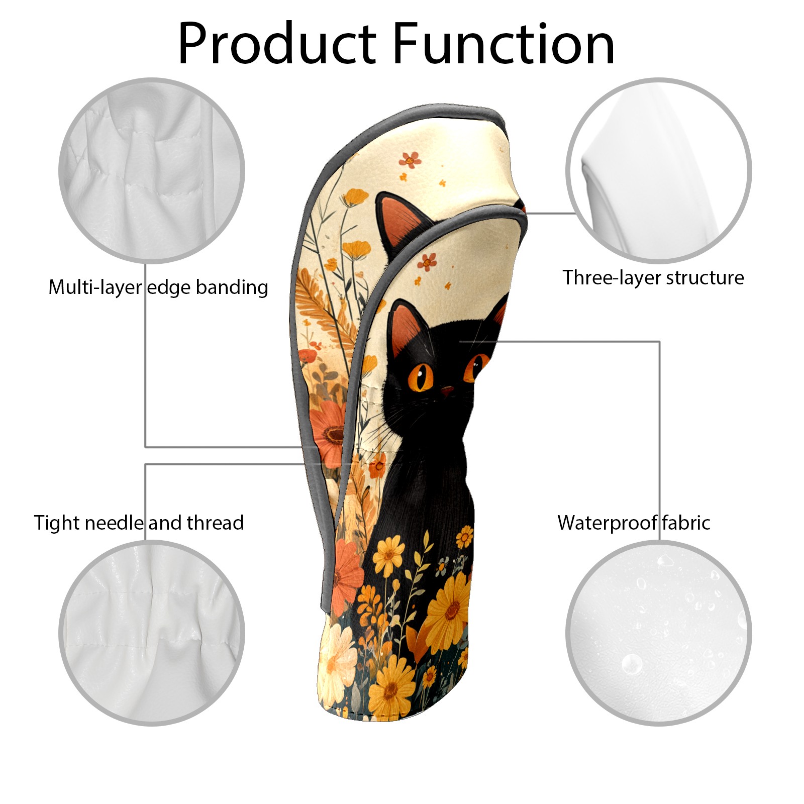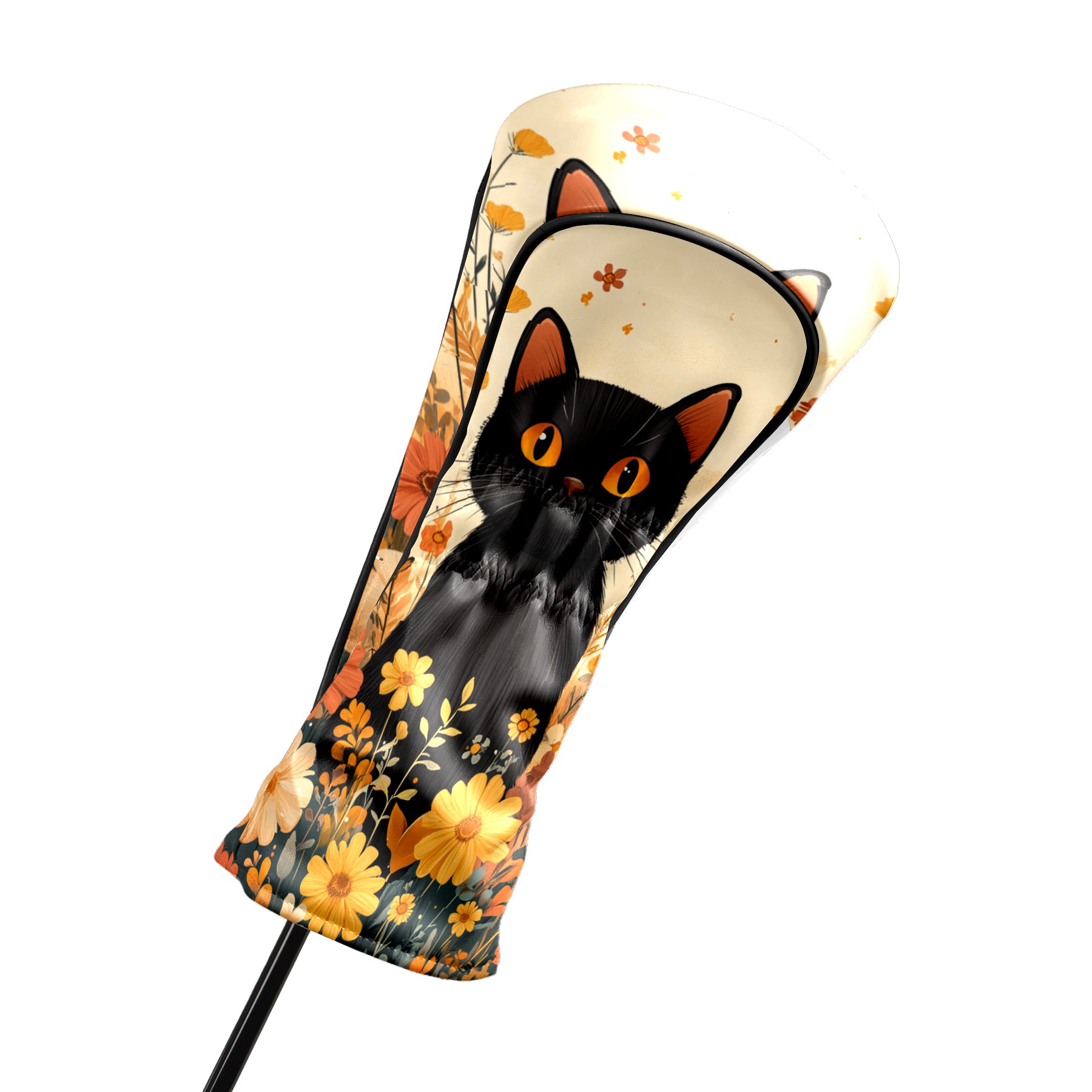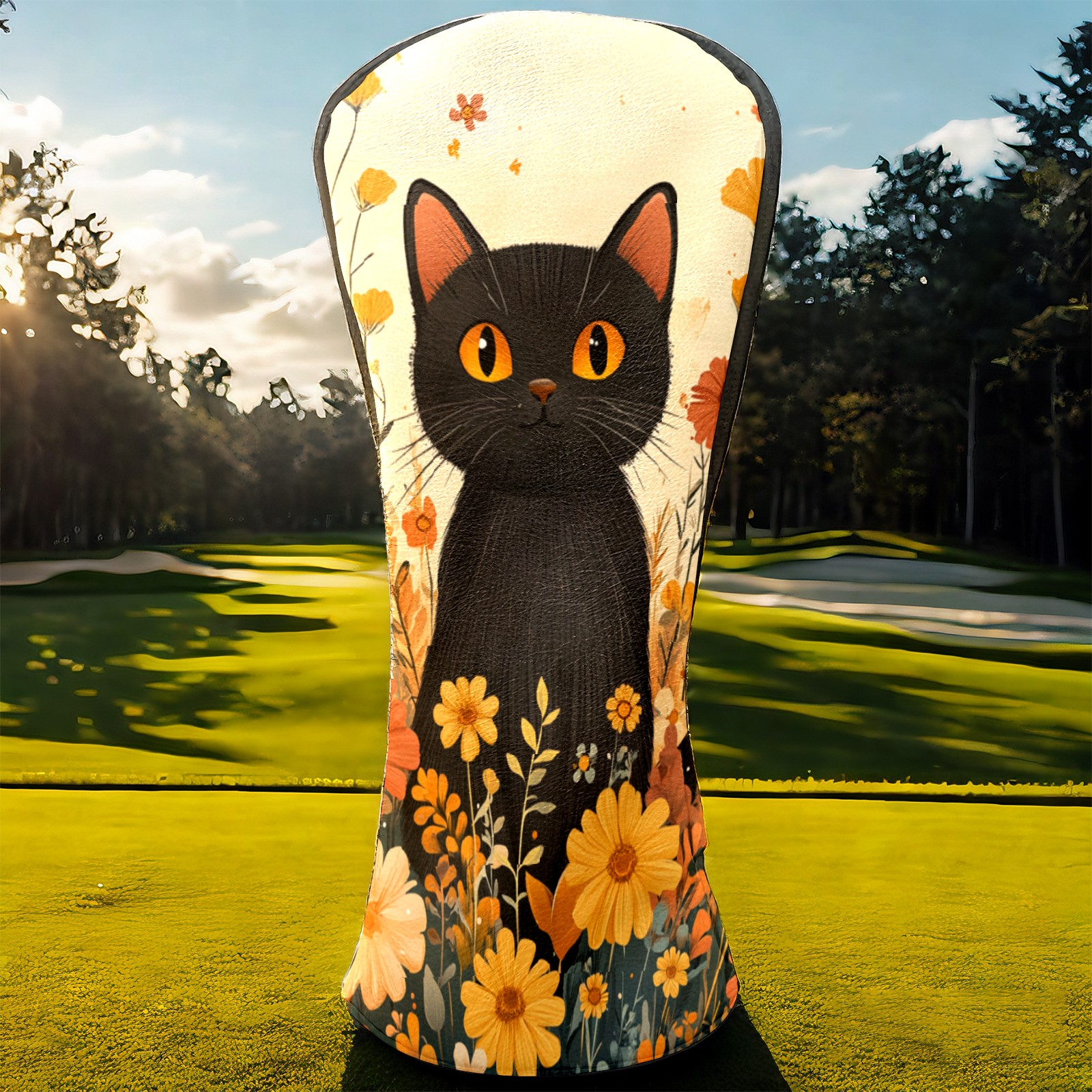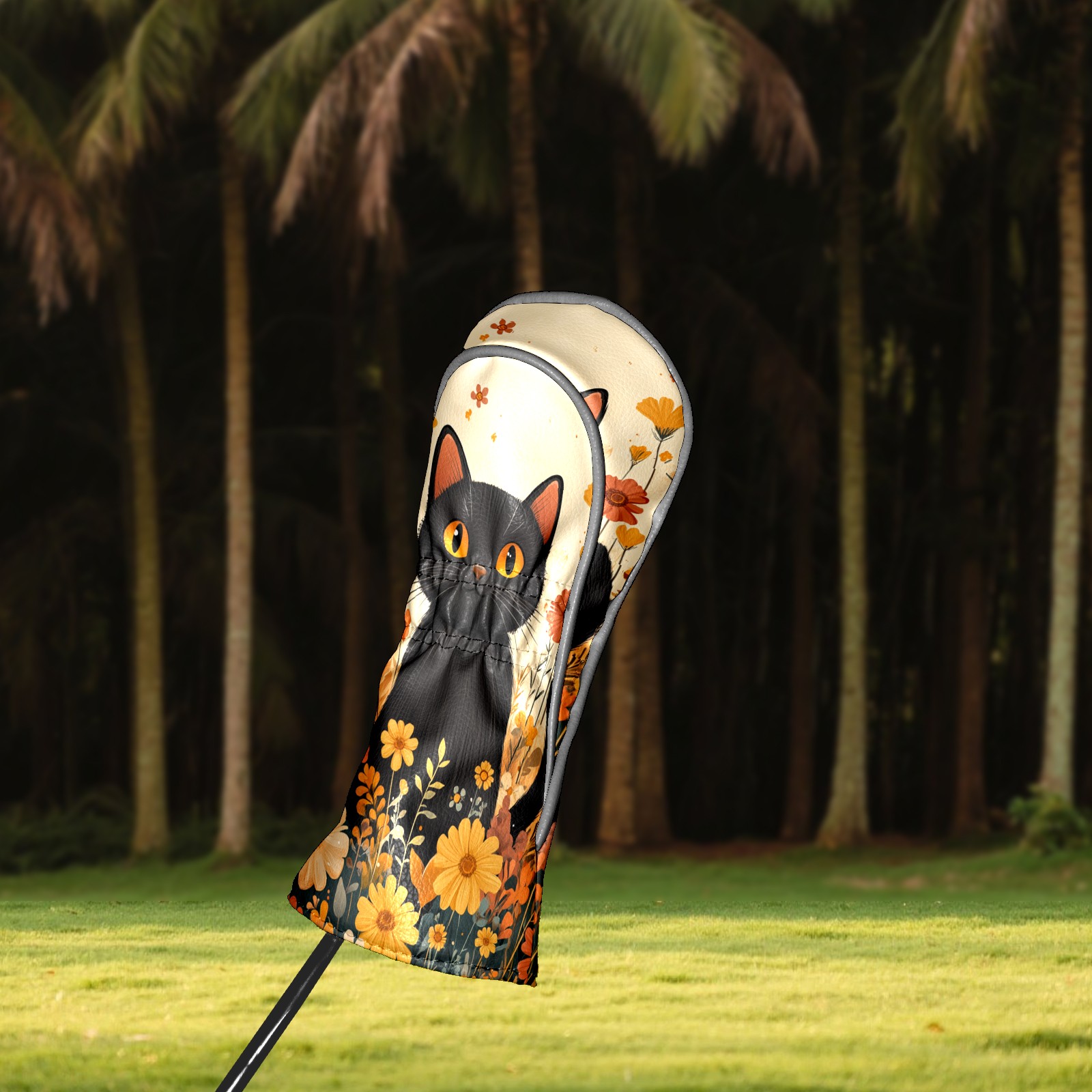 Golf Club Covers PU Leather Waterproof,Golf Club Head Covers for Fairway Woods and Hybrids Flowers Cat Unisex Suitable for Most Brands