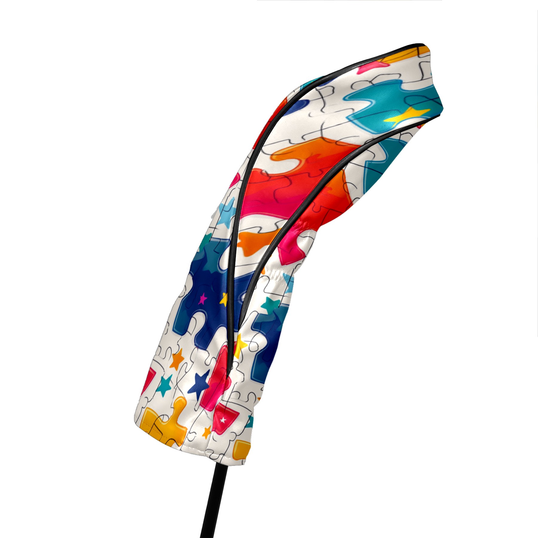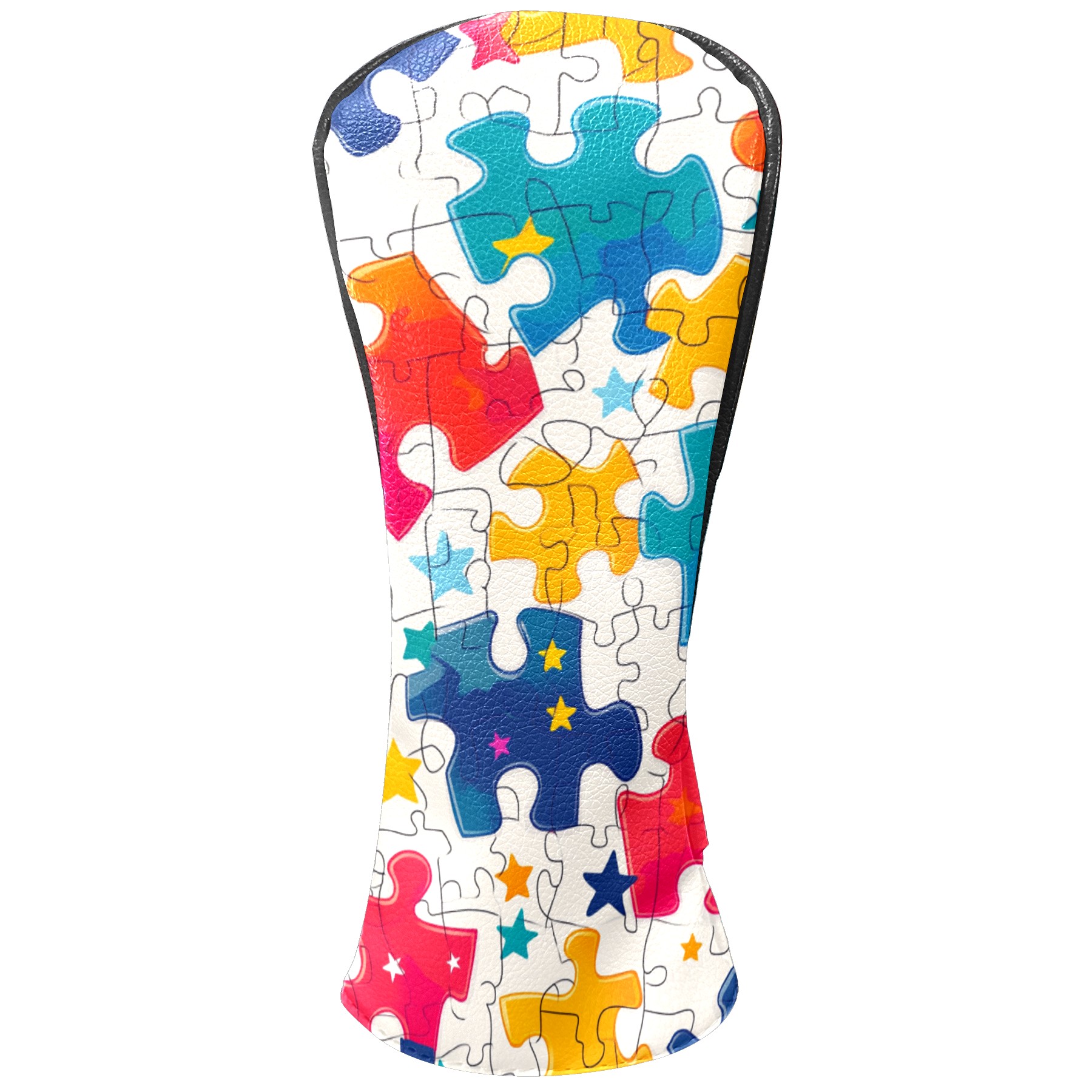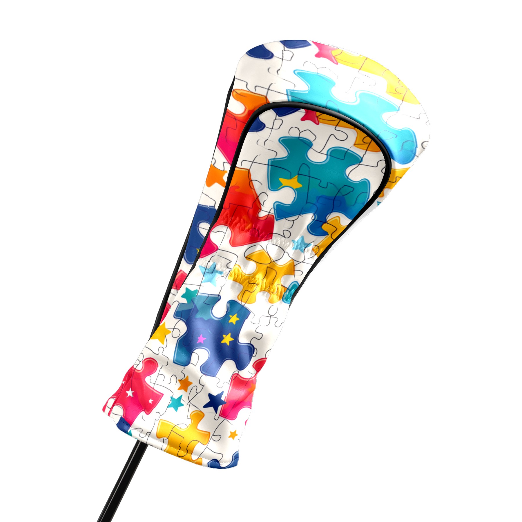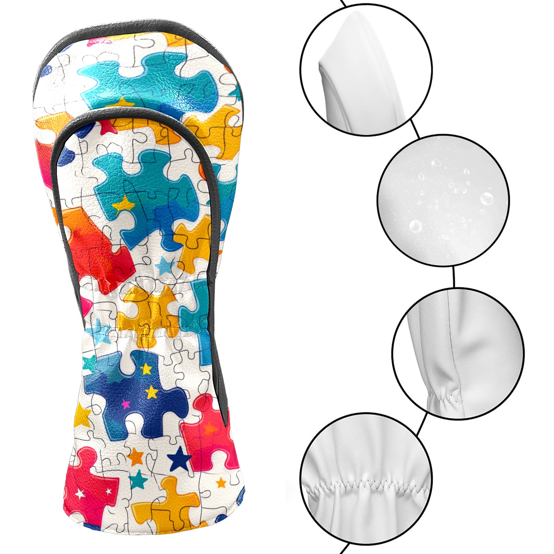 Golf Club Covers PU Leather Waterproof,Golf Club Head Covers for Fairway Woods and Hybrids Colorful Puzzle With Stars Unisex Suitable for Most Brands