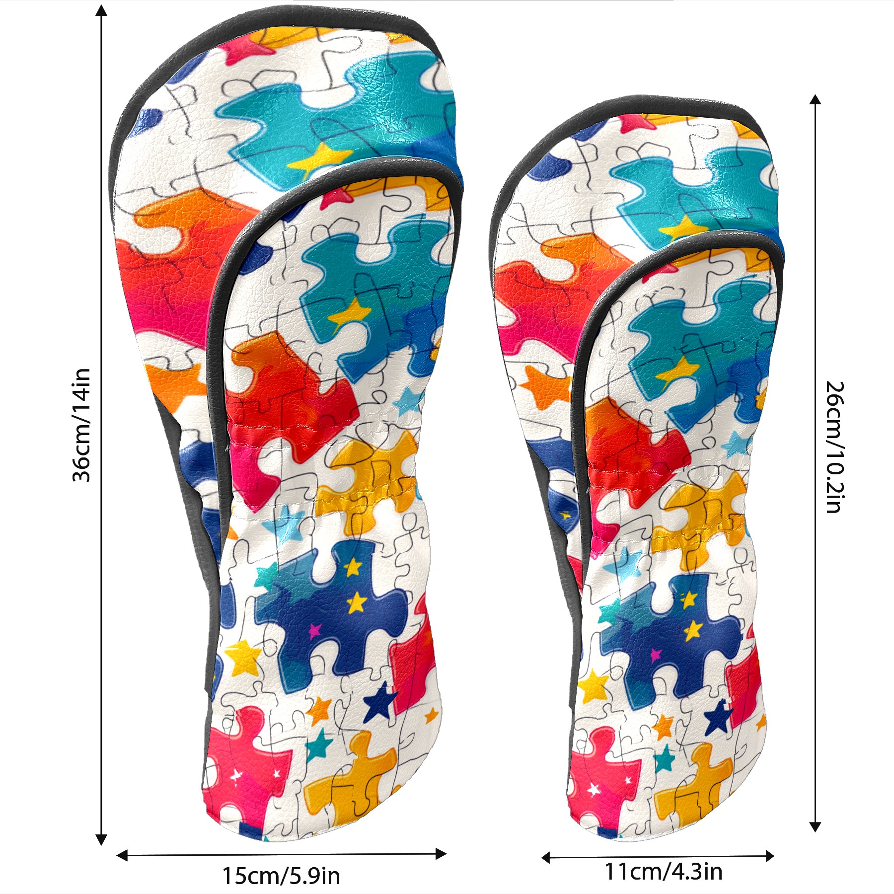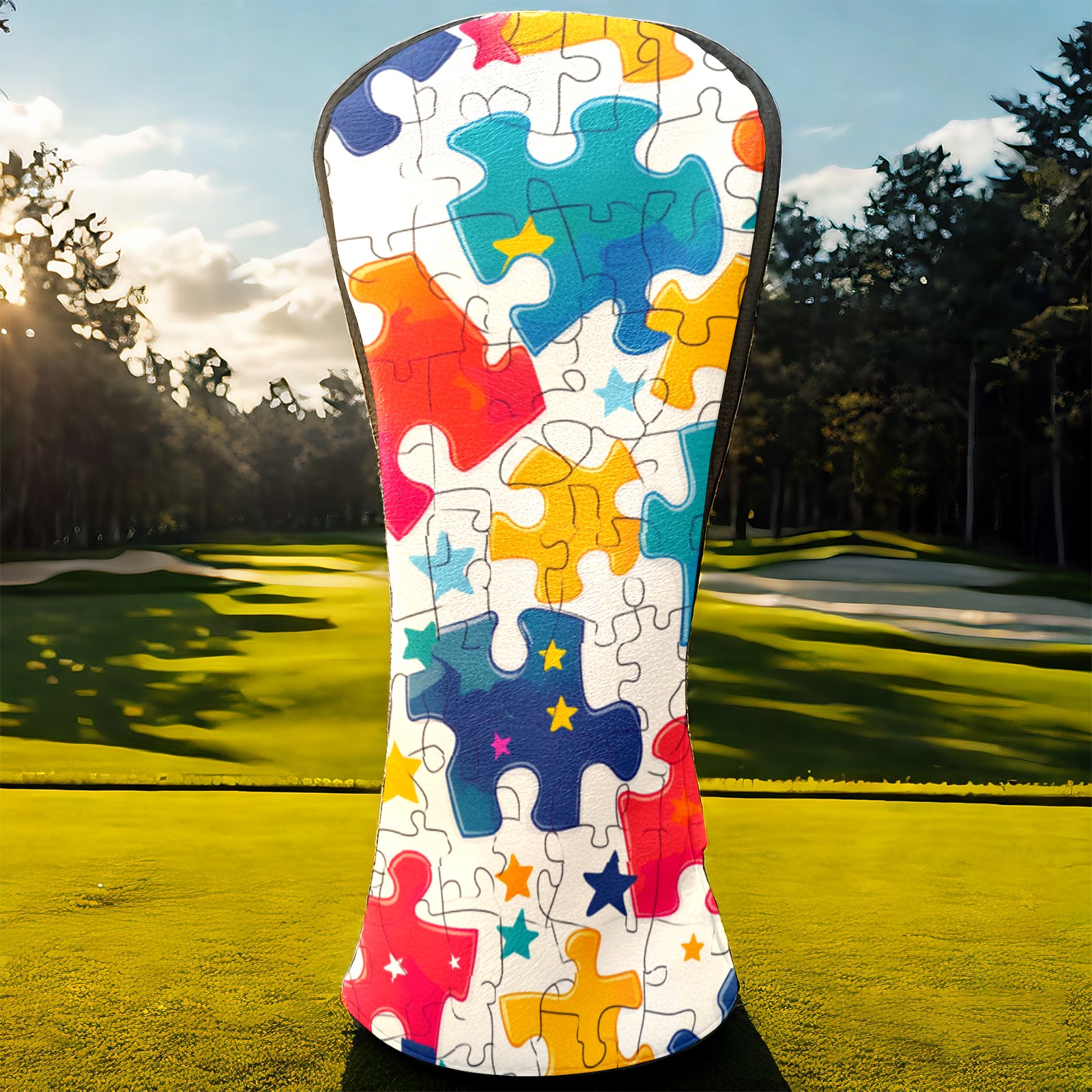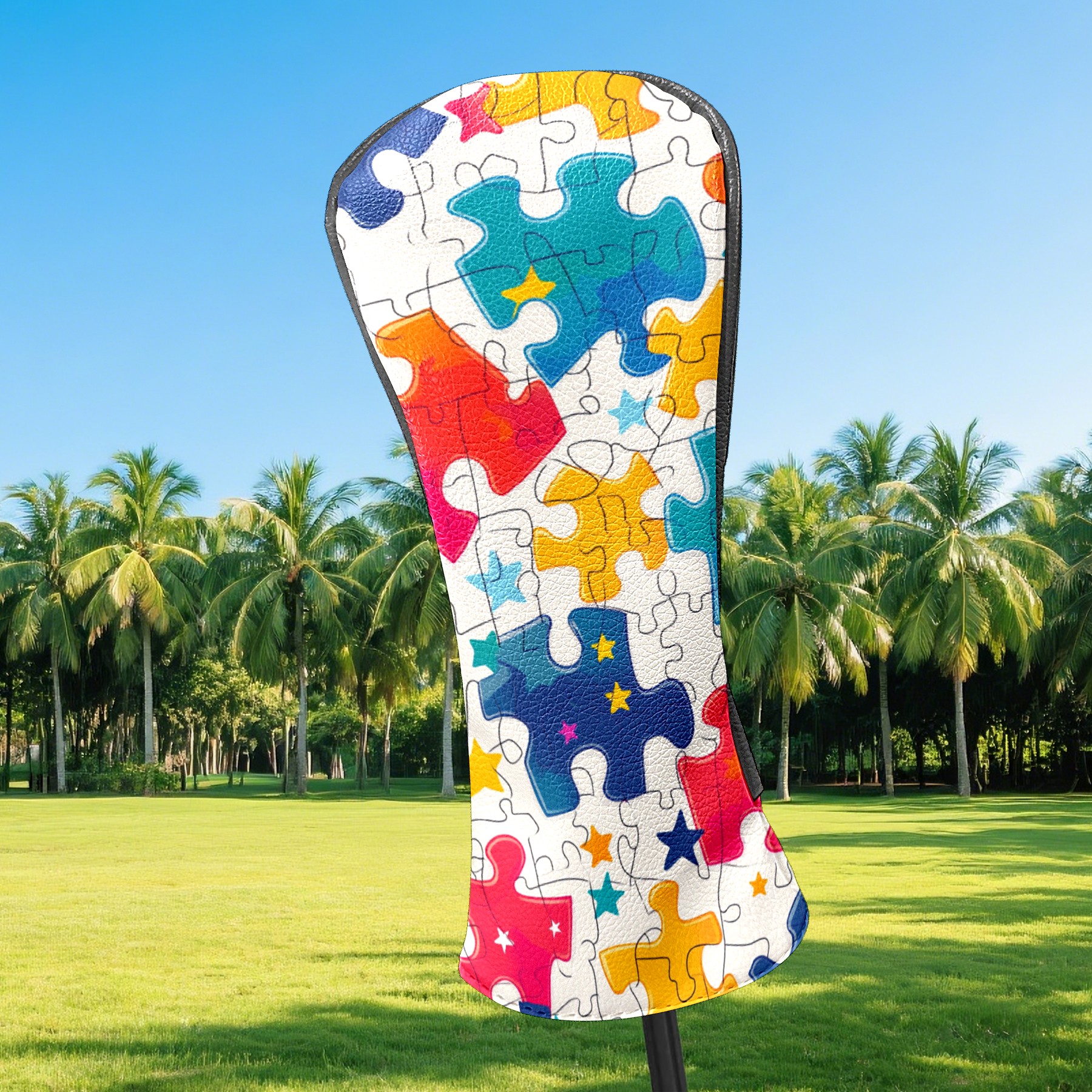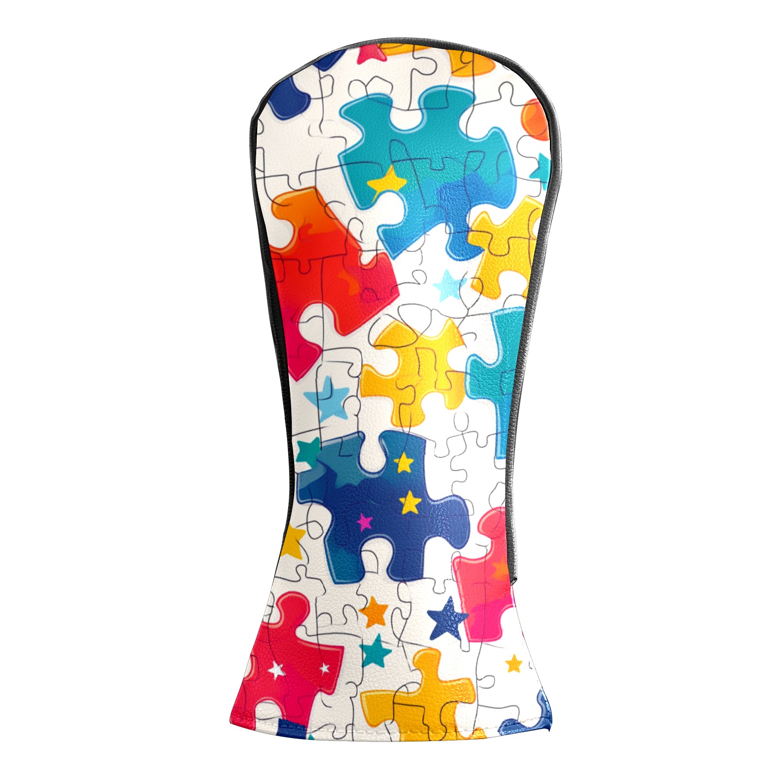 Golf Club Covers PU Leather Waterproof,Golf Club Head Covers for Fairway Woods and Hybrids Colorful Puzzle With Stars Unisex Suitable for Most Brands
