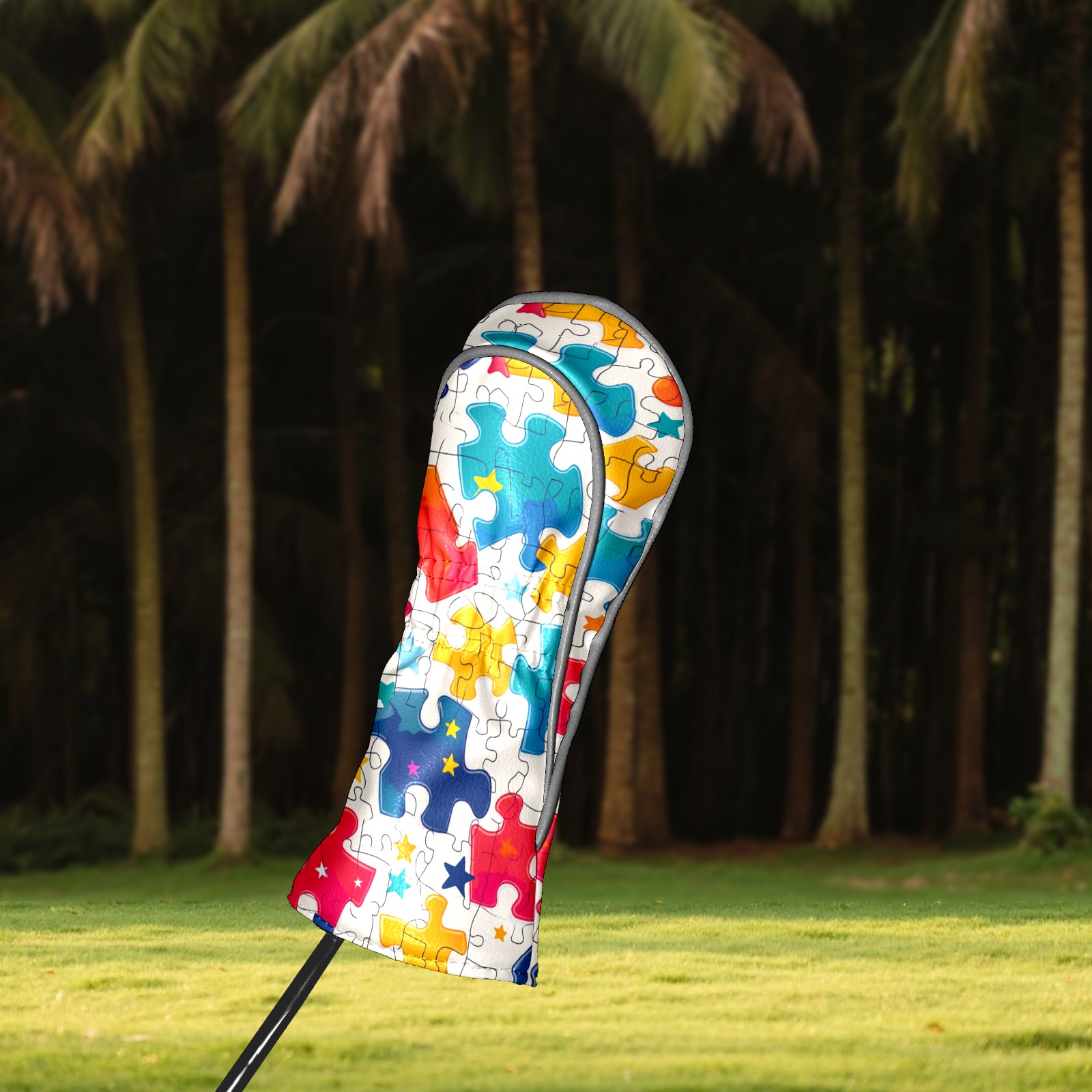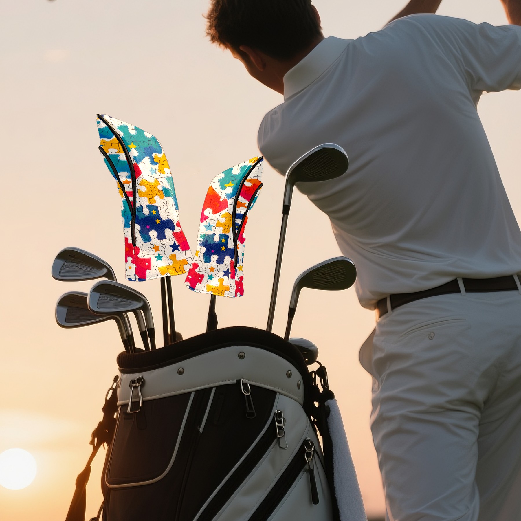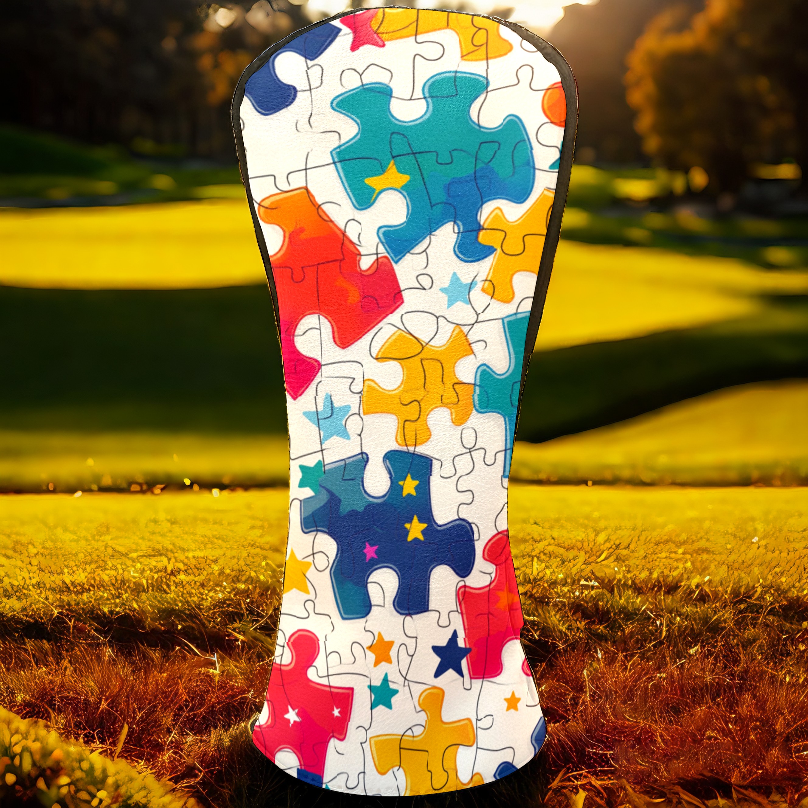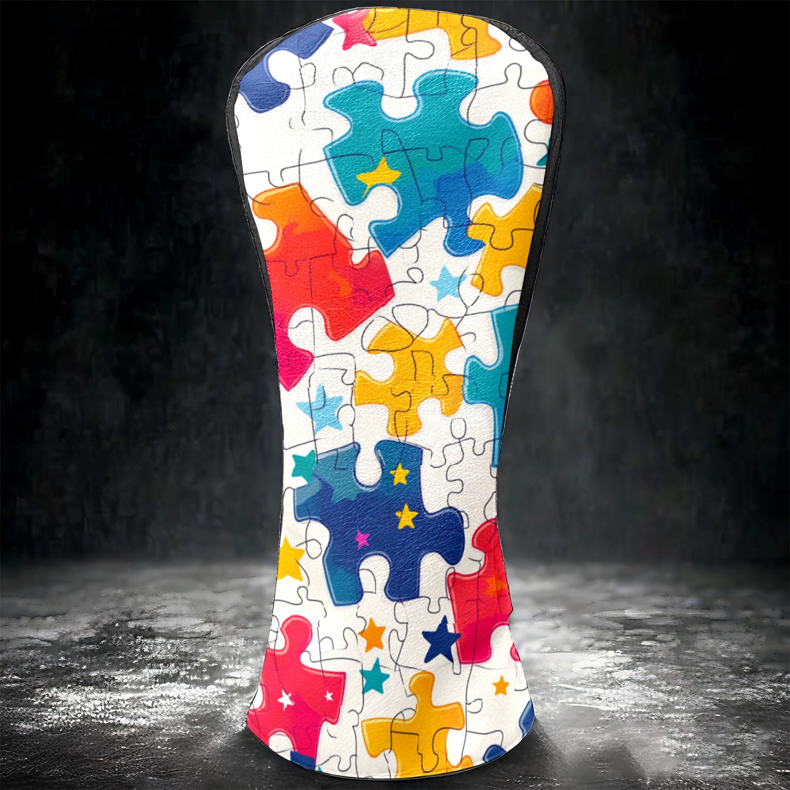 Golf Club Covers PU Leather Waterproof,Golf Club Head Covers for Fairway Woods and Hybrids Colorful Puzzle With Stars Unisex Suitable for Most Brands