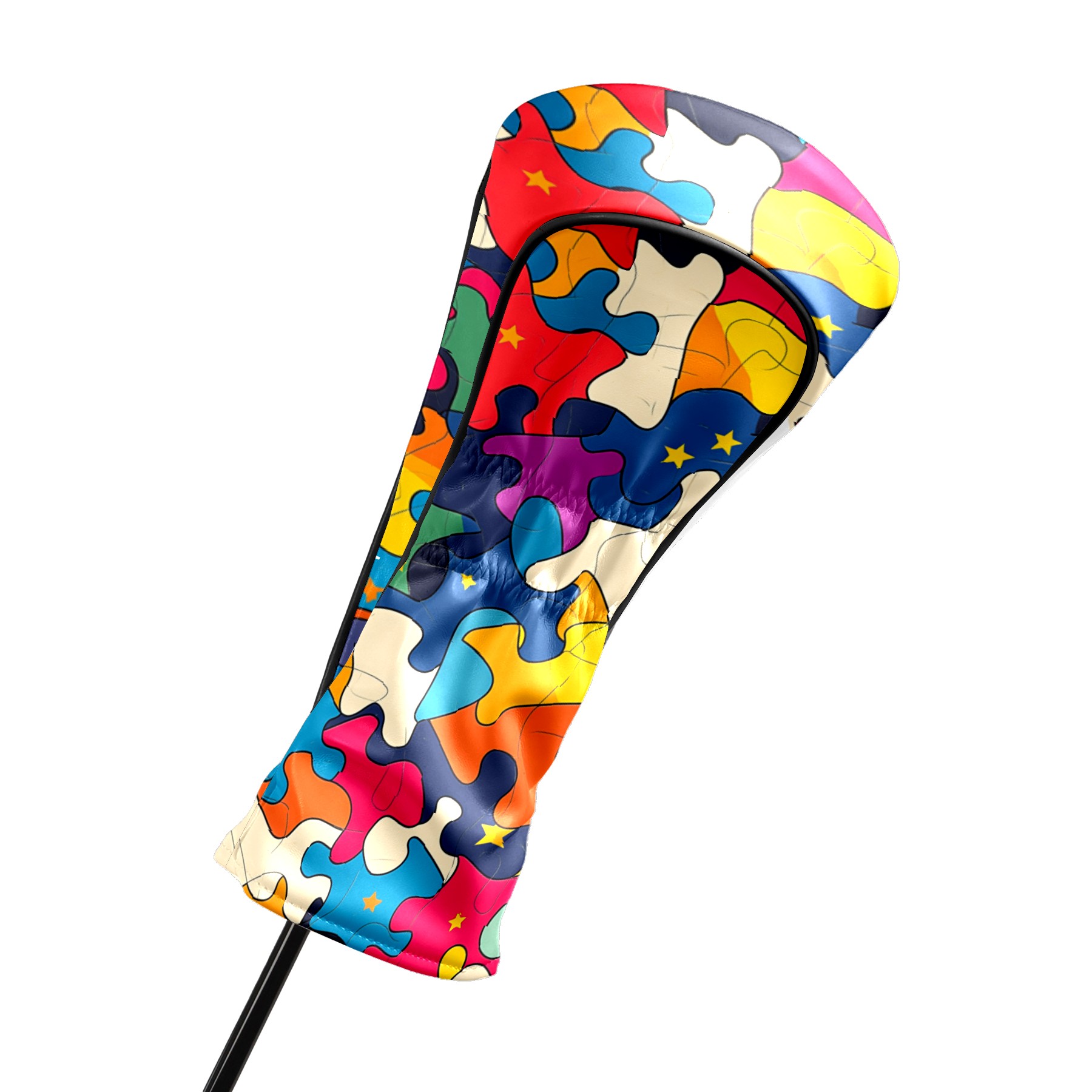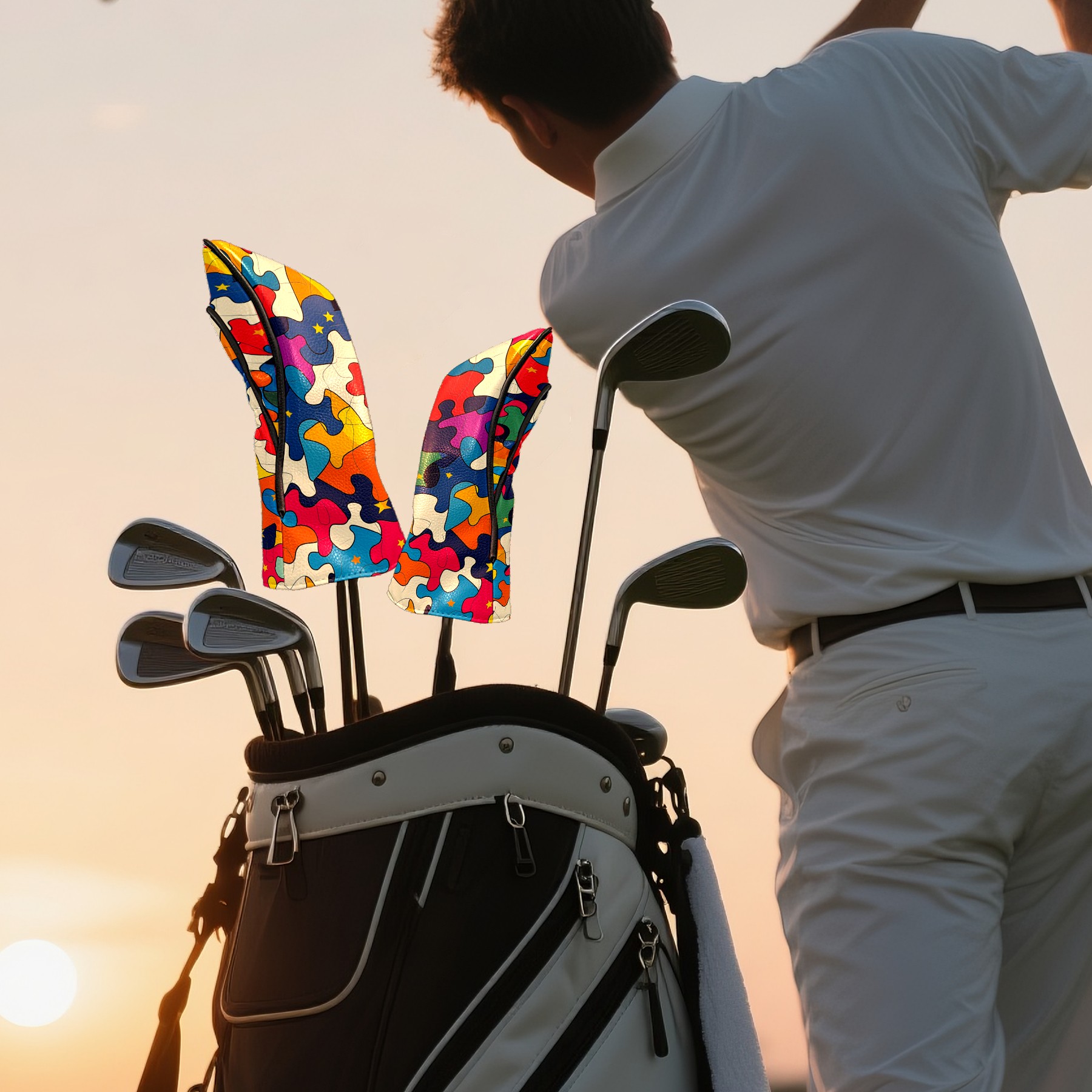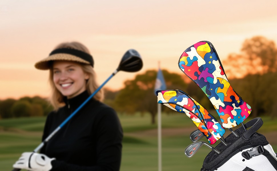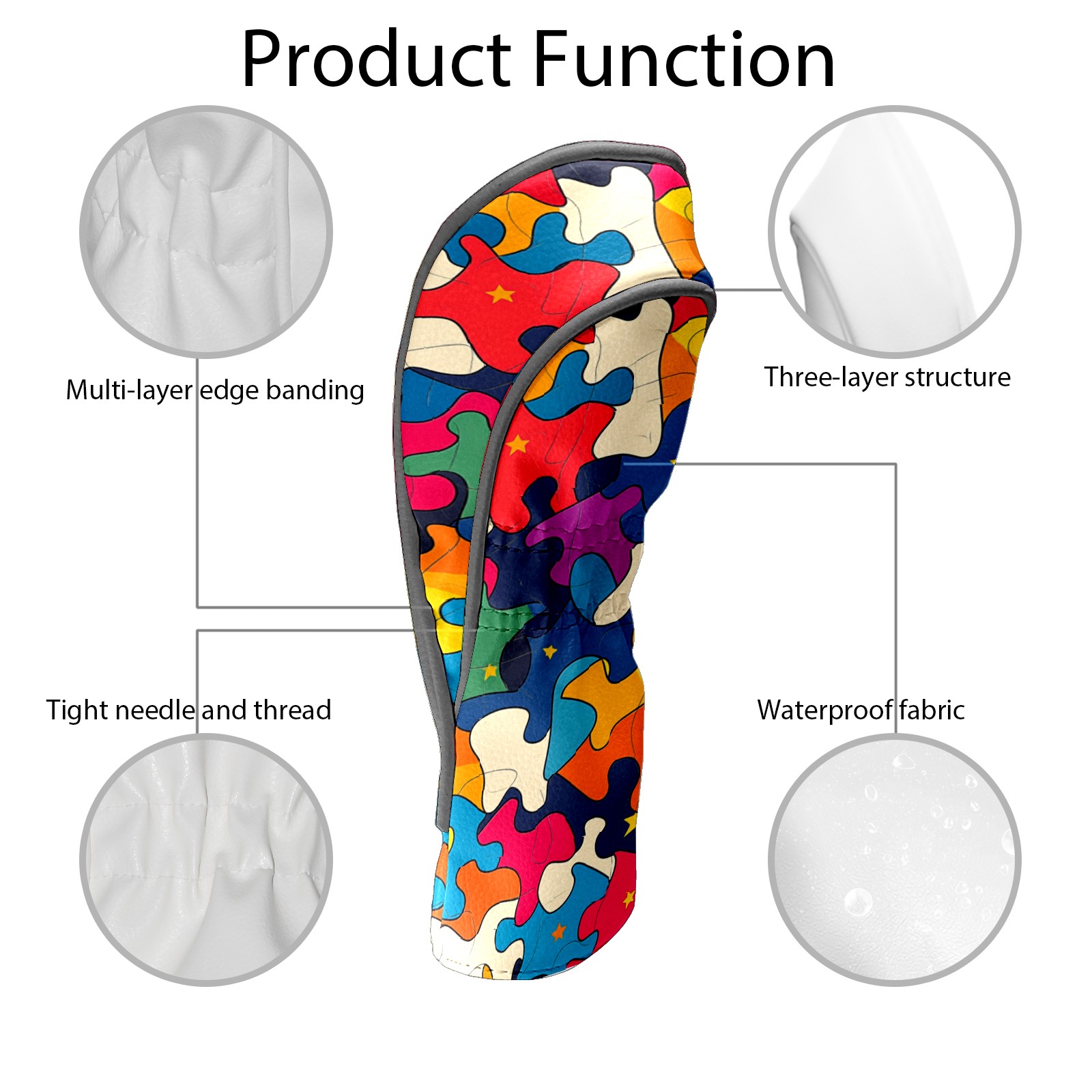 Golf Club Covers PU Leather Waterproof,Golf Club Head Covers for Fairway Woods and Hybrids Color Puzzle Unisex Suitable for Most Brands