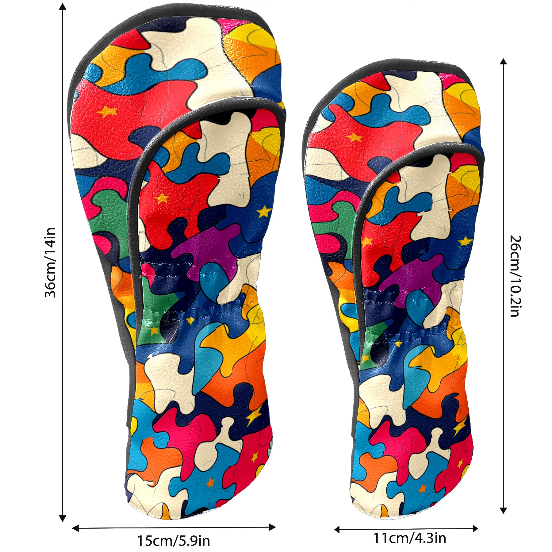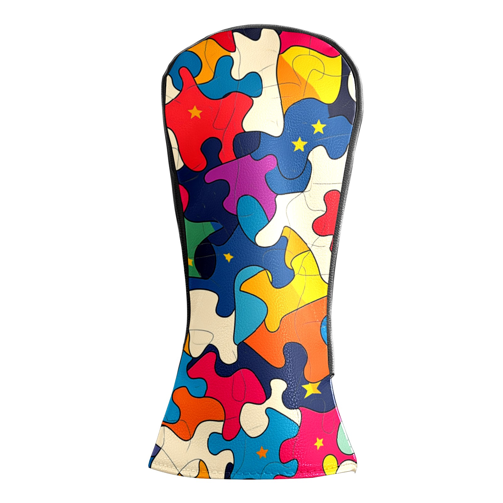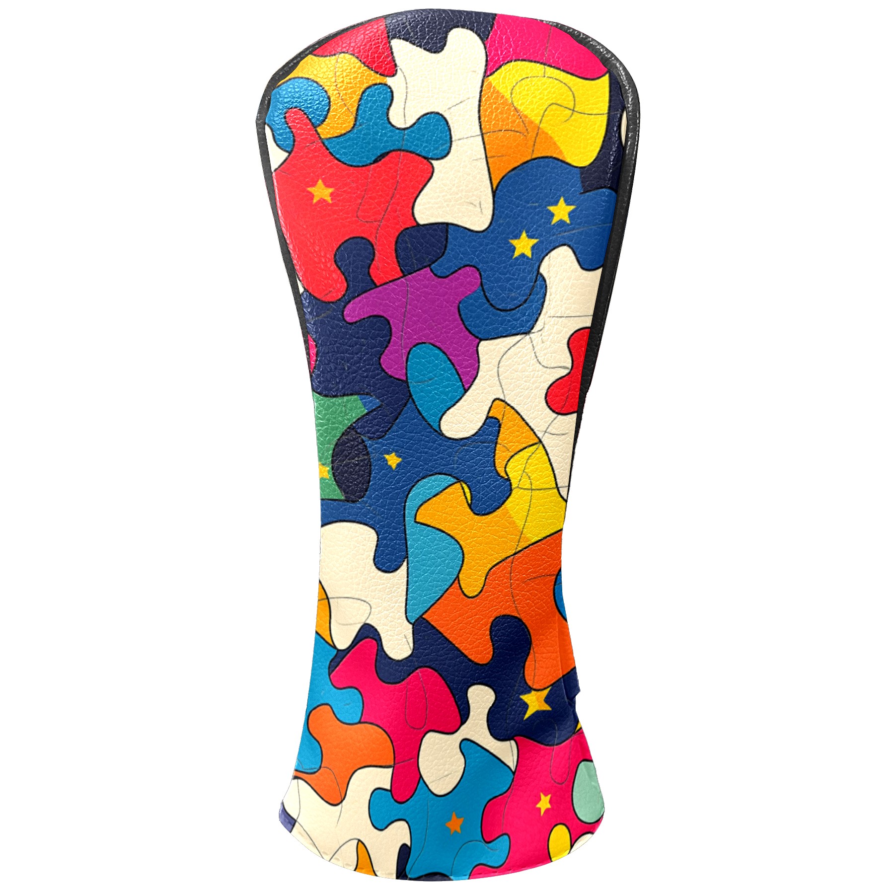 Golf Club Covers PU Leather Waterproof,Golf Club Head Covers for Fairway Woods and Hybrids Color Puzzle Unisex Suitable for Most Brands