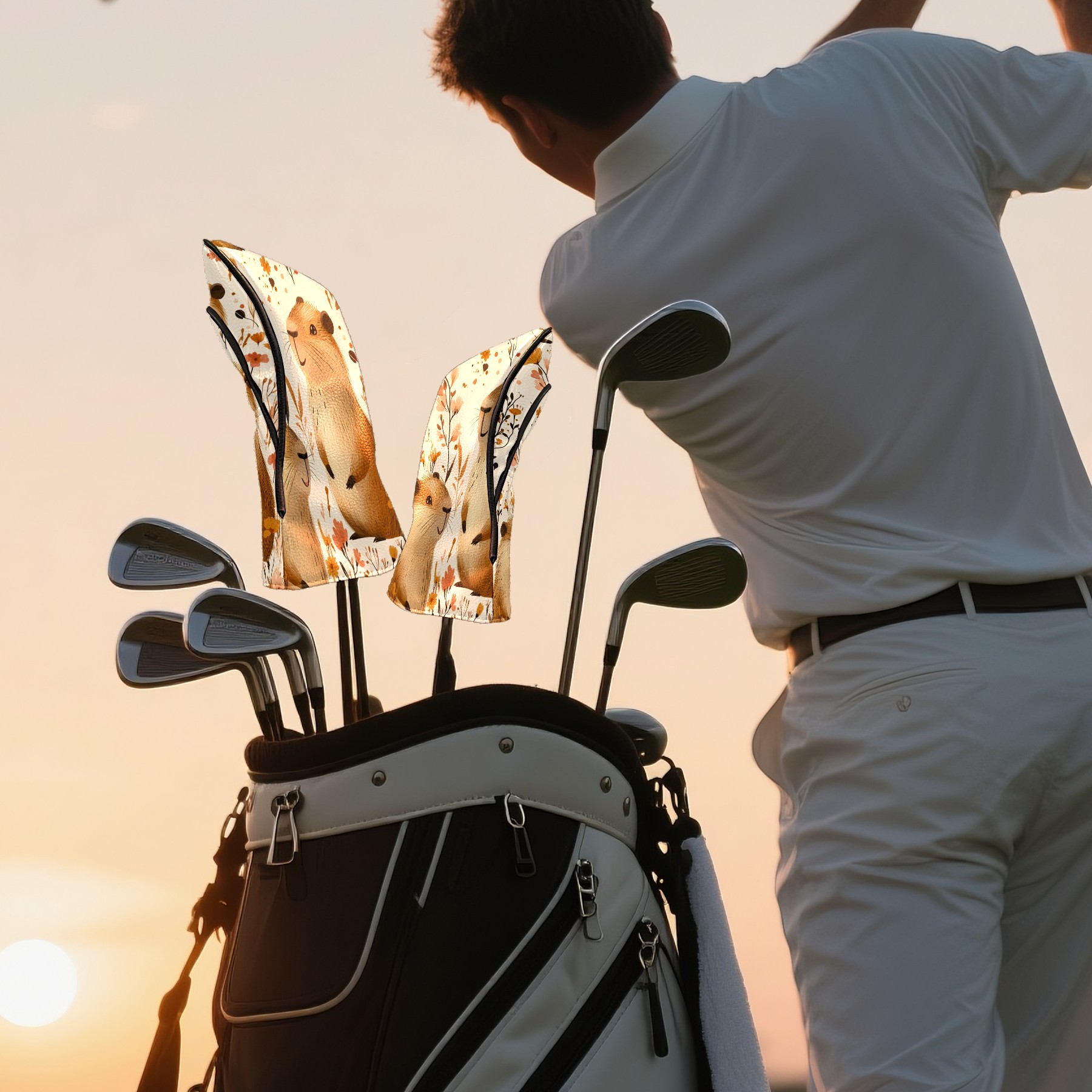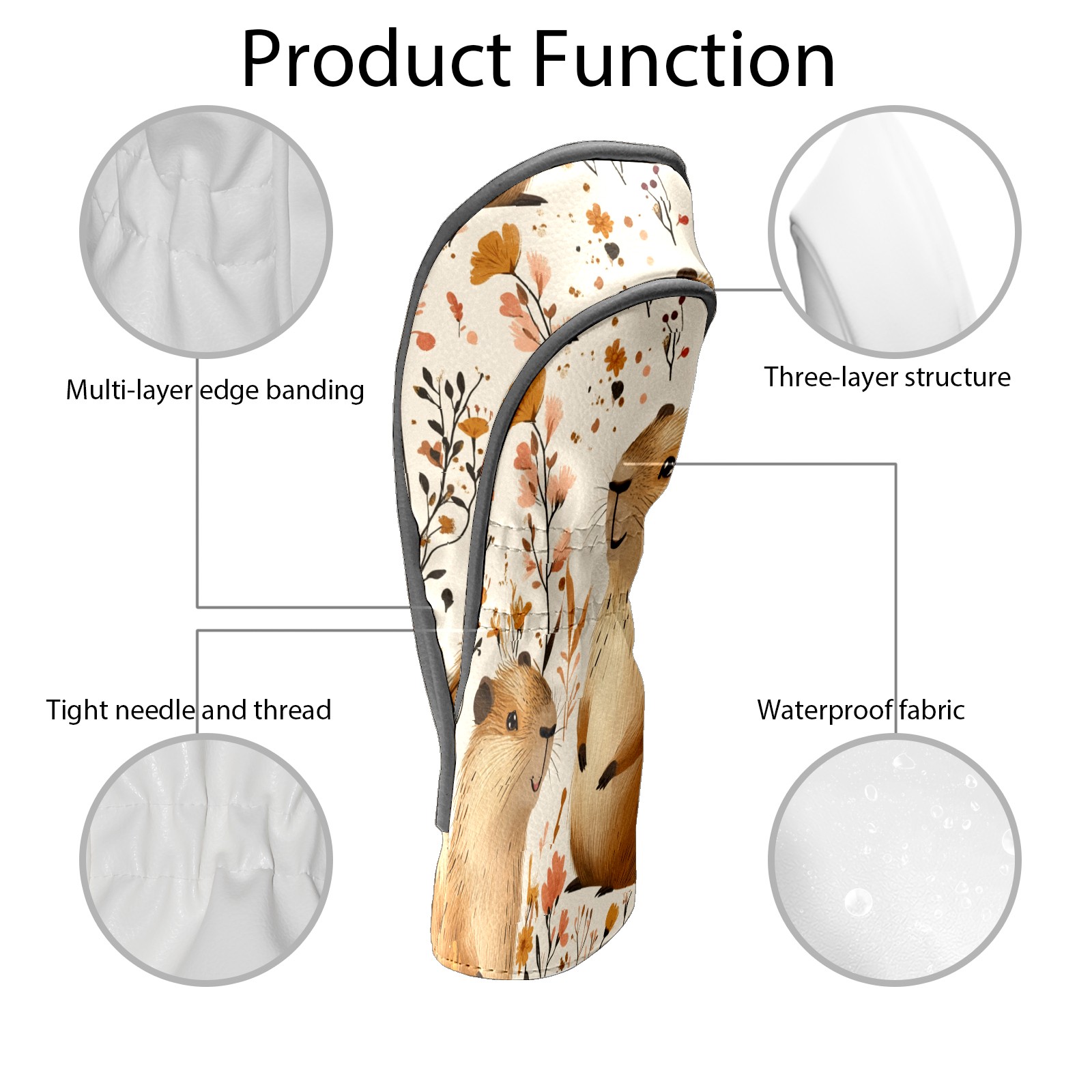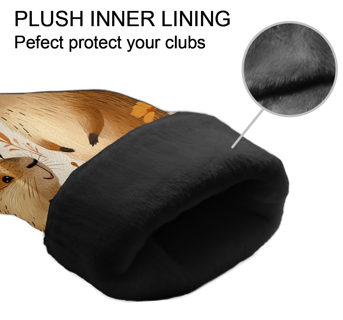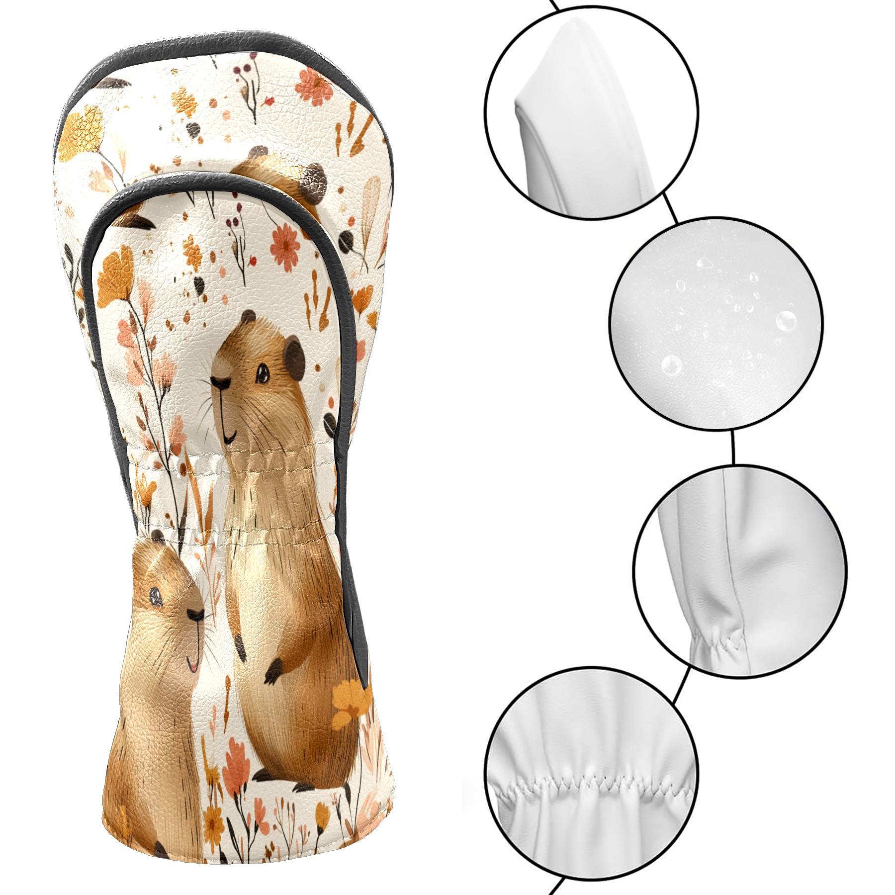 Golf Club Covers PU Leather Waterproof,Golf Club Head Covers for Fairway Woods and Hybrids Cute Capybara Unisex Suitable for Most Brands