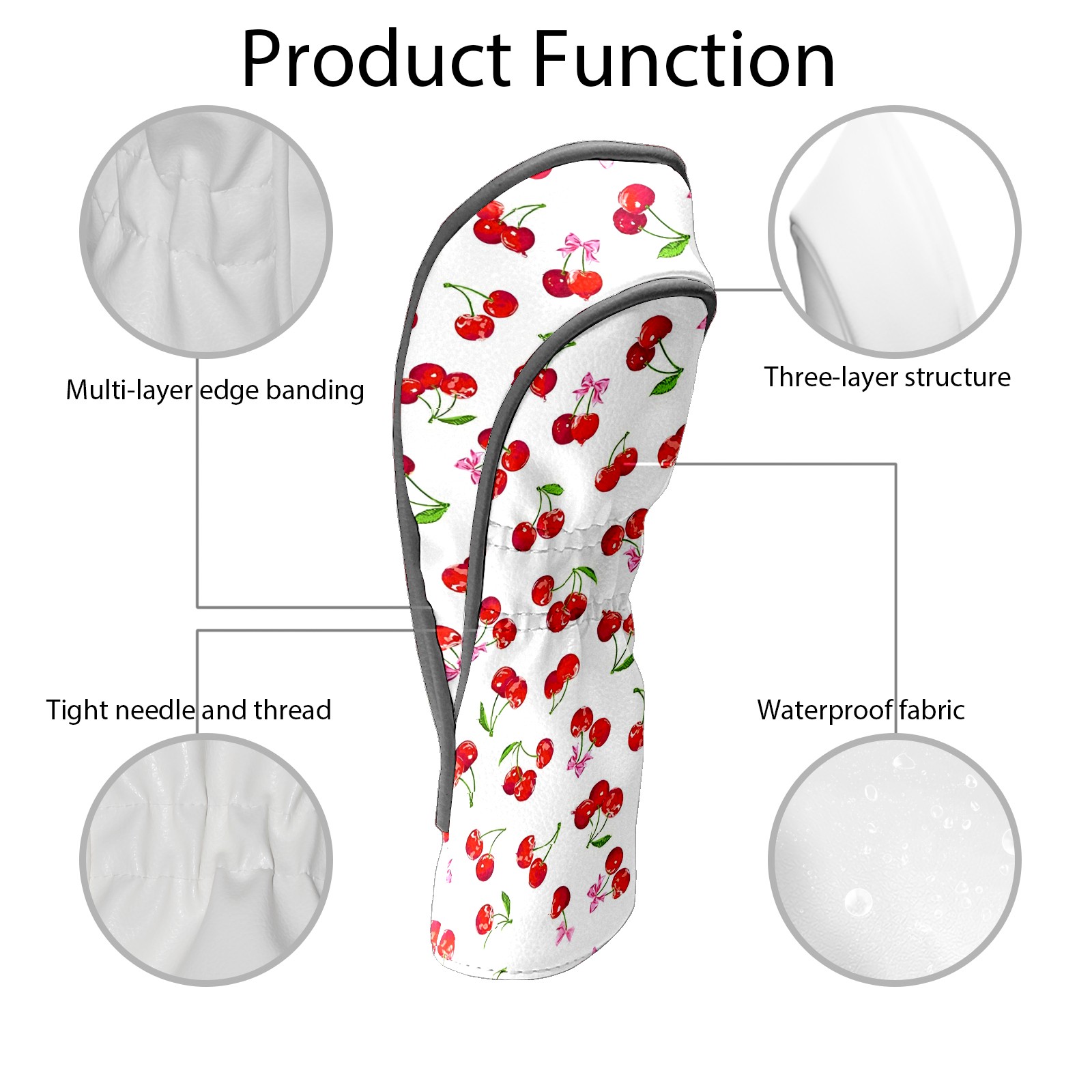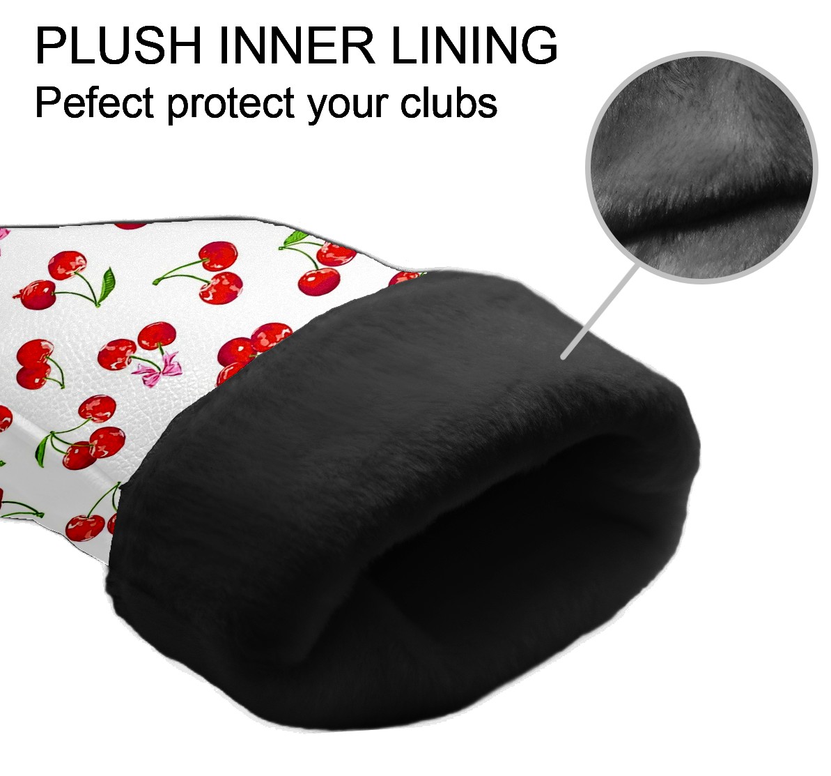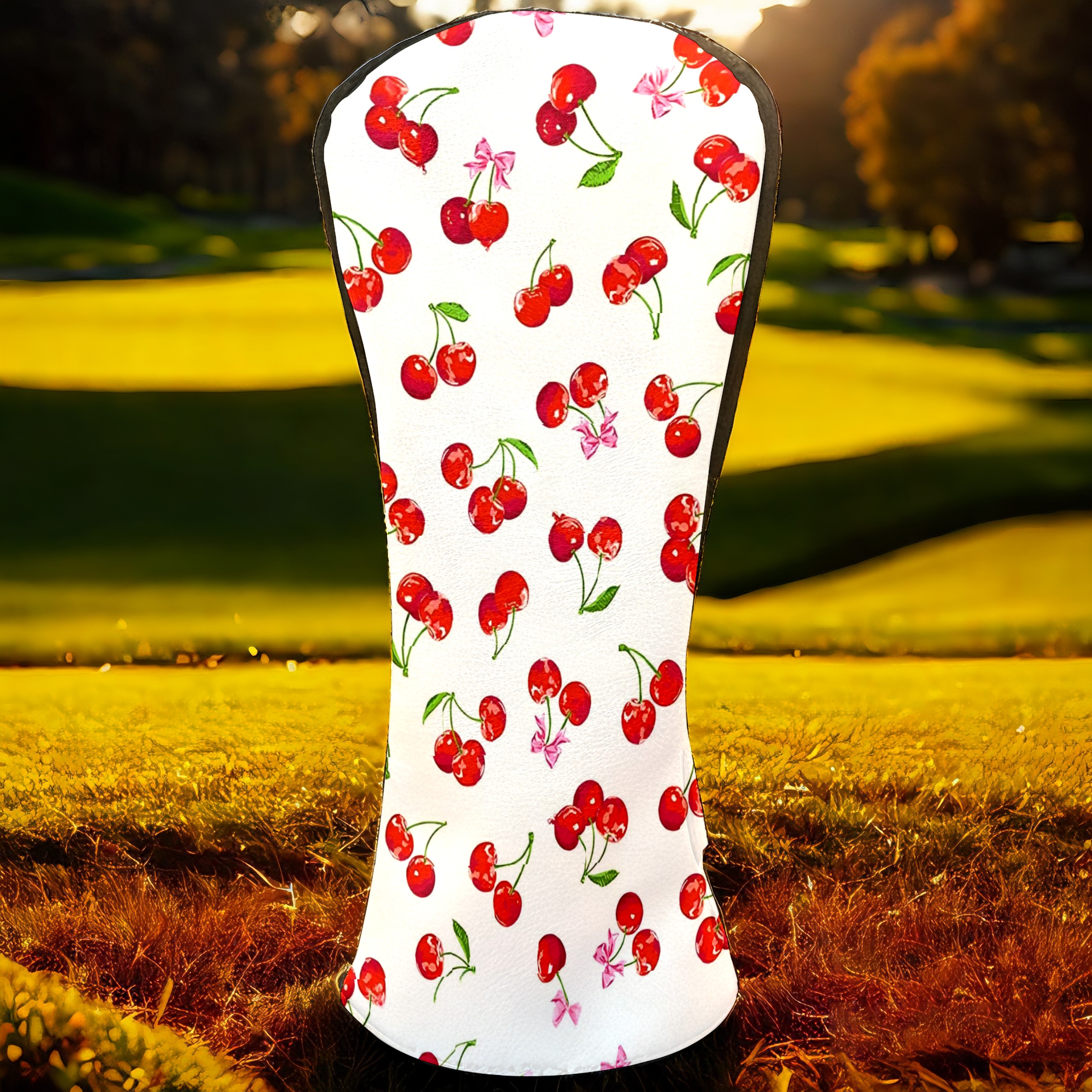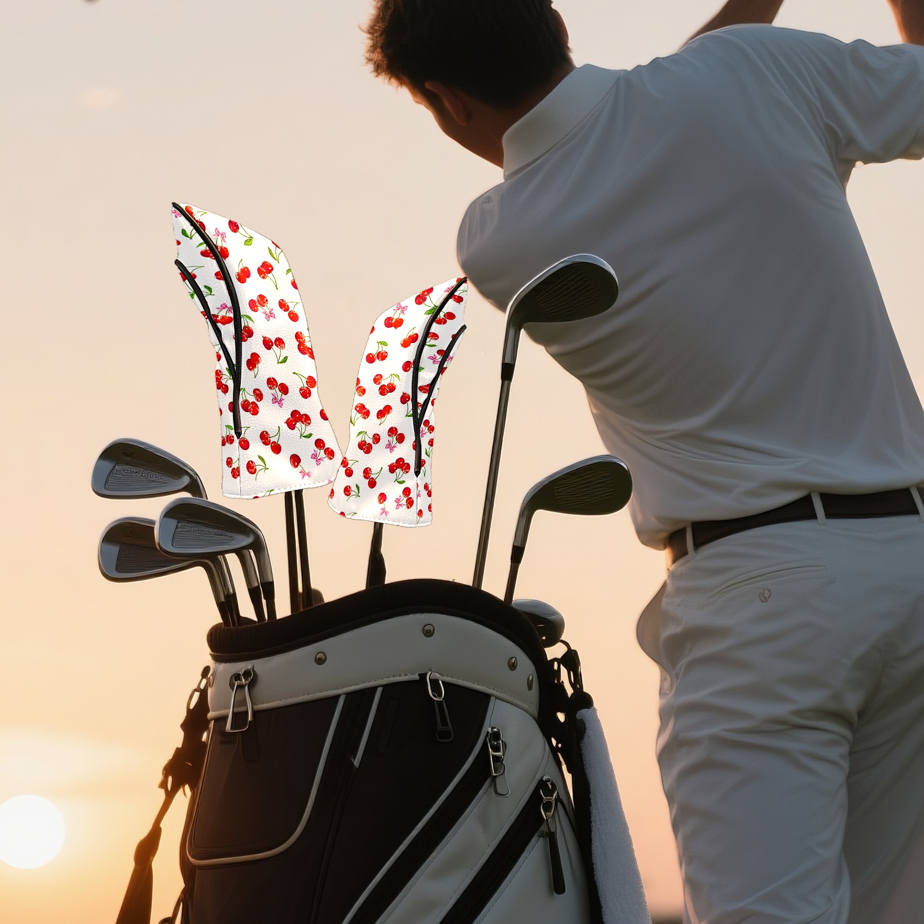 Golf Club Covers, Cherry White Premium PU Leather Driver Hybrid Putter Head Covers with Velvet Lining, Waterproof Golf Gifts for Men Women