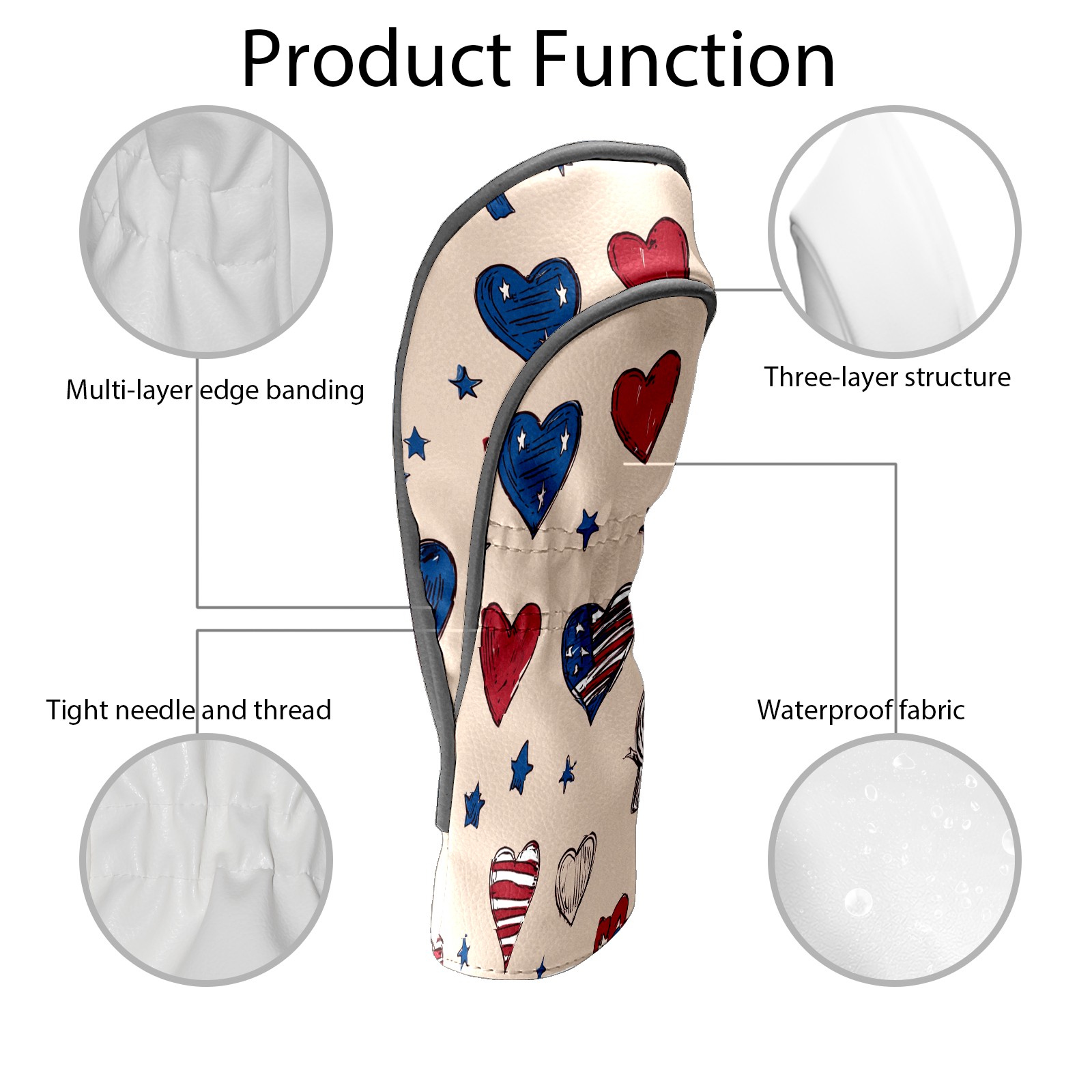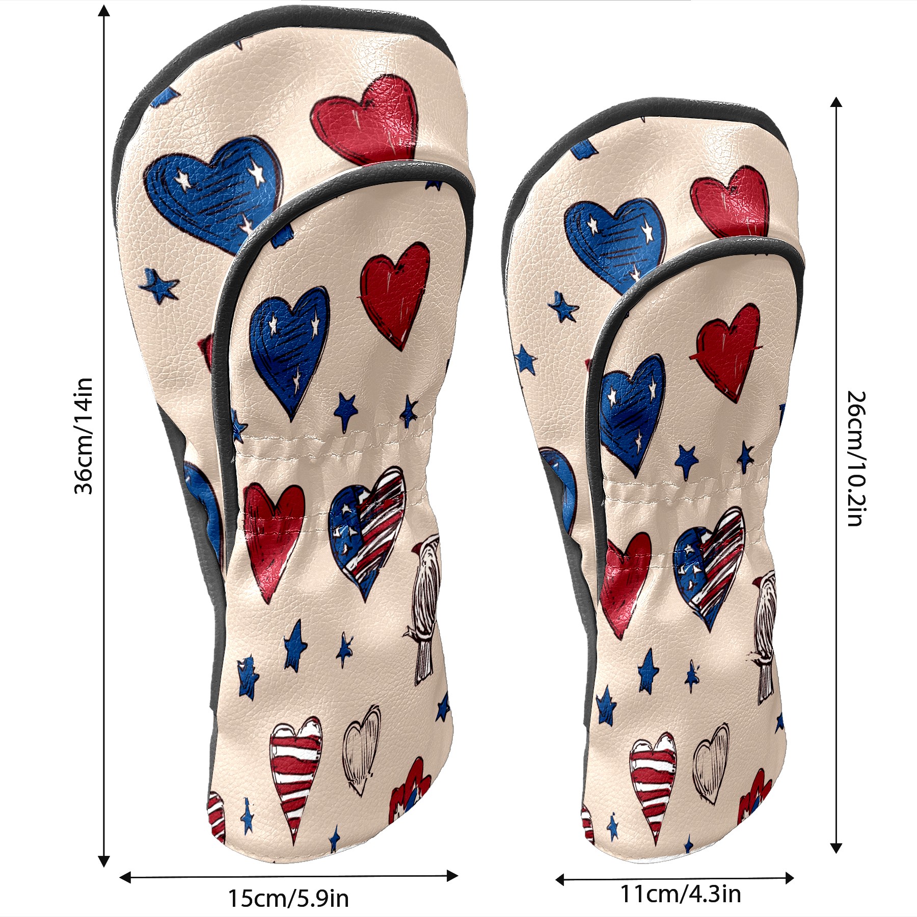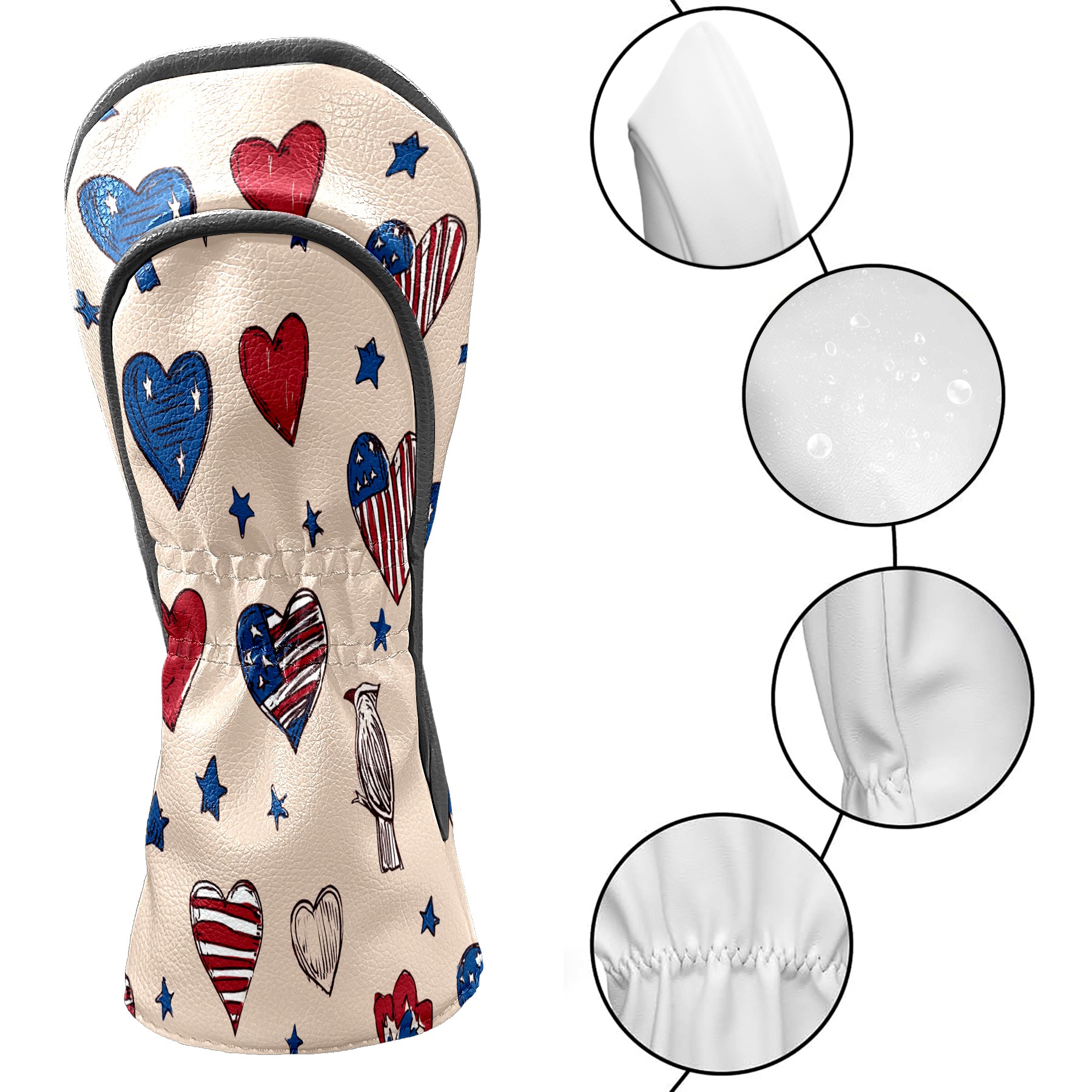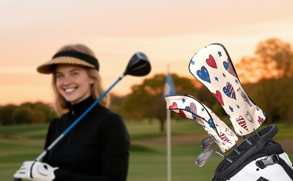 Golf Club Covers, RedBlue HeartStar Premium PU Leather Driver Hybrid Putter Head Covers with Velvet Lining, Waterproof Golf Gifts for Men Women