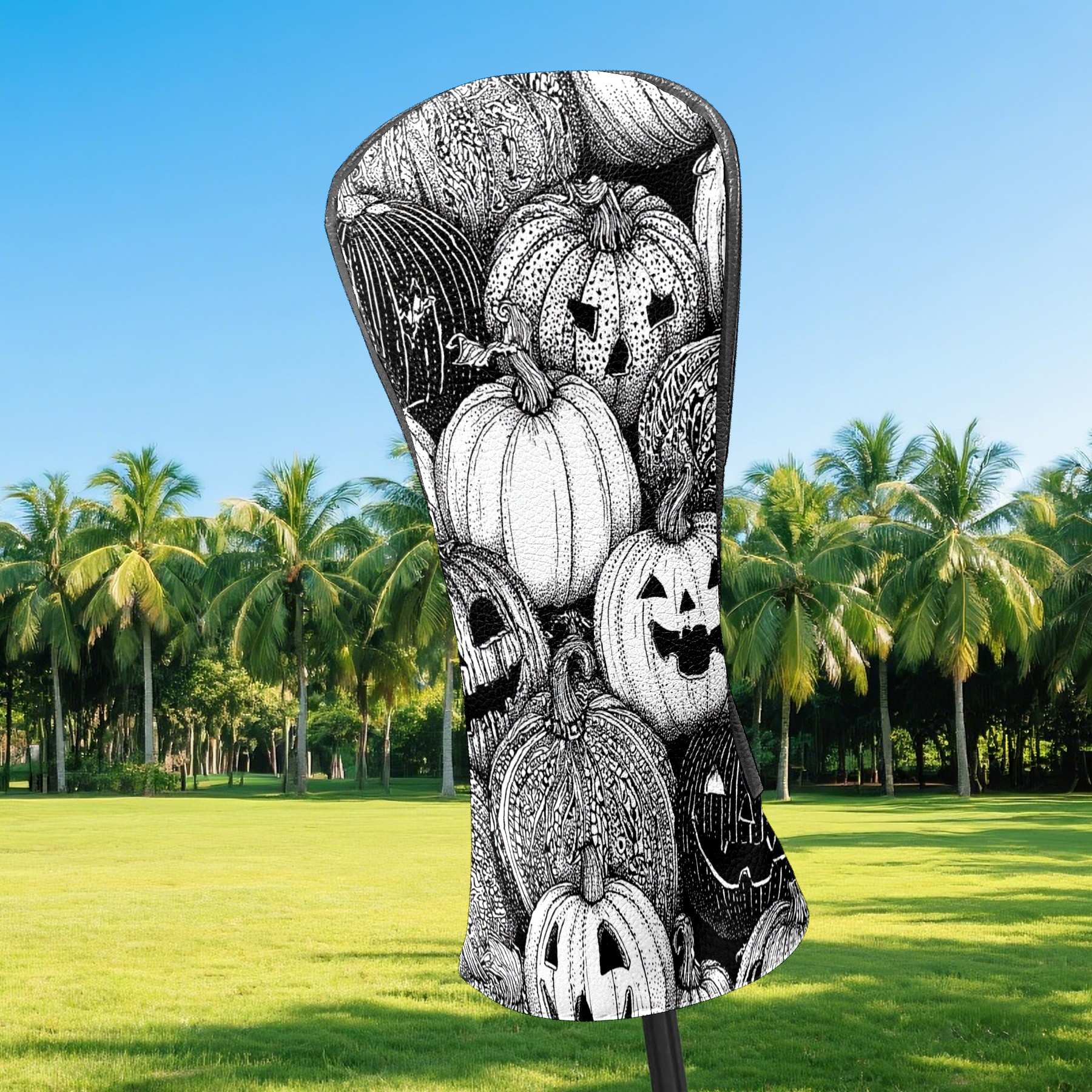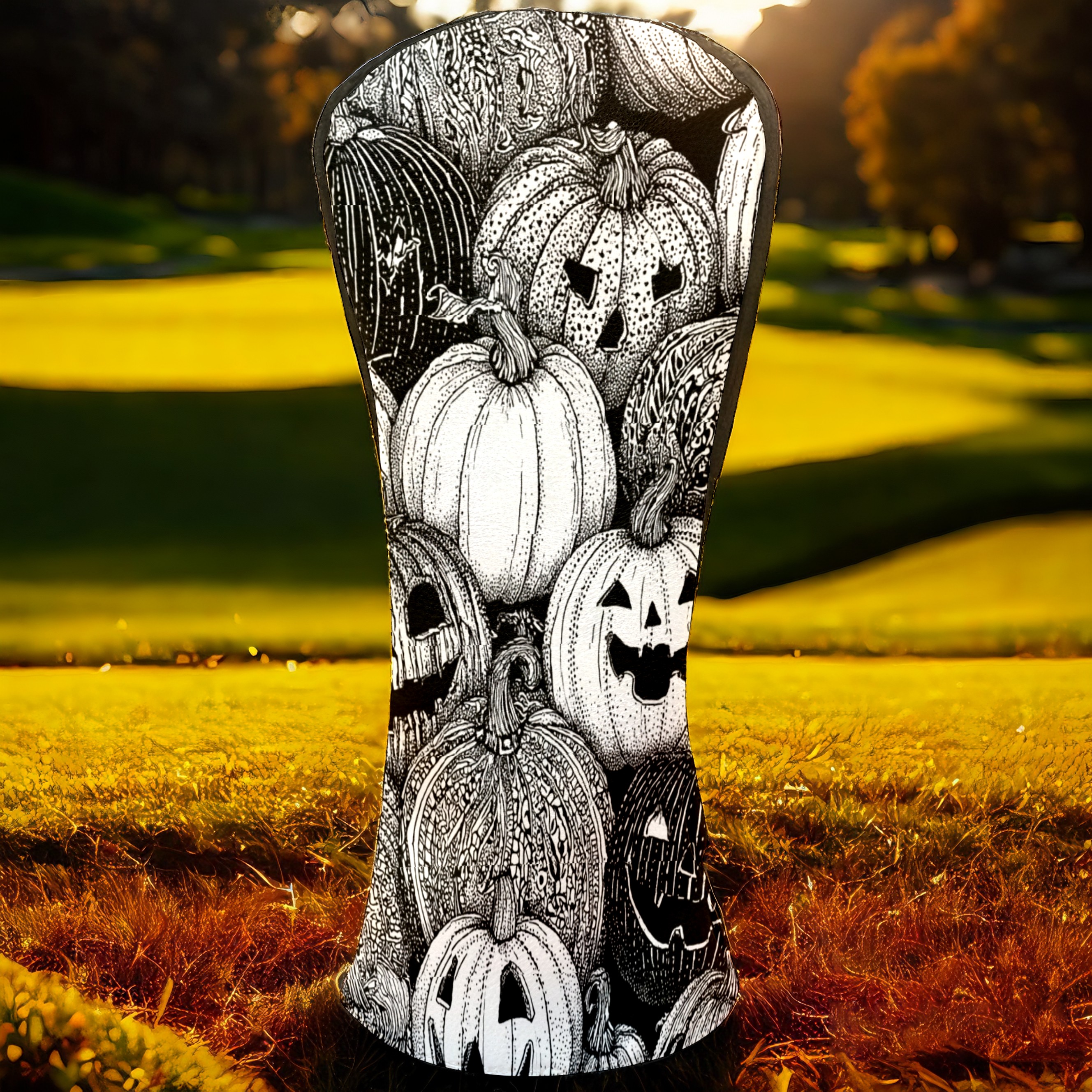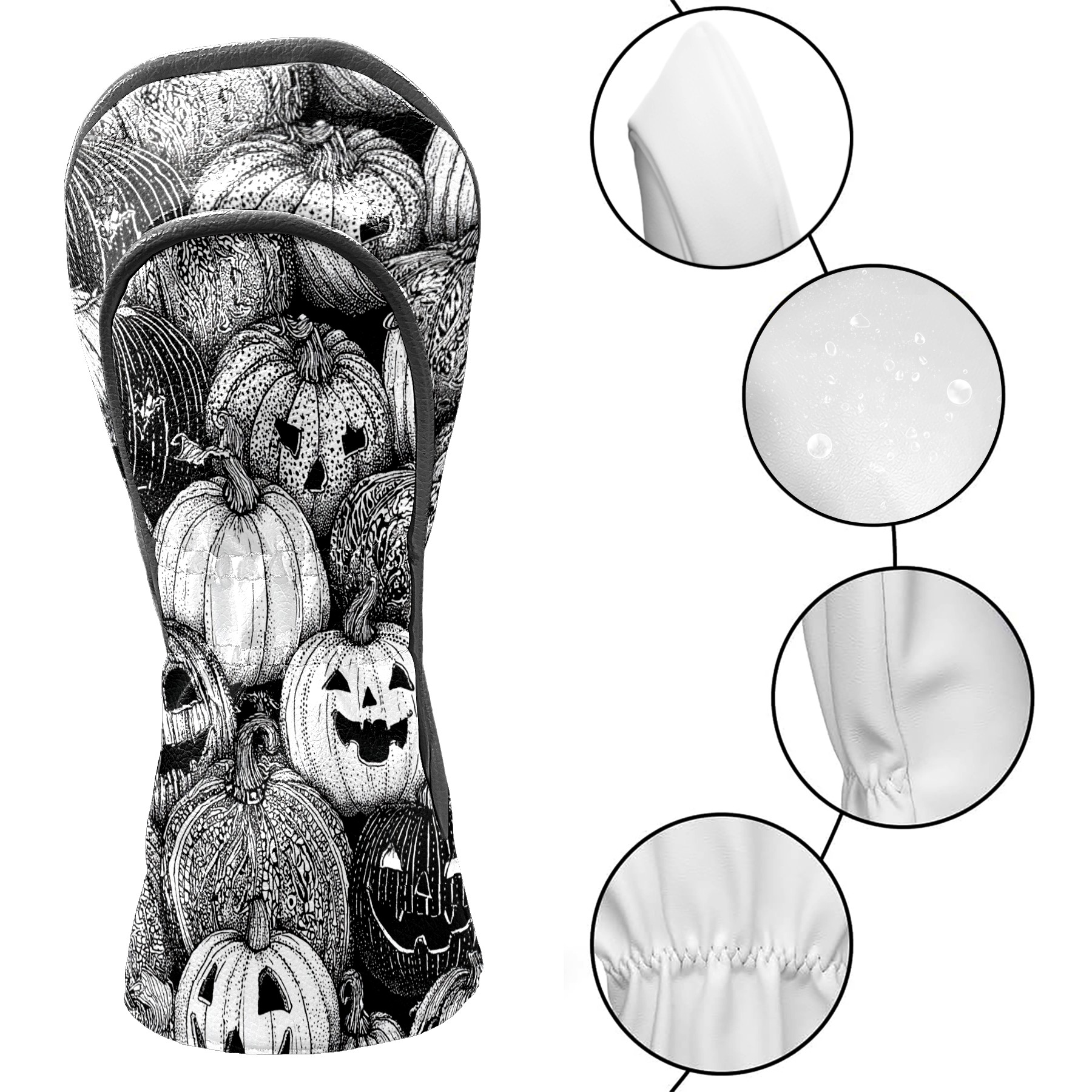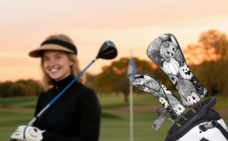 Golf Club Covers, BlackWhite Pumpkin Premium PU Leather Driver Hybrid Putter Head Covers with Velvet Lining, Waterproof Golf Gifts for Men Women
