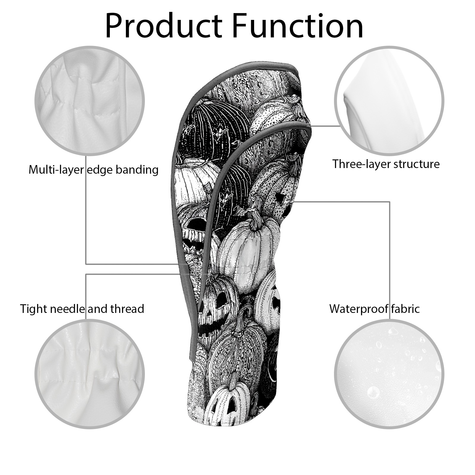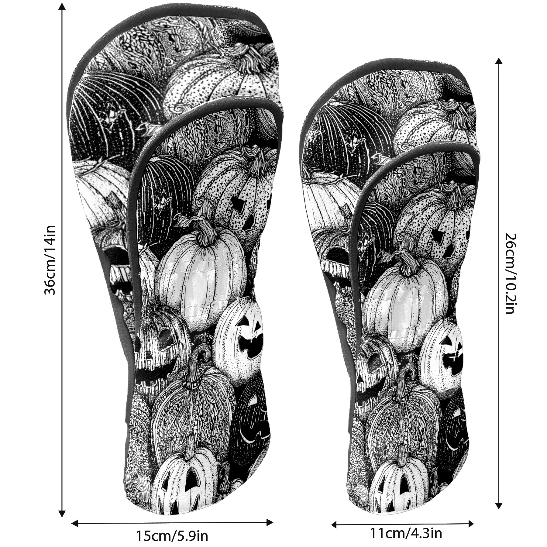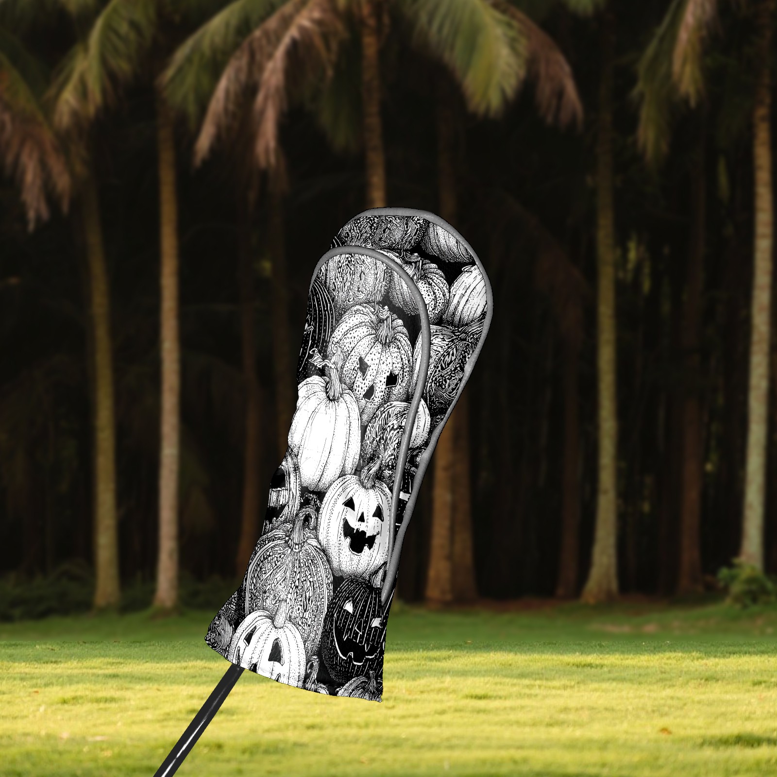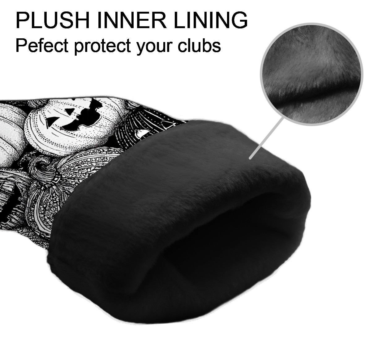 Golf Club Covers, BlackWhite Pumpkin Premium PU Leather Driver Hybrid Putter Head Covers with Velvet Lining, Waterproof Golf Gifts for Men Women