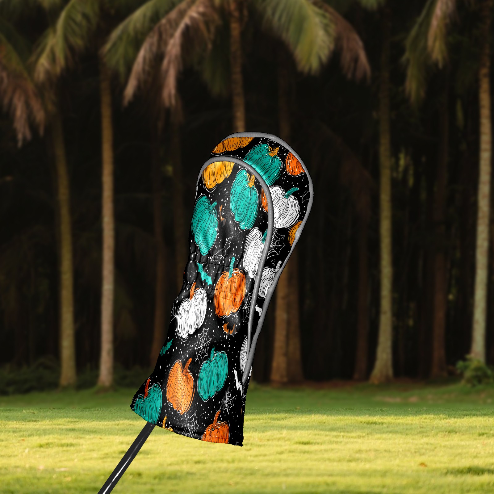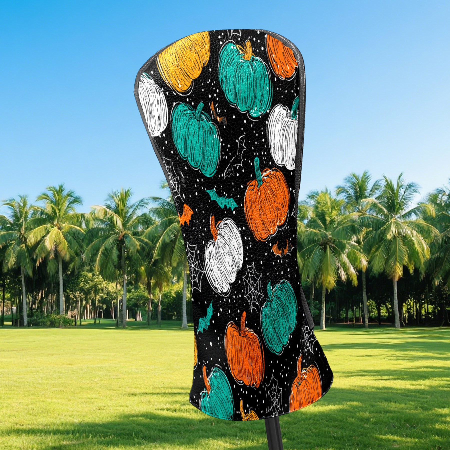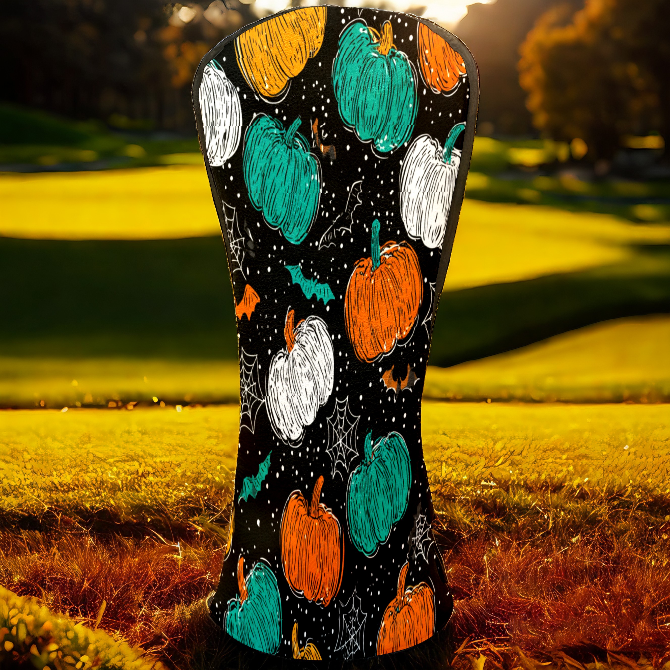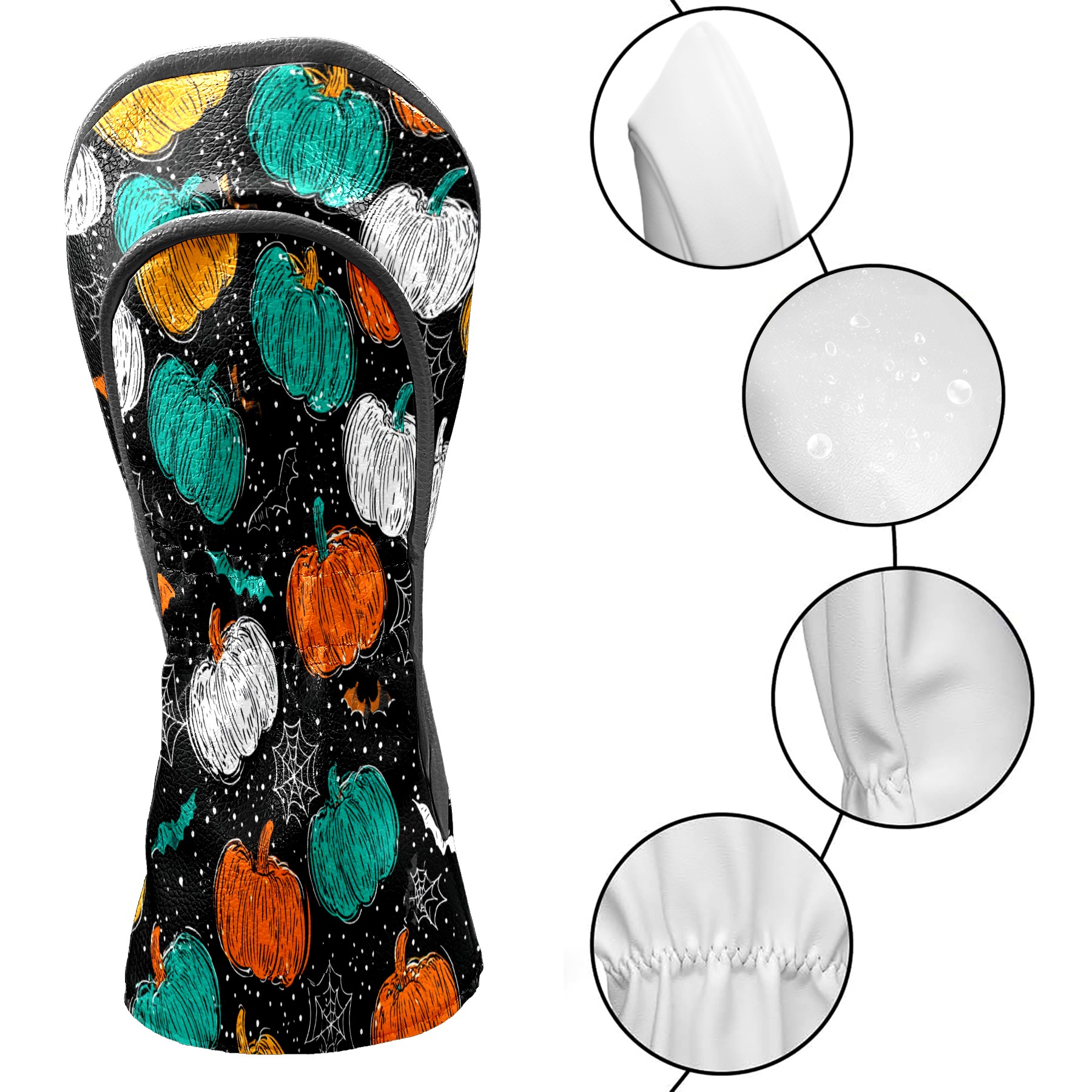 Golf Club Covers, Multicolor Pumpkin Premium PU Leather Driver Hybrid Putter Head Covers with Velvet Lining, Waterproof Golf Gifts for Men Women