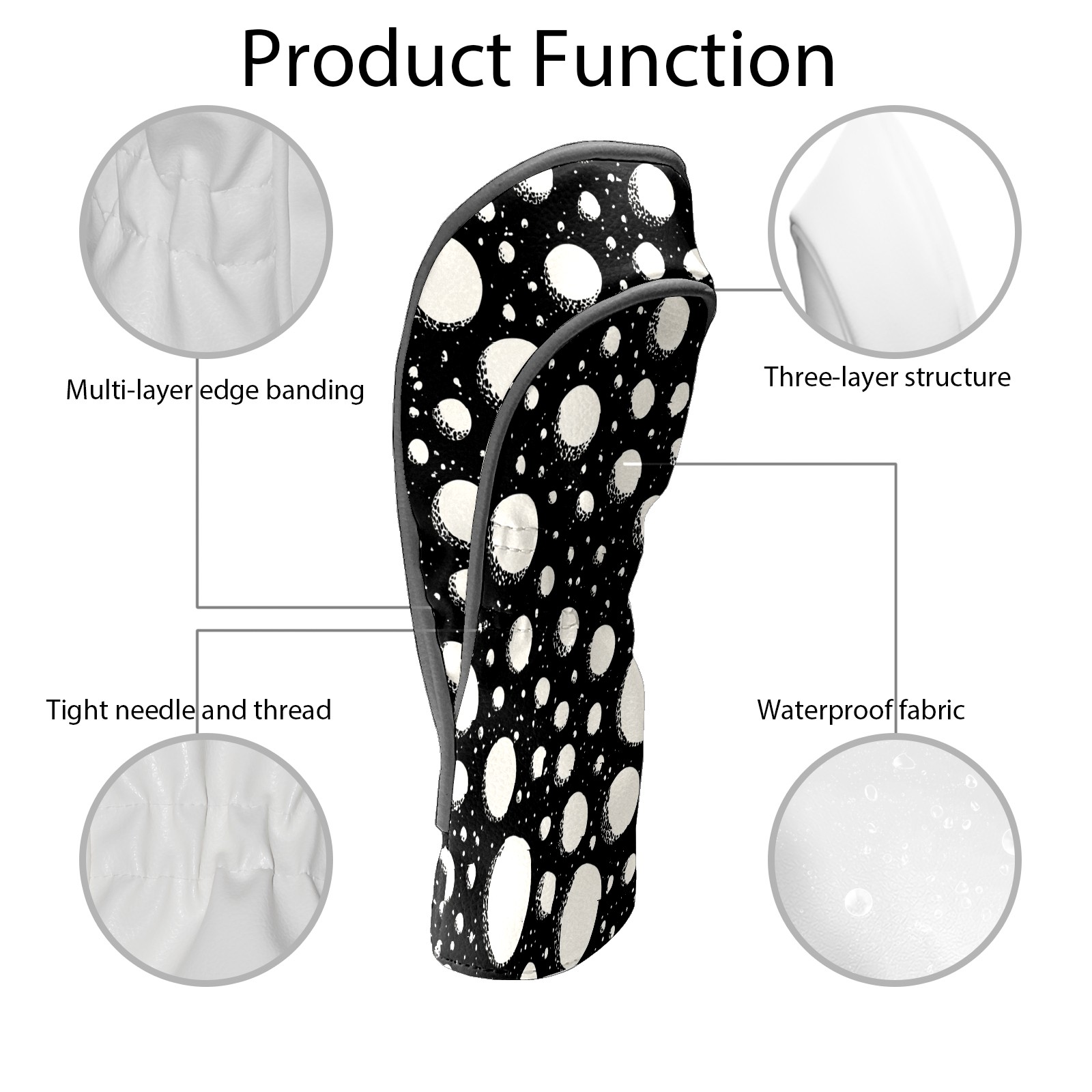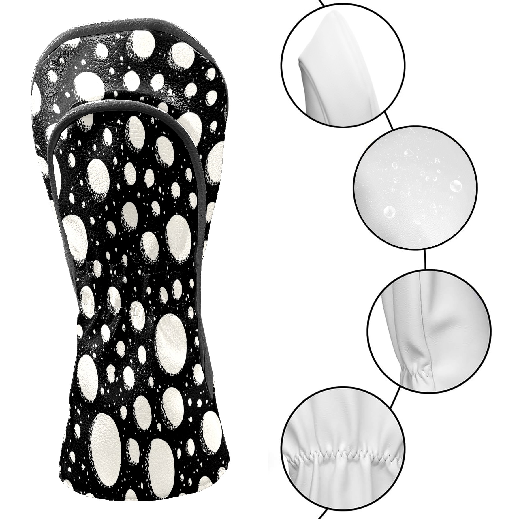 Golf Club Covers, Black Dot Premium PU Leather Driver Hybrid Putter Head Covers with Velvet Lining, Waterproof Golf Gifts for Men Women