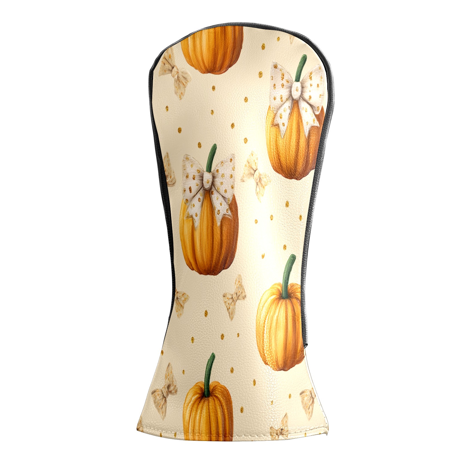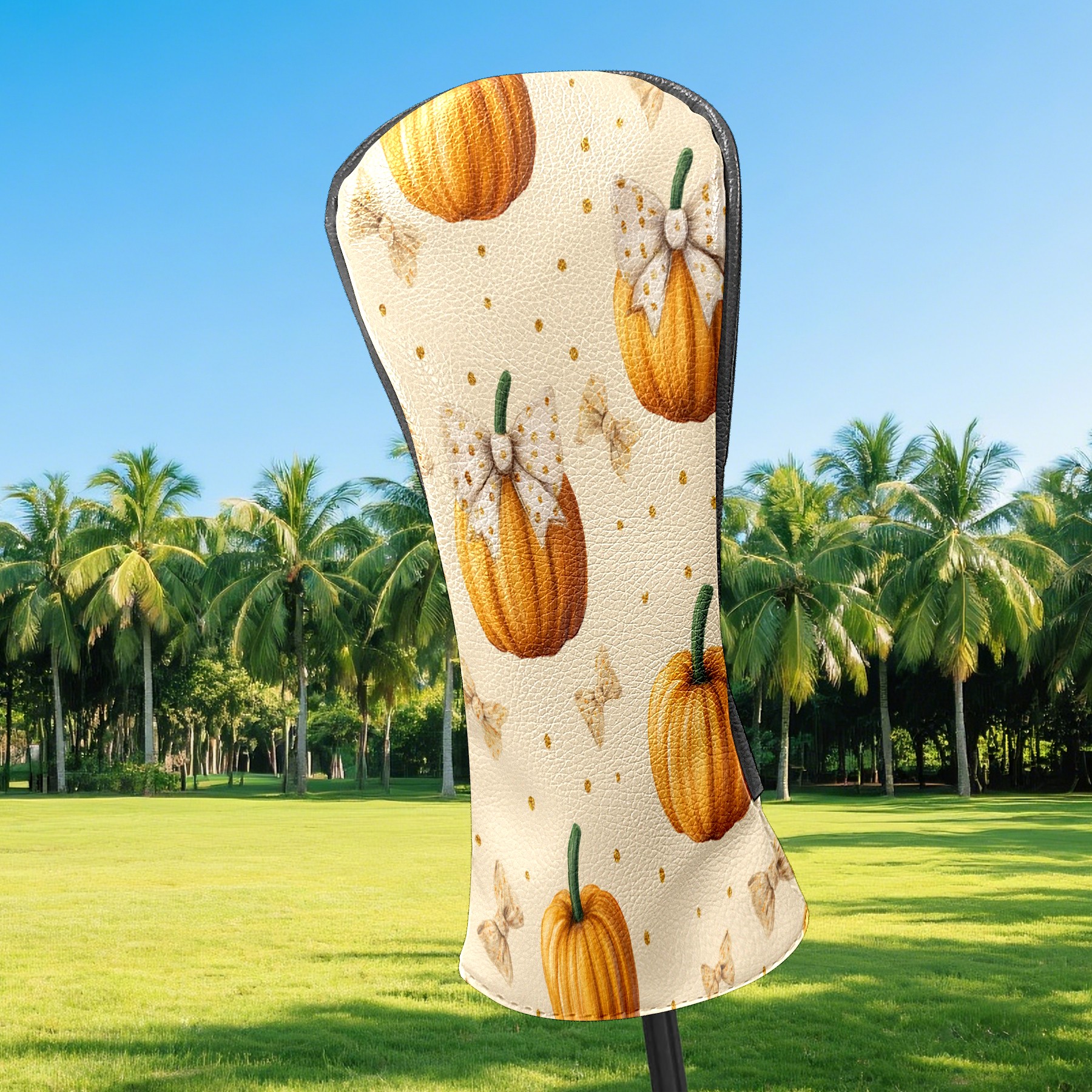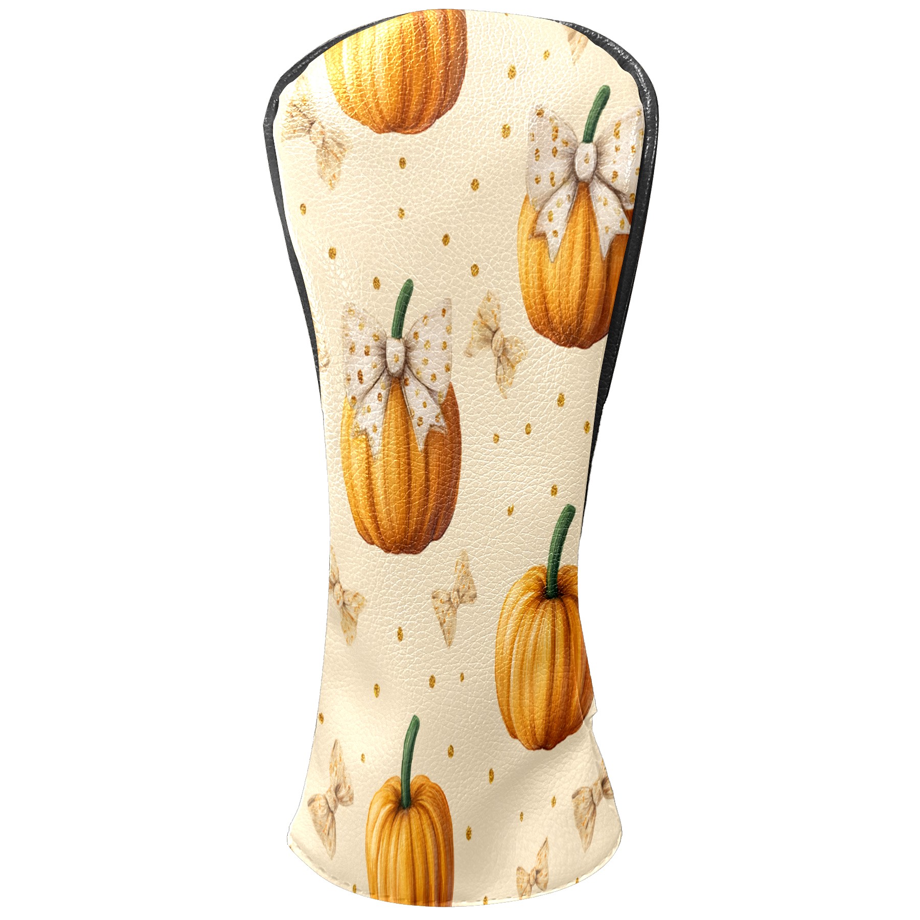 Golf Club Covers, Beige Pumpkin Premium PU Leather Driver Hybrid Putter Head Covers with Velvet Lining, Waterproof Golf Gifts for Men Women