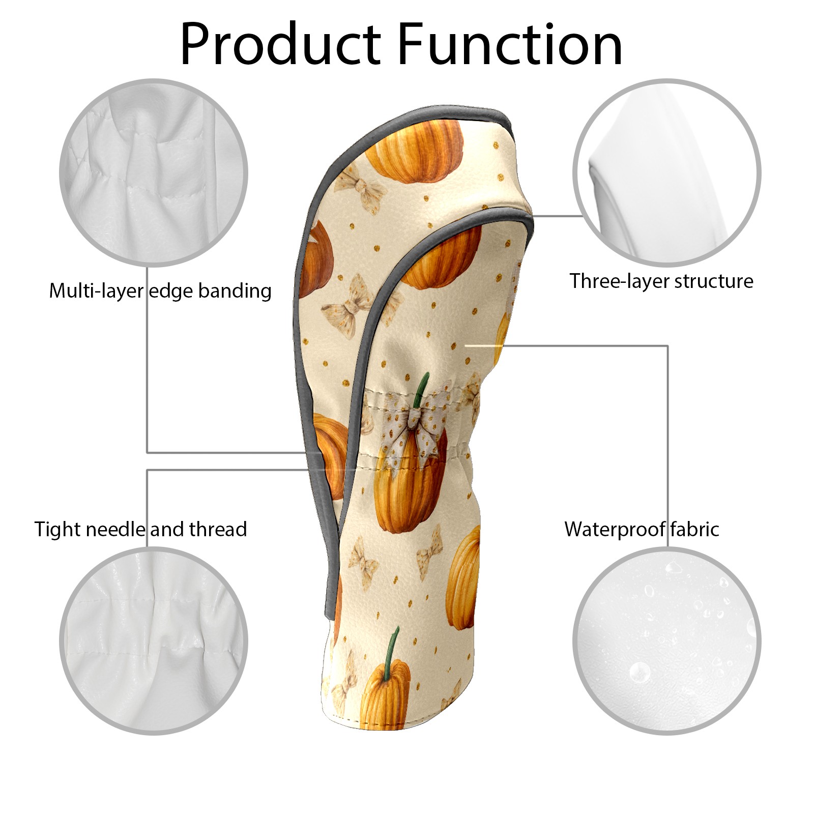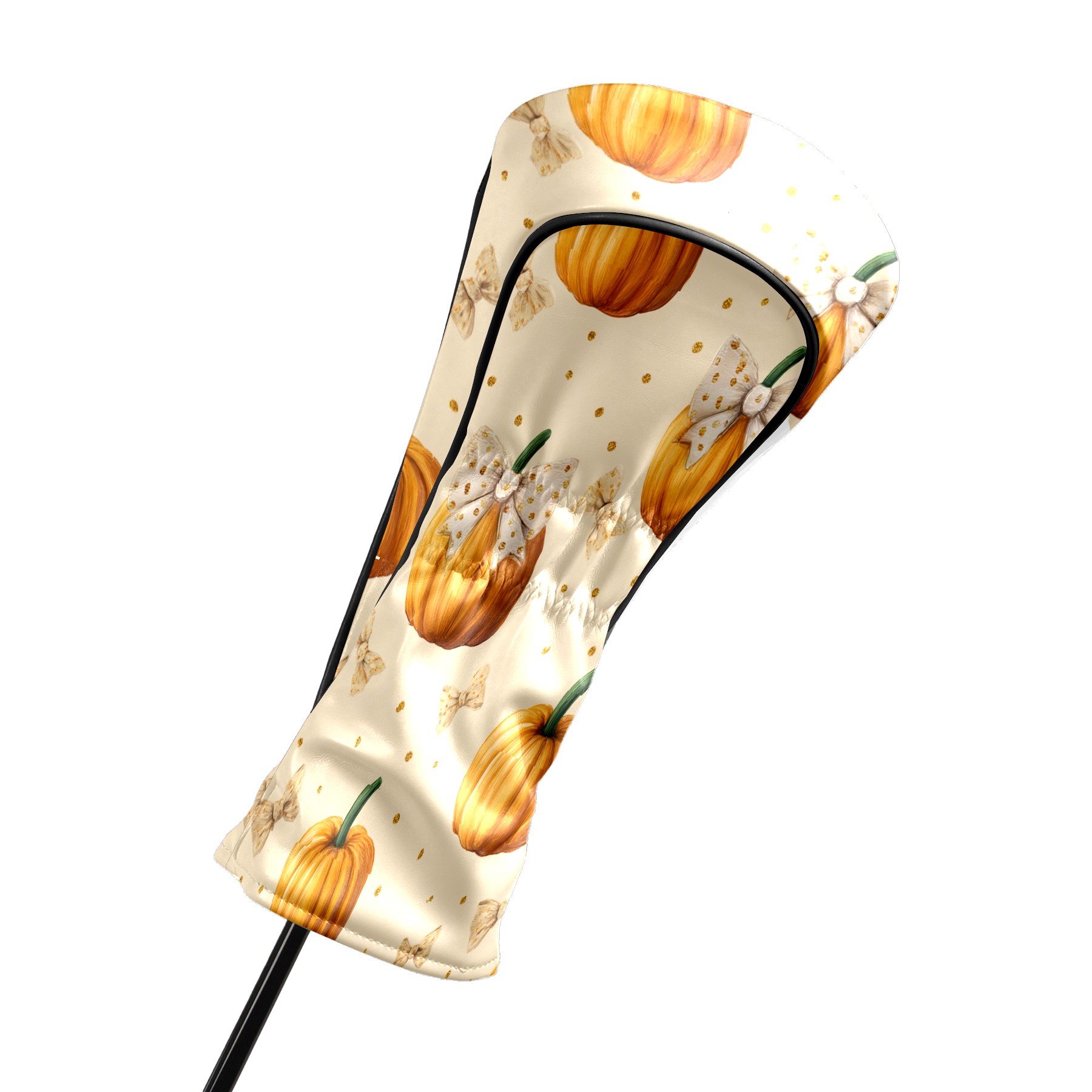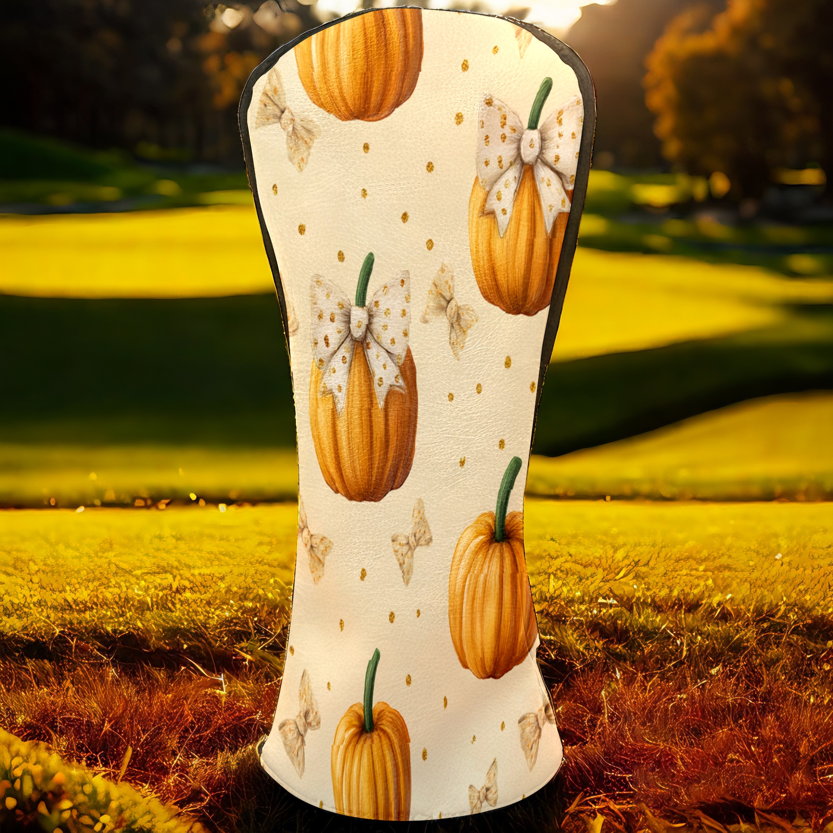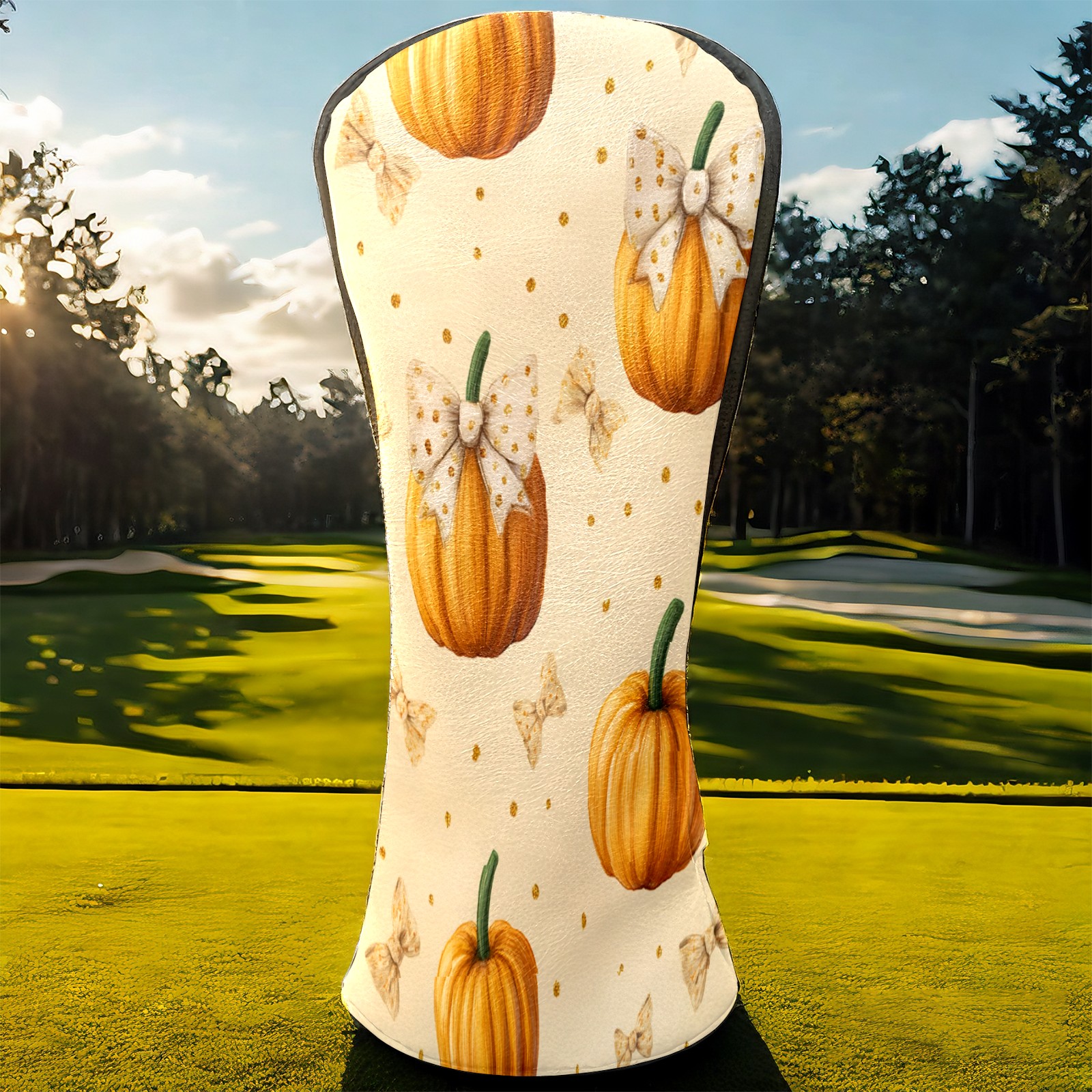 Golf Club Covers, Beige Pumpkin Premium PU Leather Driver Hybrid Putter Head Covers with Velvet Lining, Waterproof Golf Gifts for Men Women