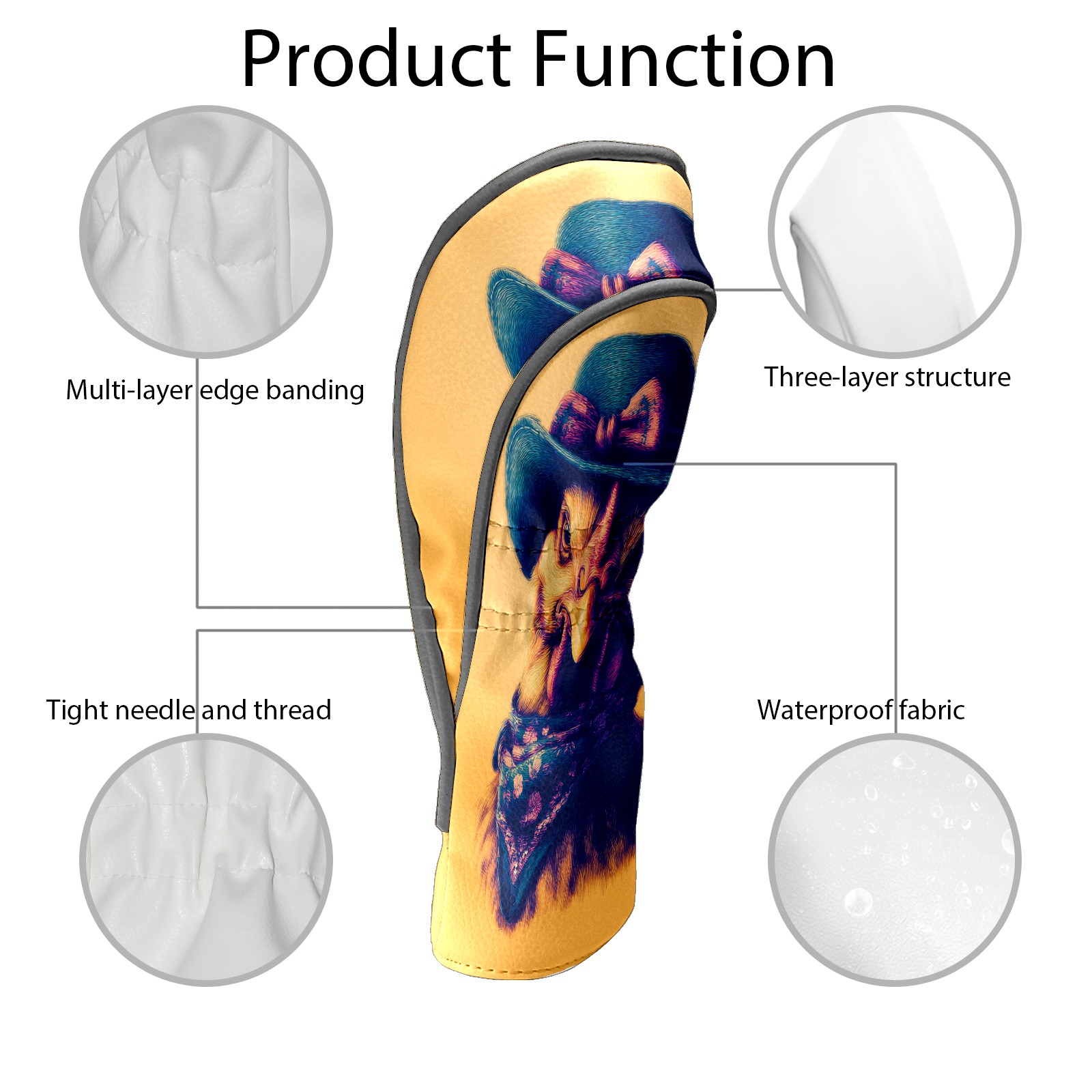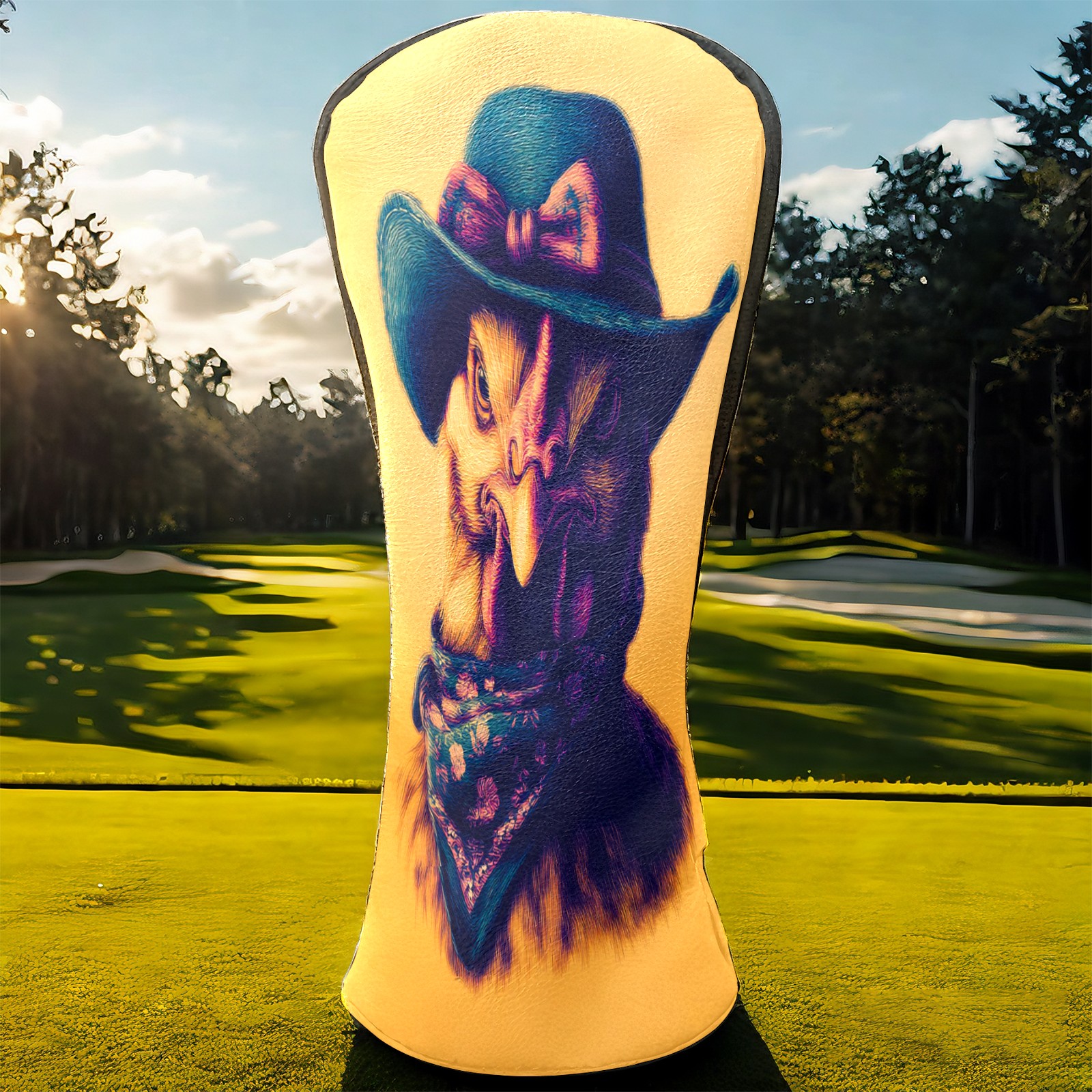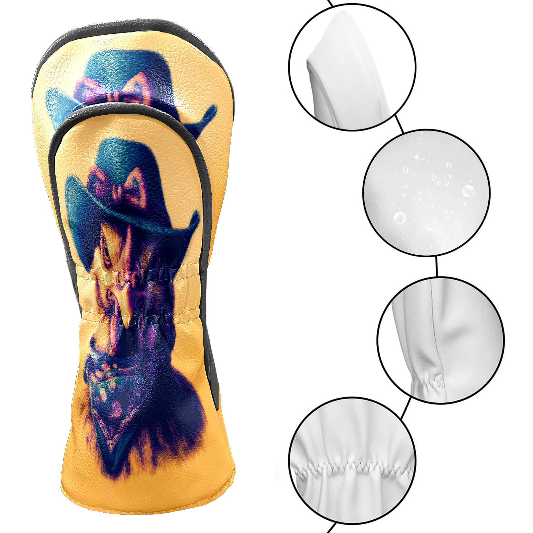 Golf Club Covers, Yellow Chicken Premium PU Leather Driver Hybrid Putter Head Covers with Velvet Lining, Waterproof Golf Gifts for Men Women