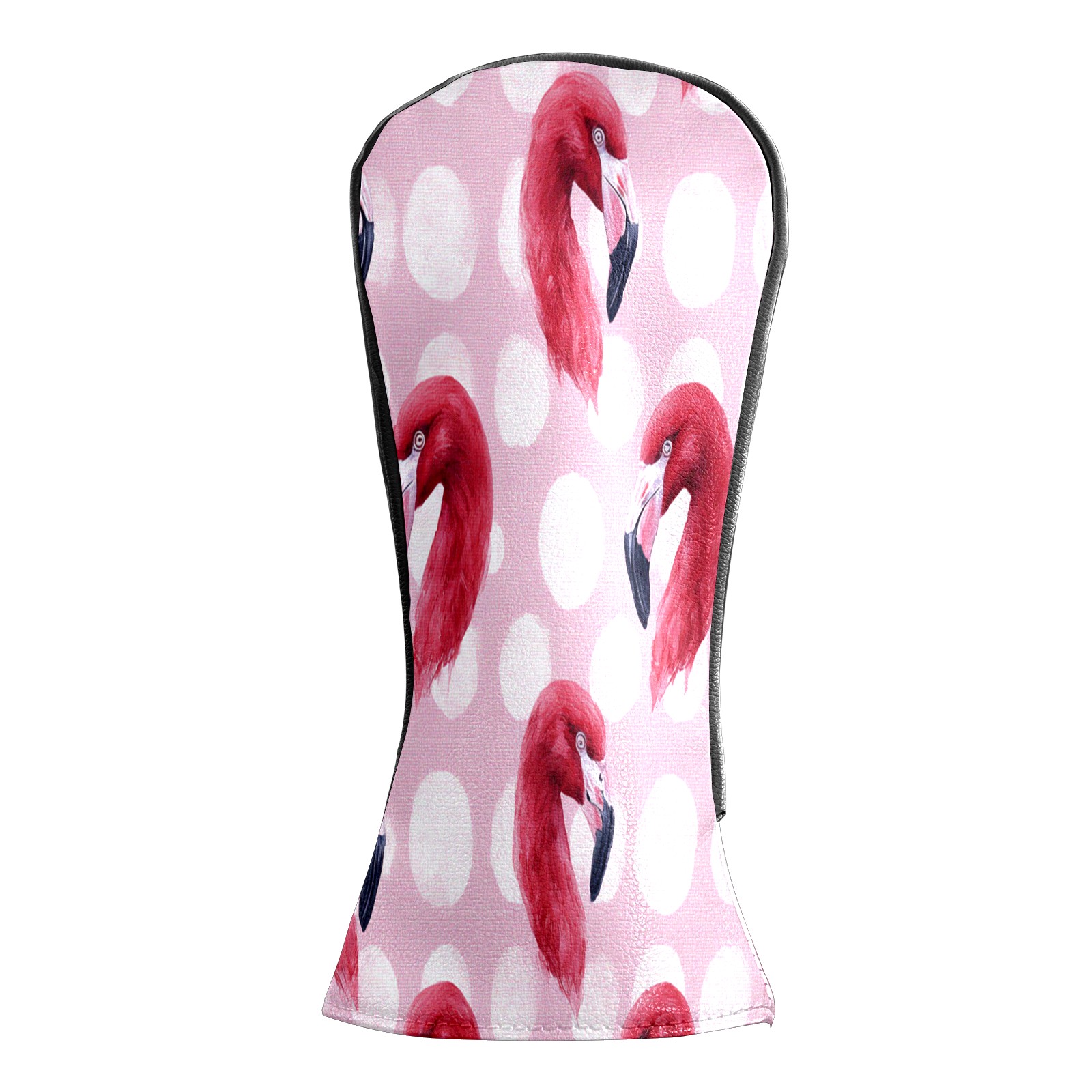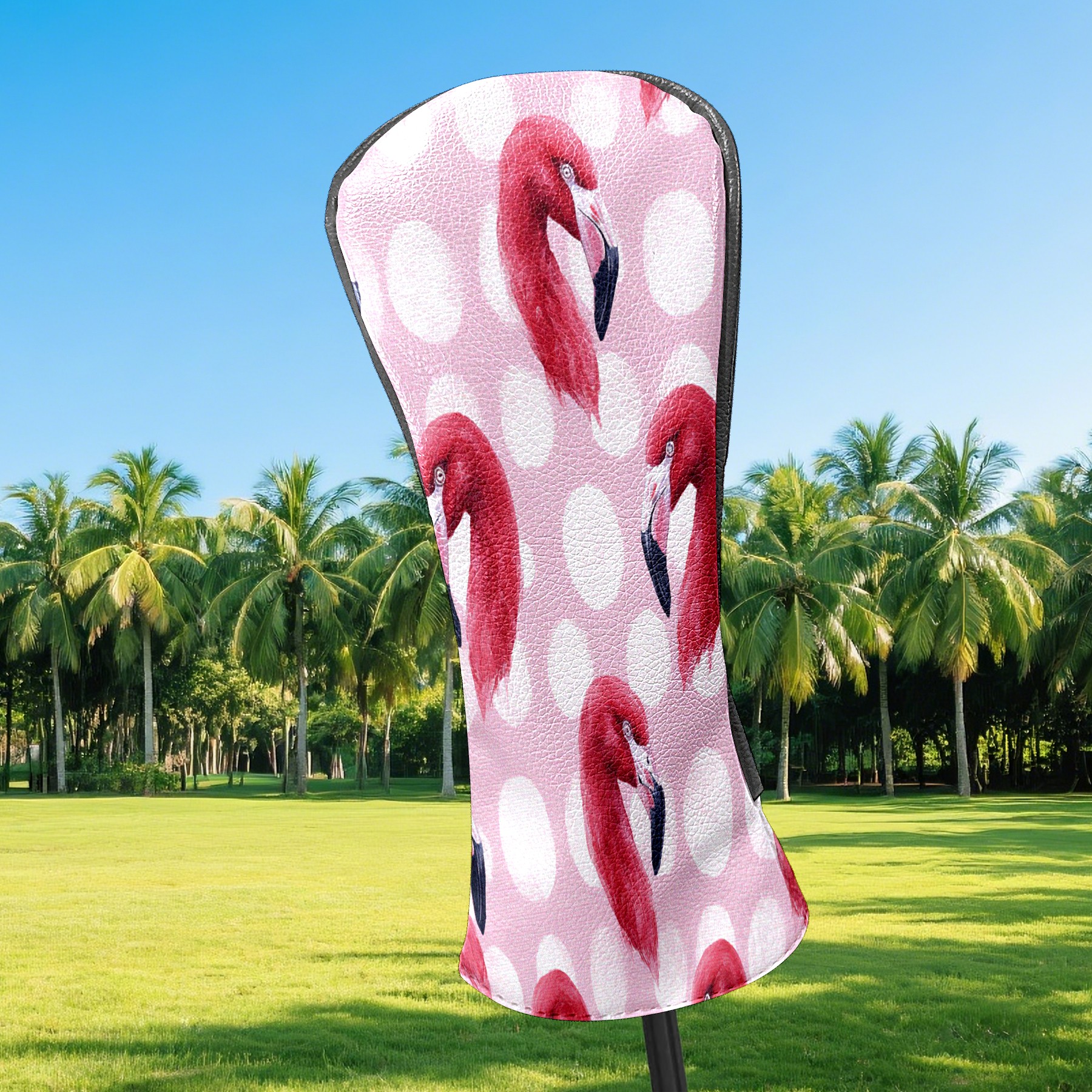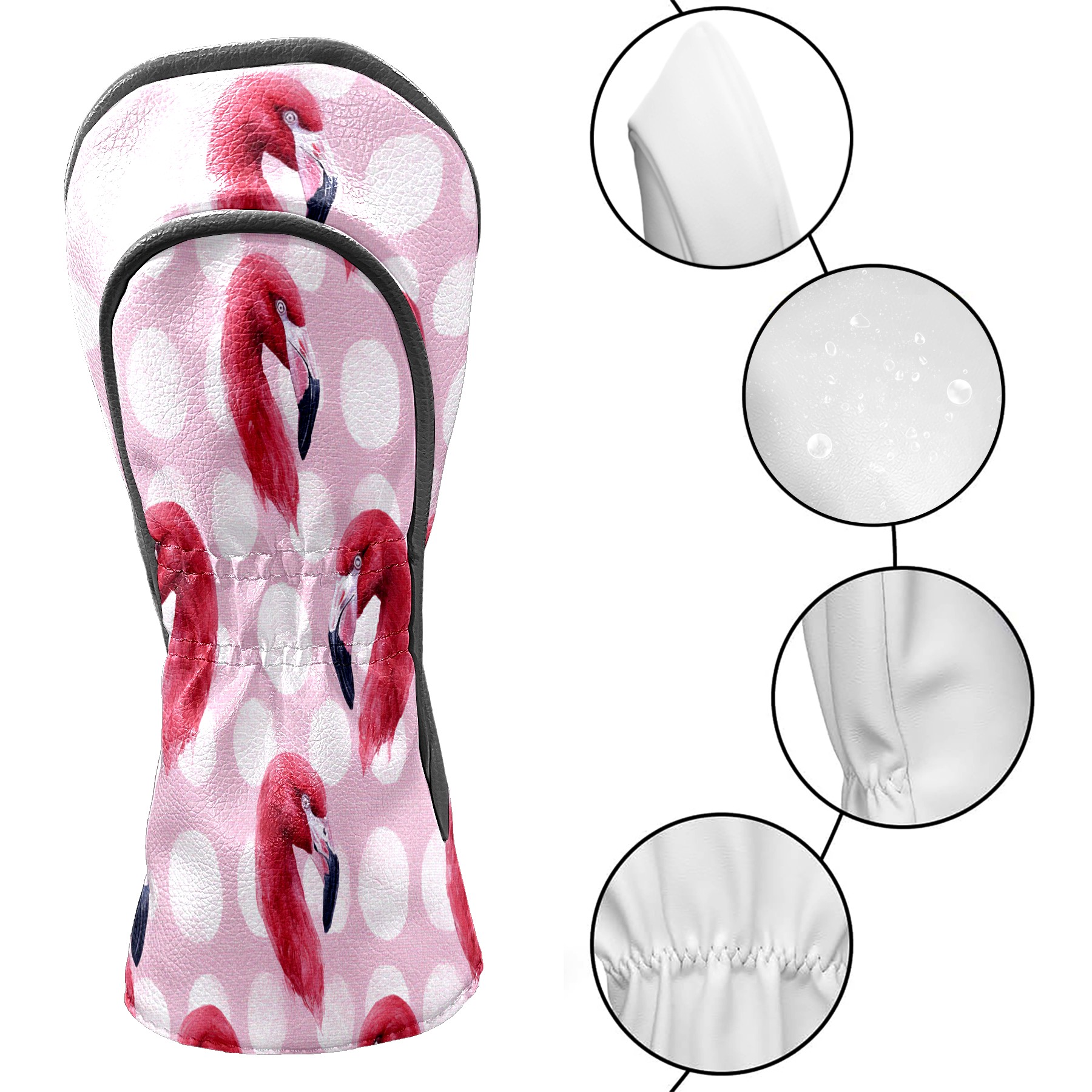 Golf Club Covers, Pink Dots Flamingo Premium PU Leather Driver Hybrid Putter Head Covers with Velvet Lining, Waterproof Golf Gifts for Men Women