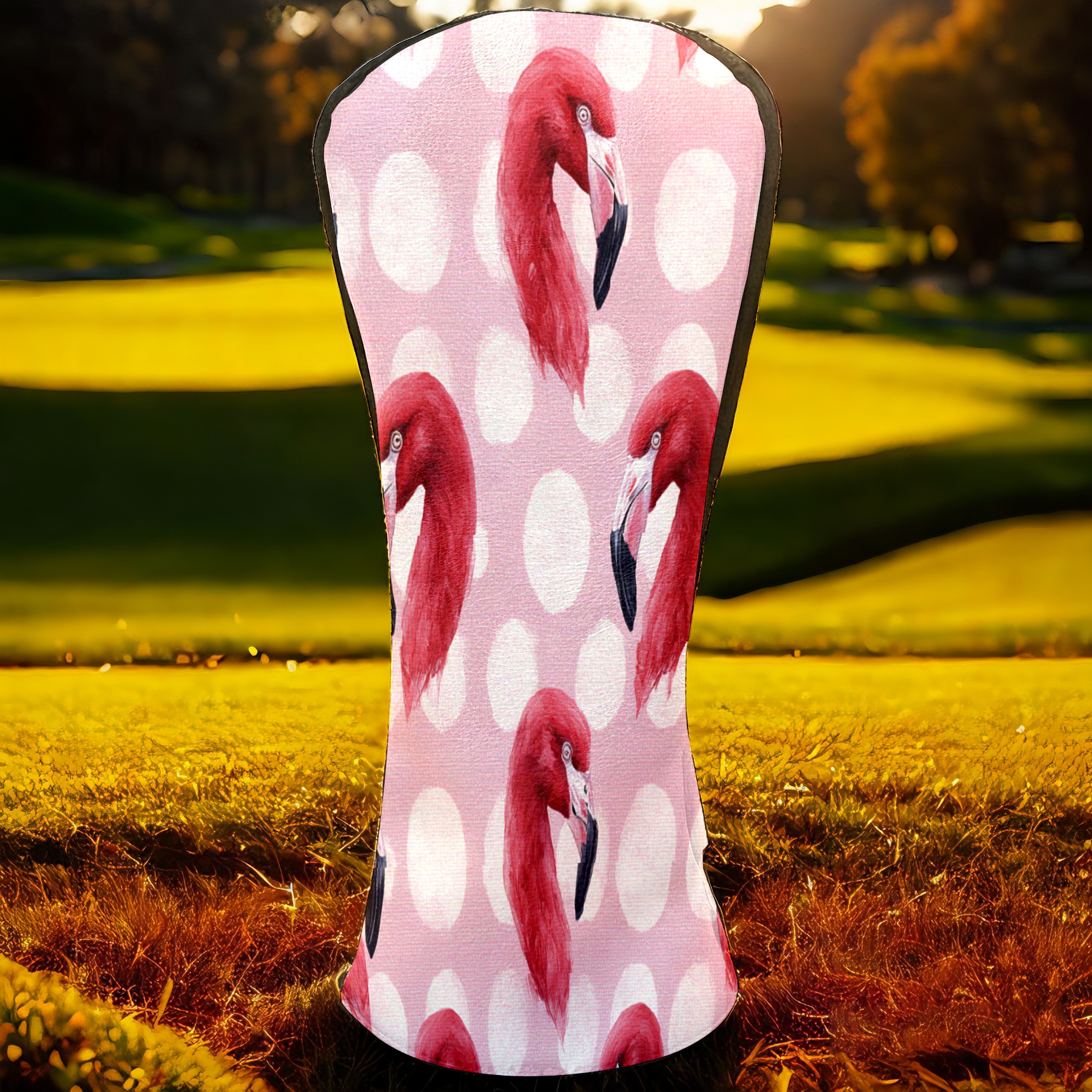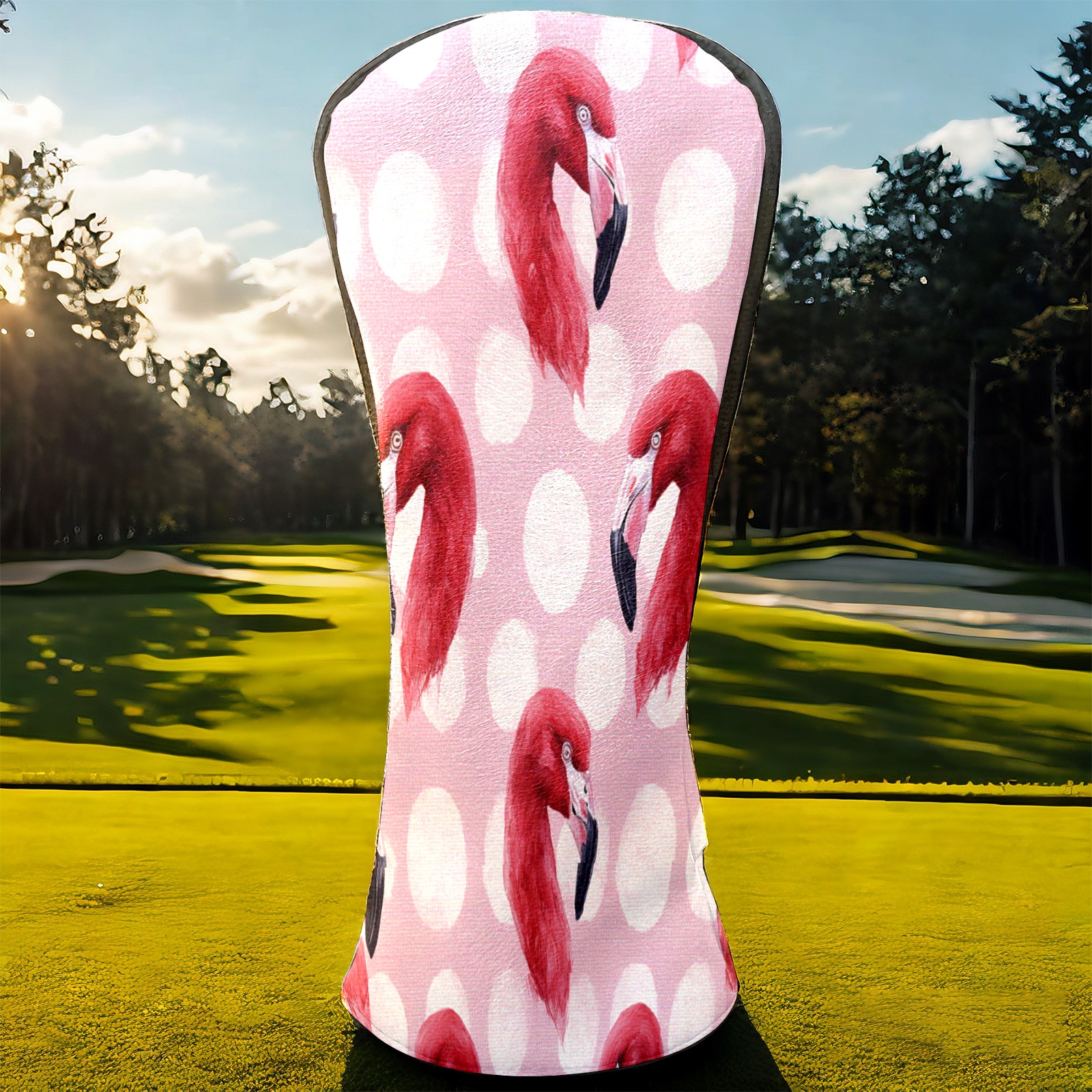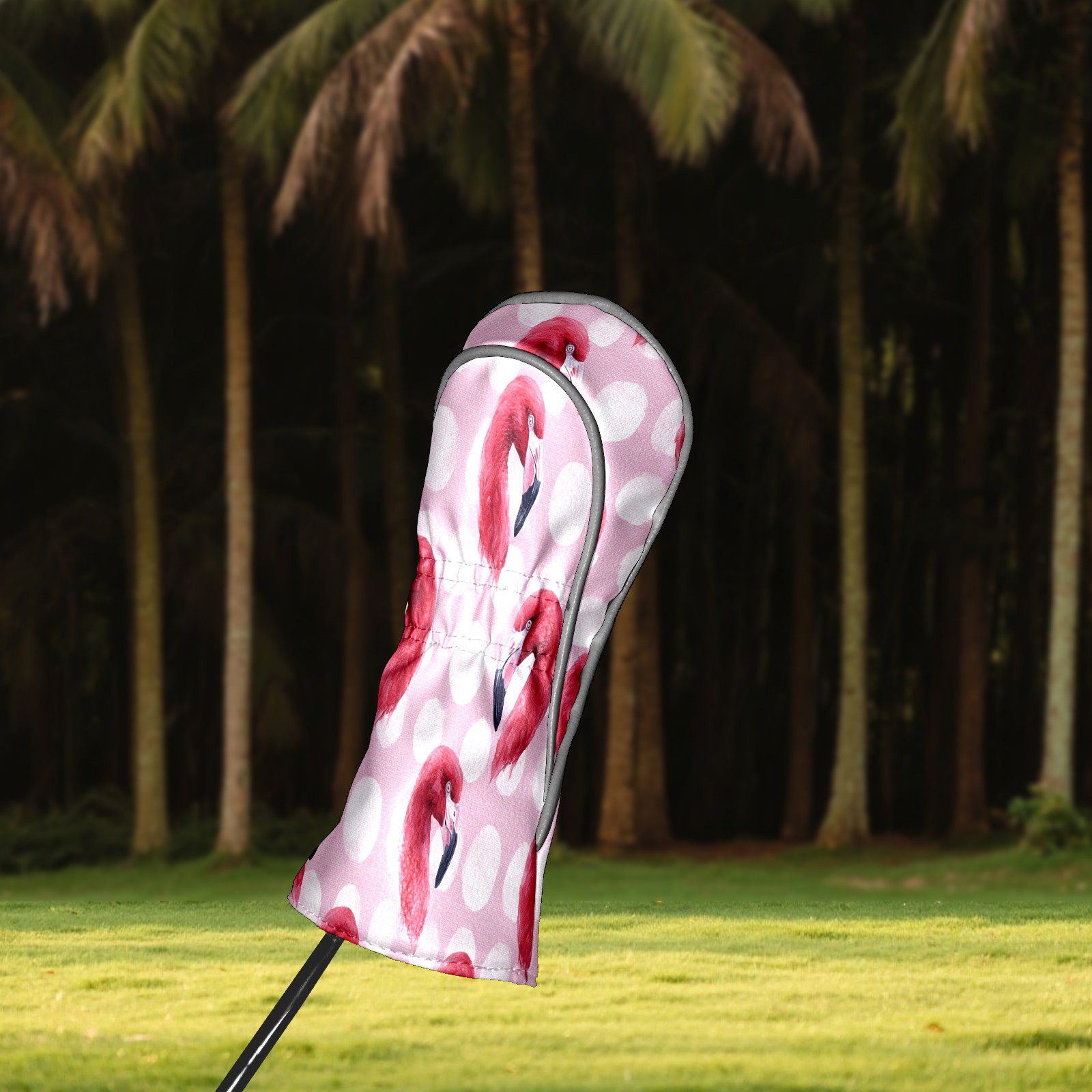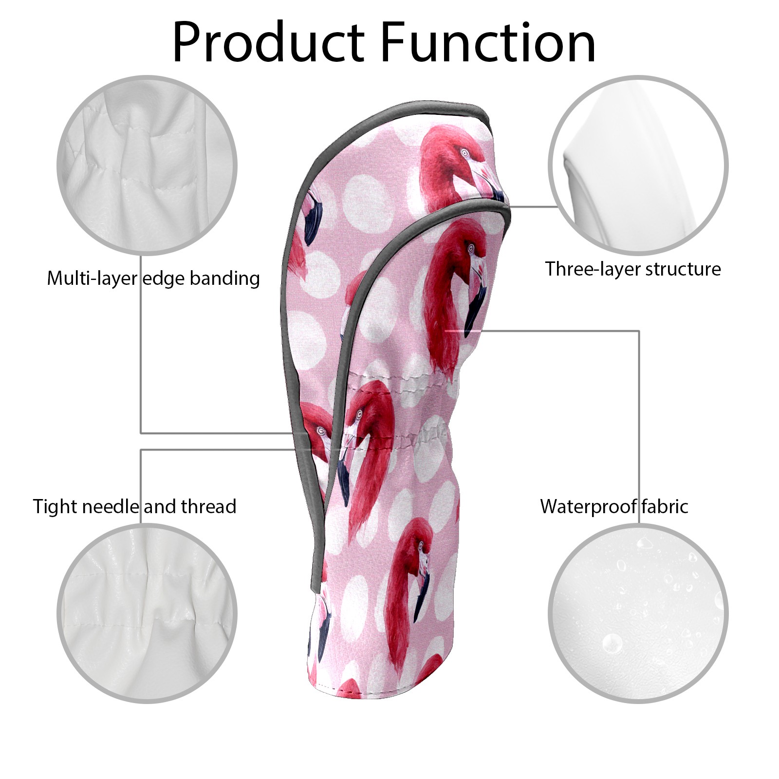 Golf Club Covers, Pink Dots Flamingo Premium PU Leather Driver Hybrid Putter Head Covers with Velvet Lining, Waterproof Golf Gifts for Men Women