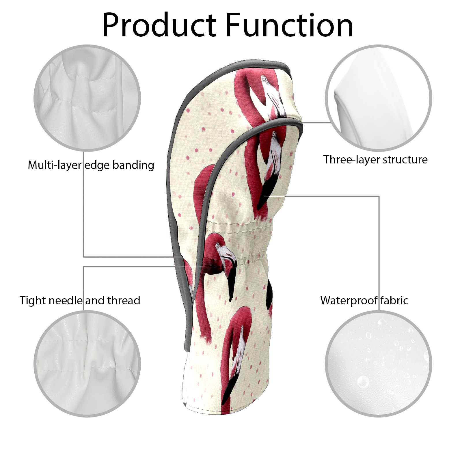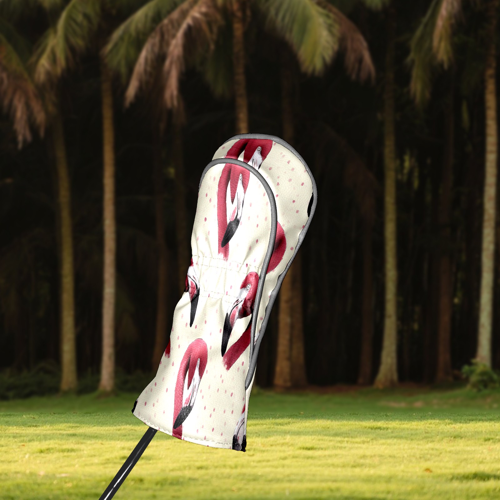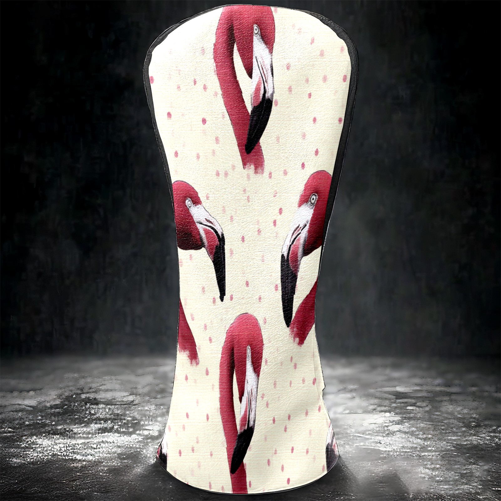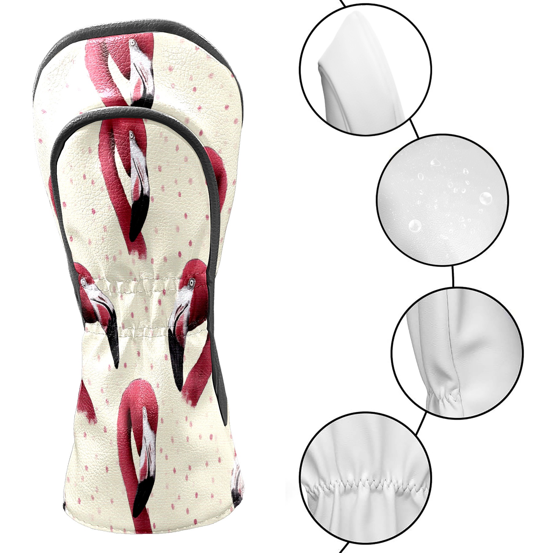 Golf Club Covers, Beige Dots Flamingo Premium PU Leather Driver Hybrid Putter Head Covers with Velvet Lining, Waterproof Golf Gifts for Men Women