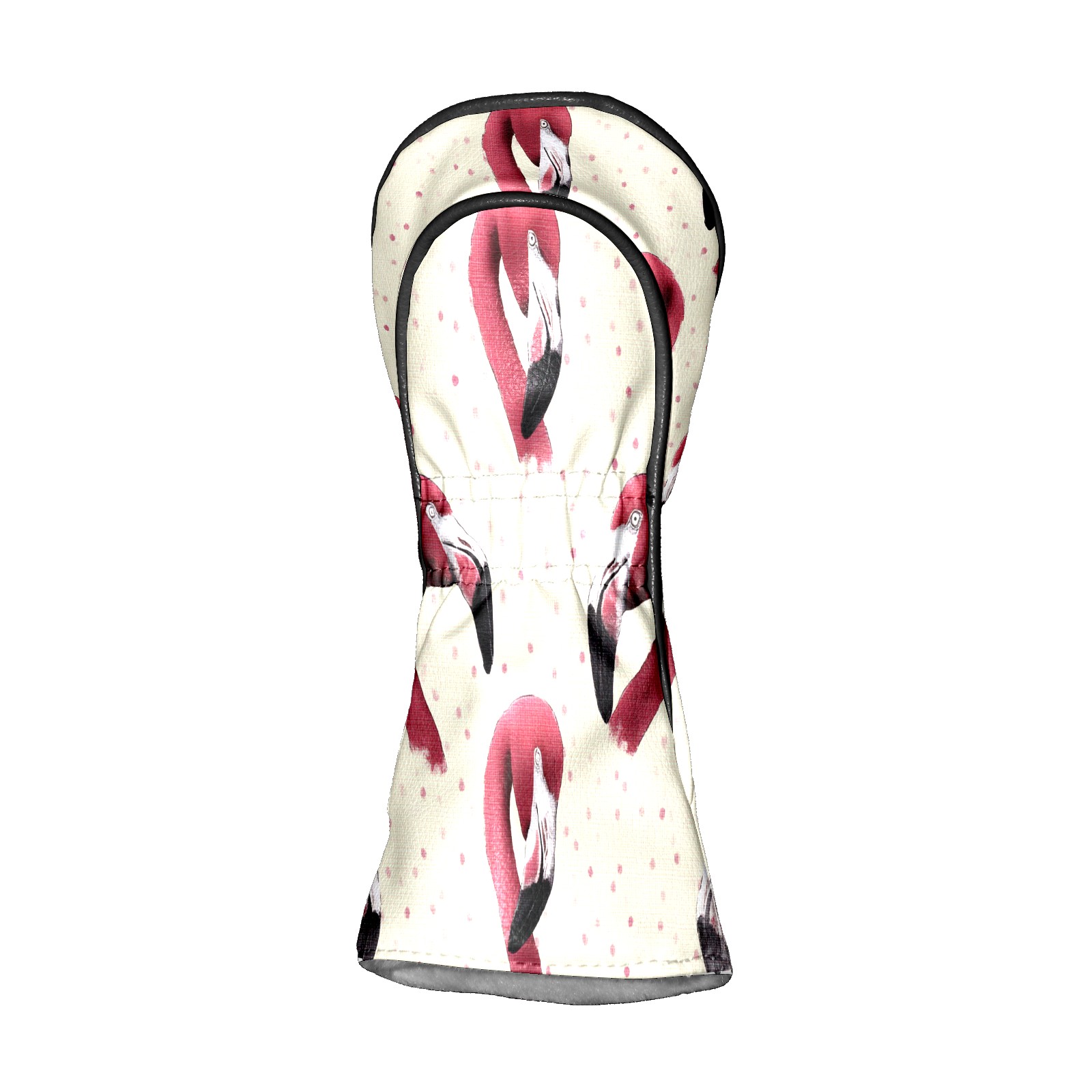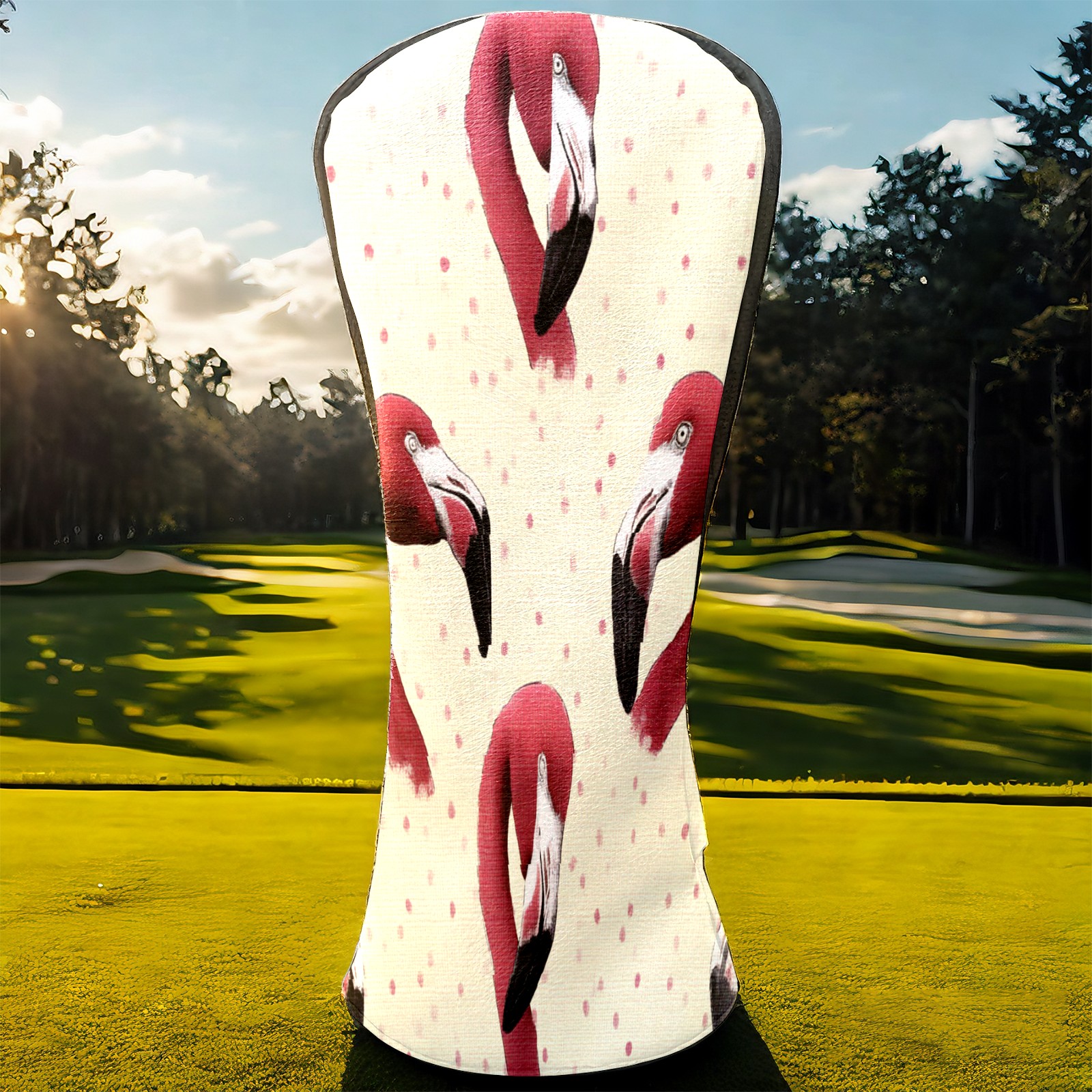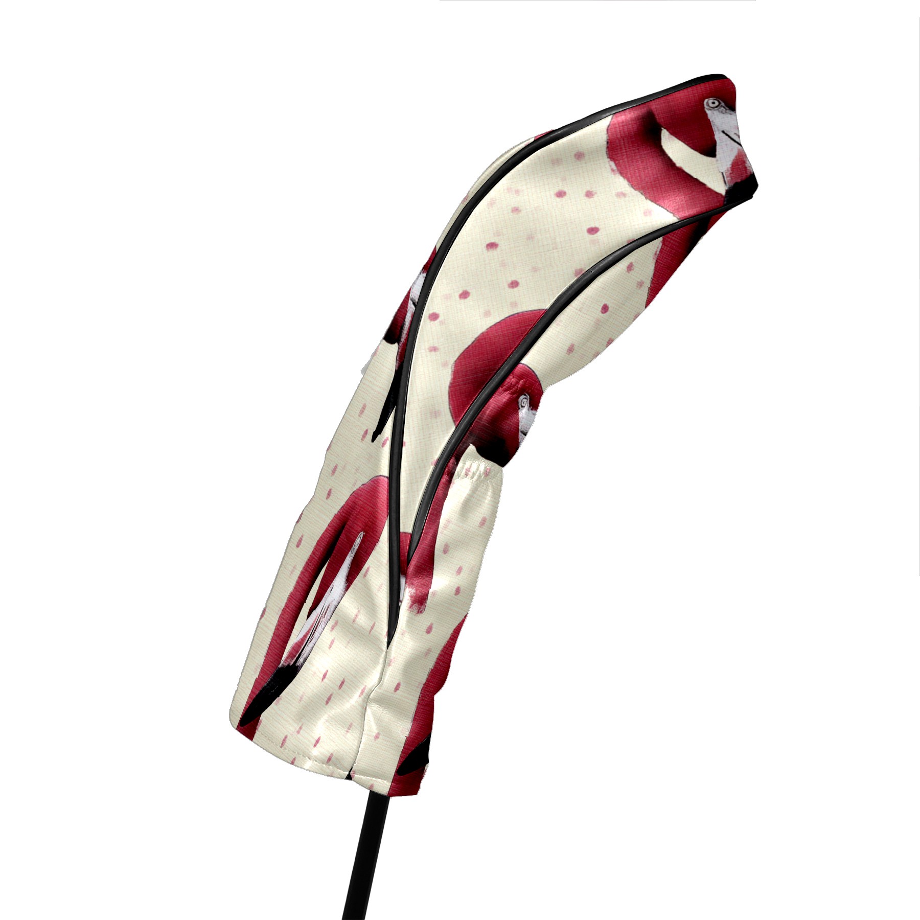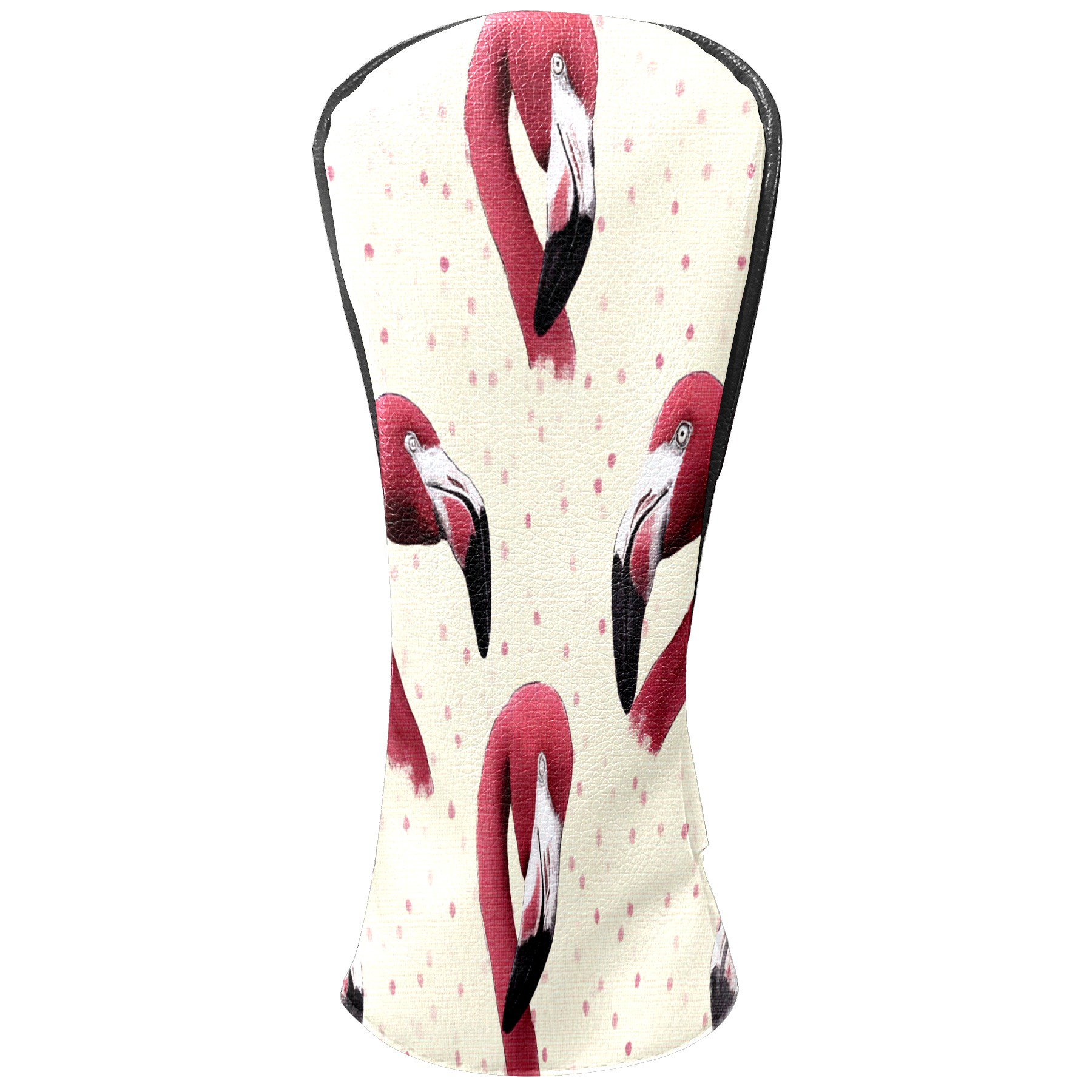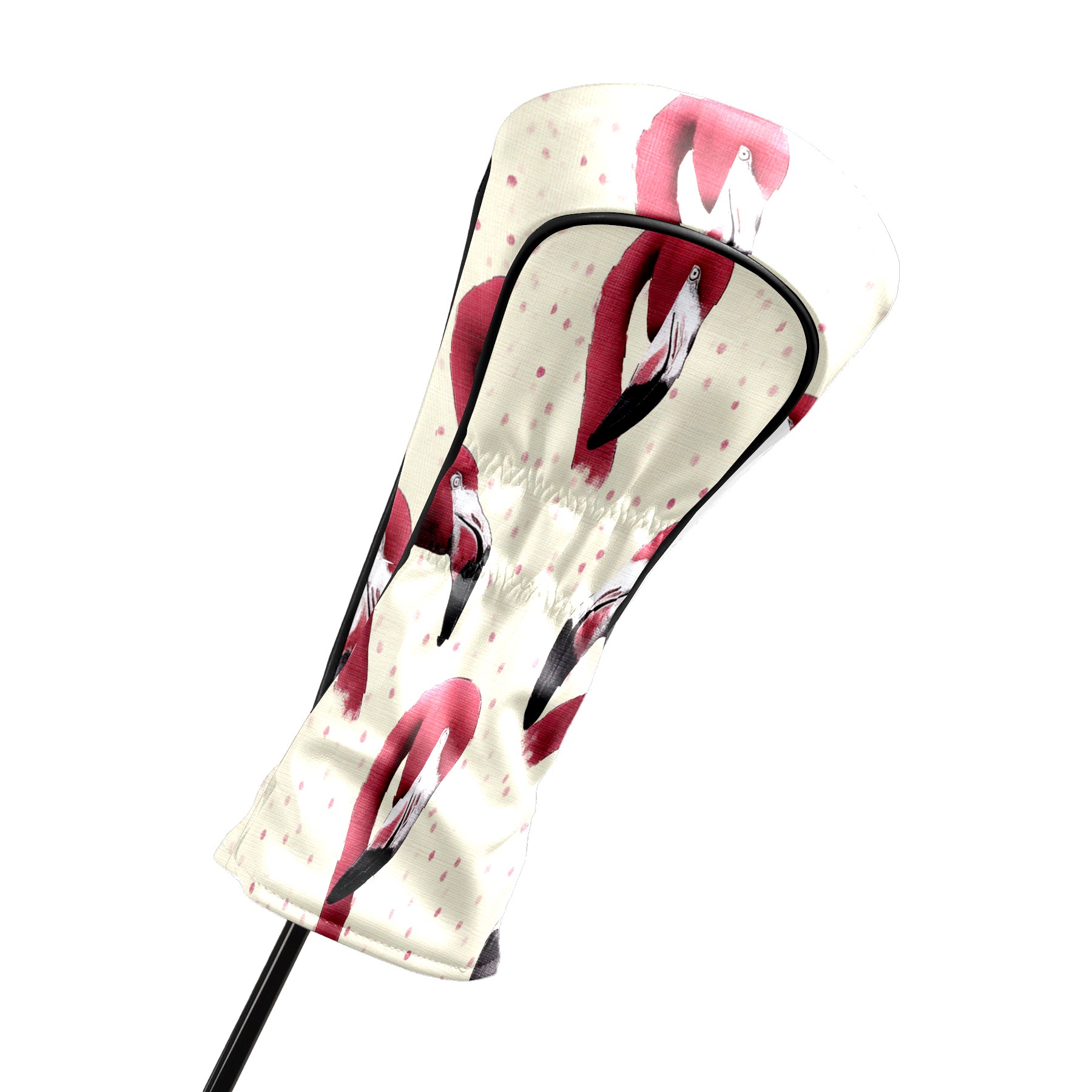 Golf Club Covers, Beige Dots Flamingo Premium PU Leather Driver Hybrid Putter Head Covers with Velvet Lining, Waterproof Golf Gifts for Men Women