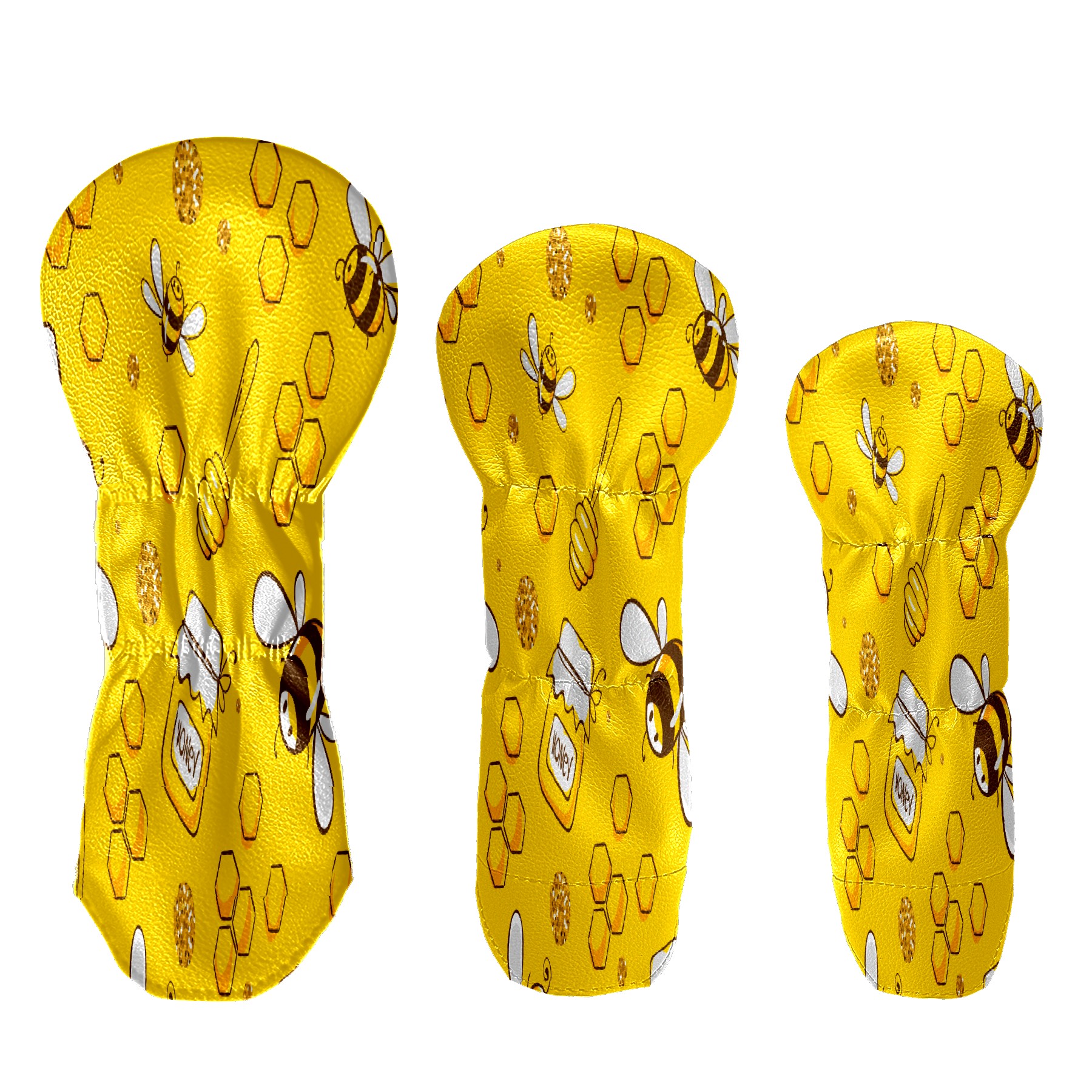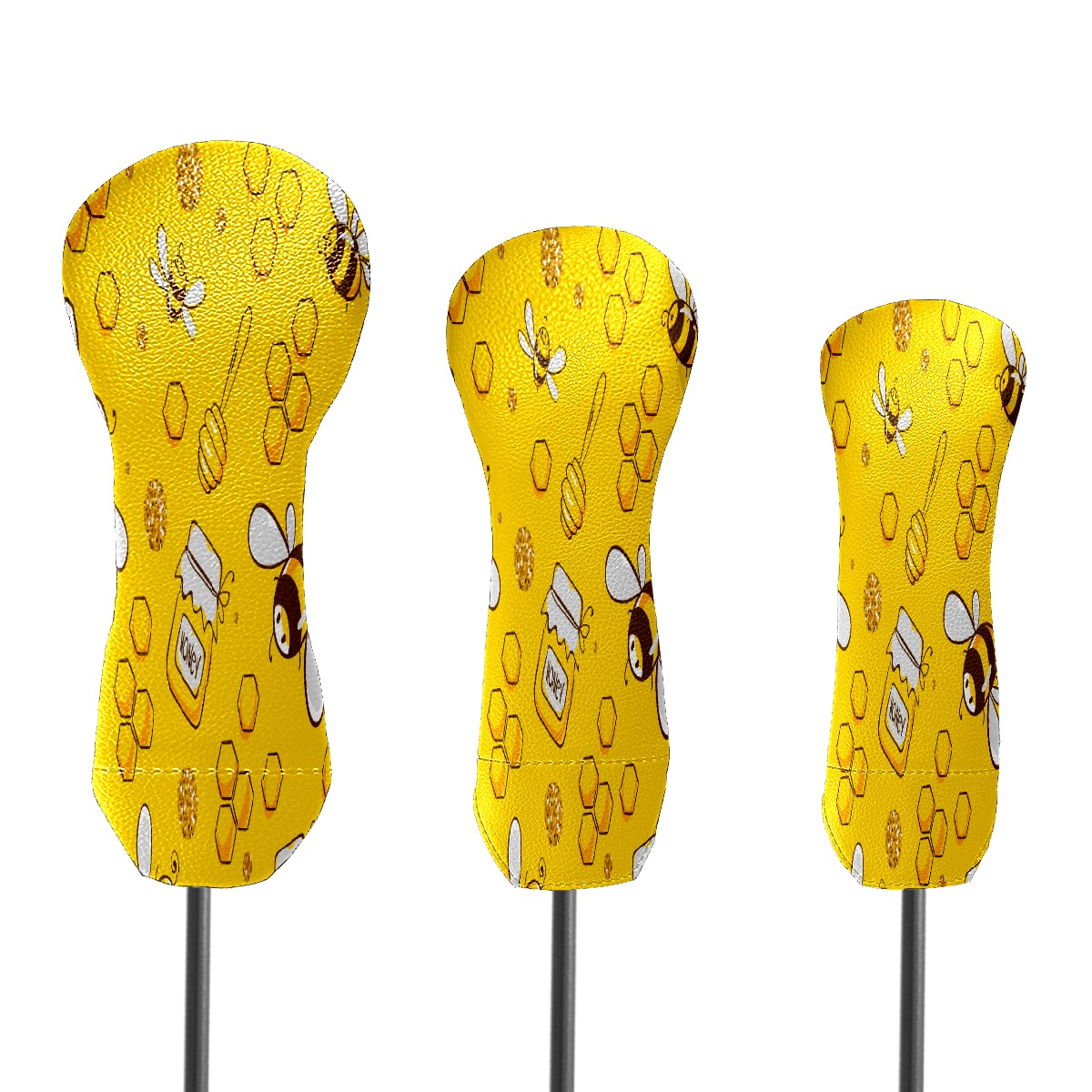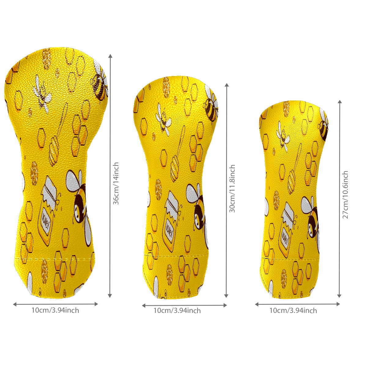 Golf Club Covers Driver Fairway Hybrid Headcover Premium Leather Golf Head Covers for Woods and Driver Hybrid, Golf Headcovers Set for Girls Women Men (Yellow Cute Bees Pattern)