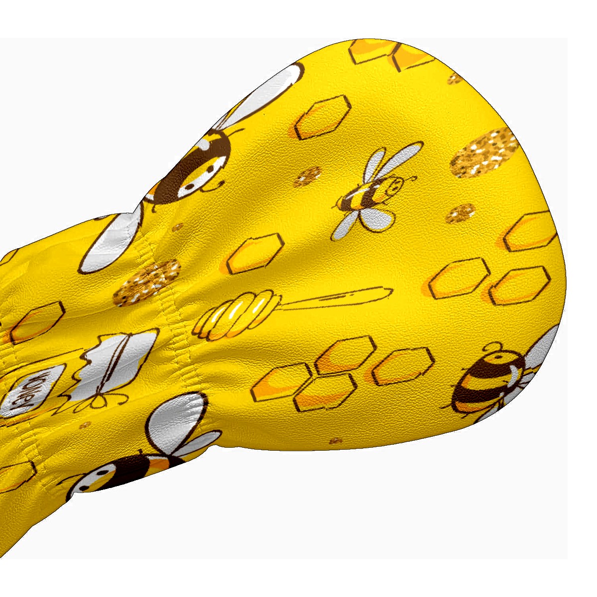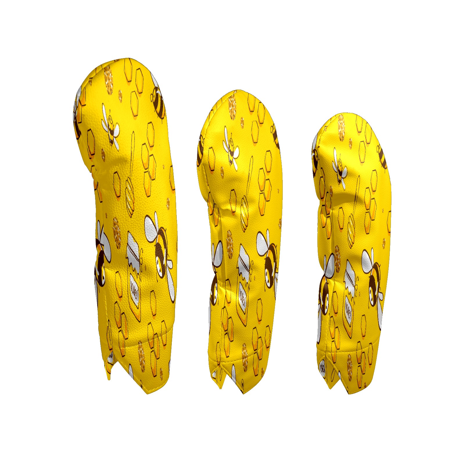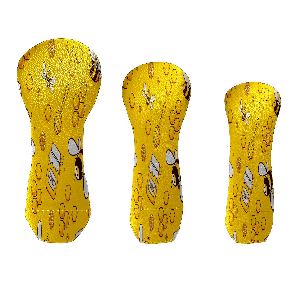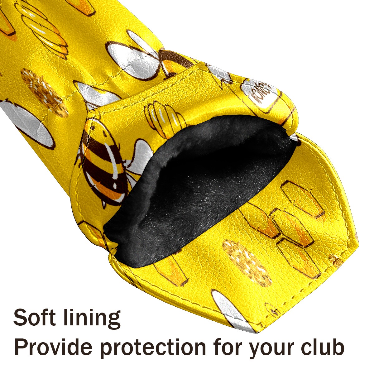 Golf Club Covers Driver Fairway Hybrid Headcover Premium Leather Golf Head Covers for Woods and Driver Hybrid, Golf Headcovers Set for Girls Women Men (Yellow Cute Bees Pattern)